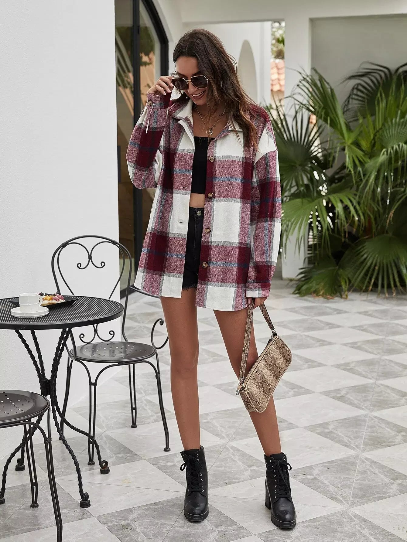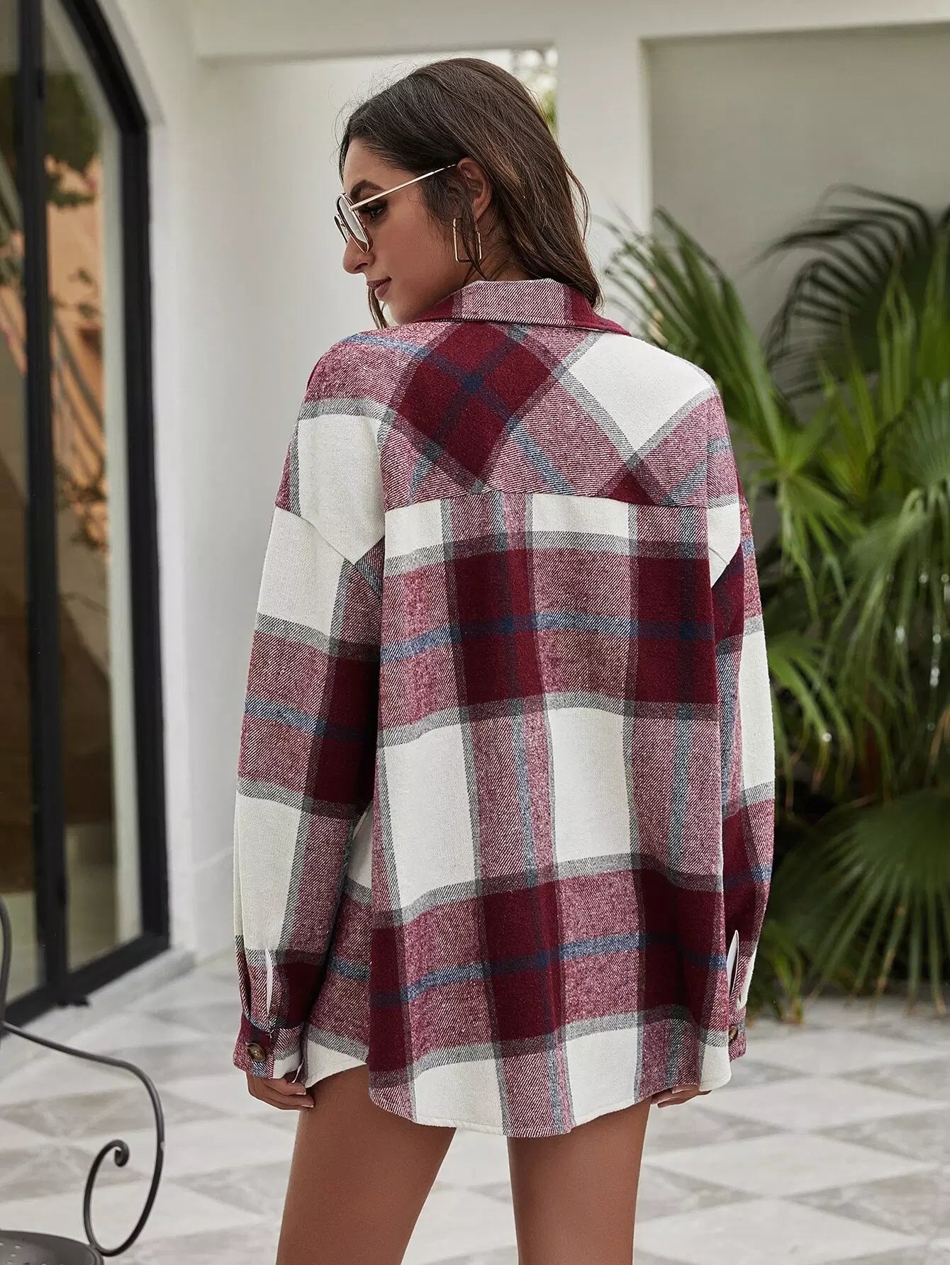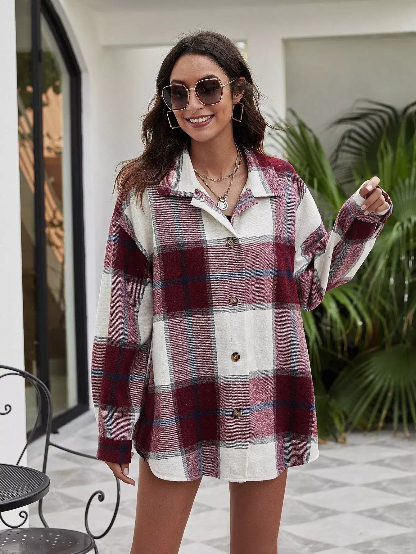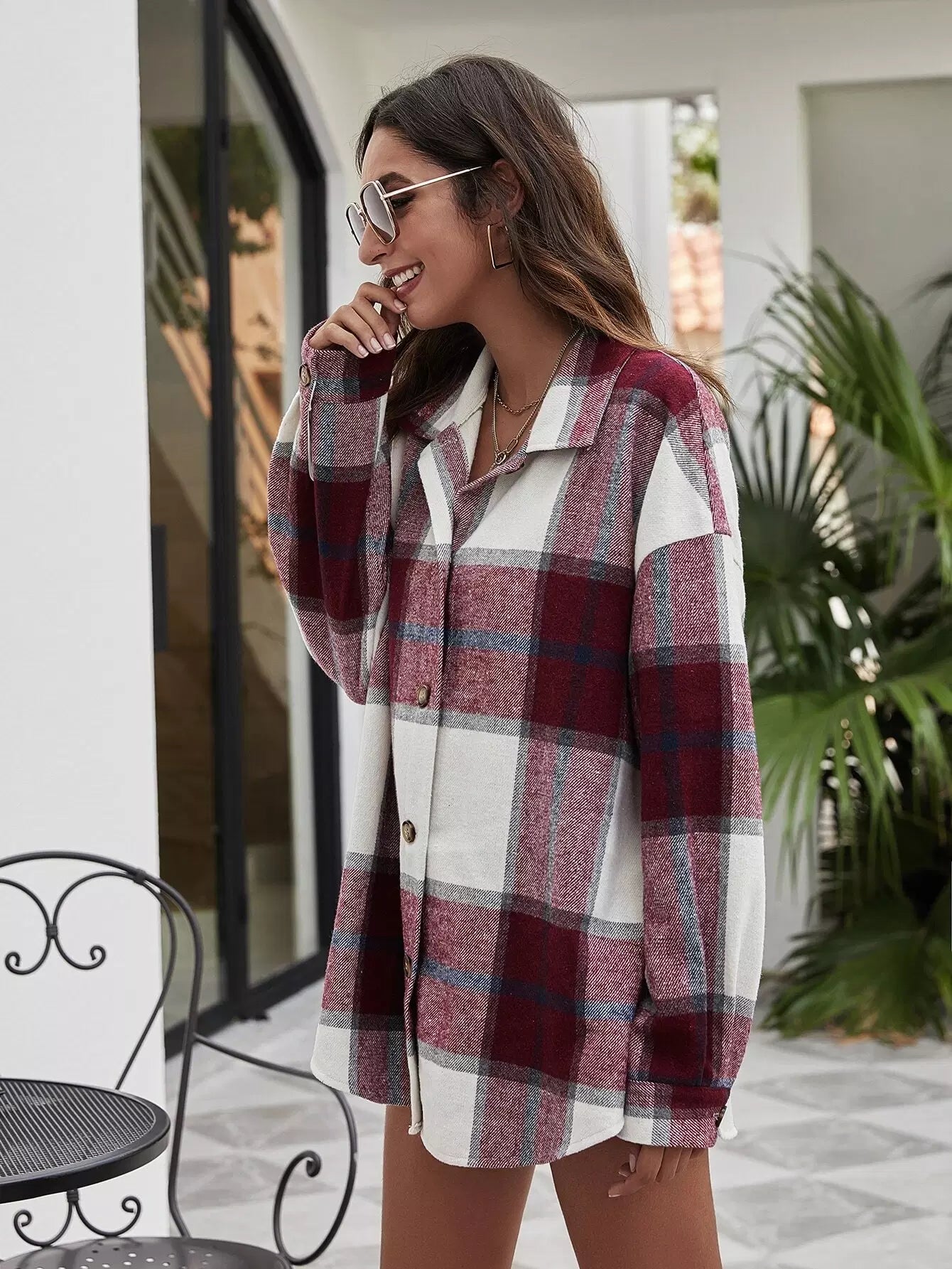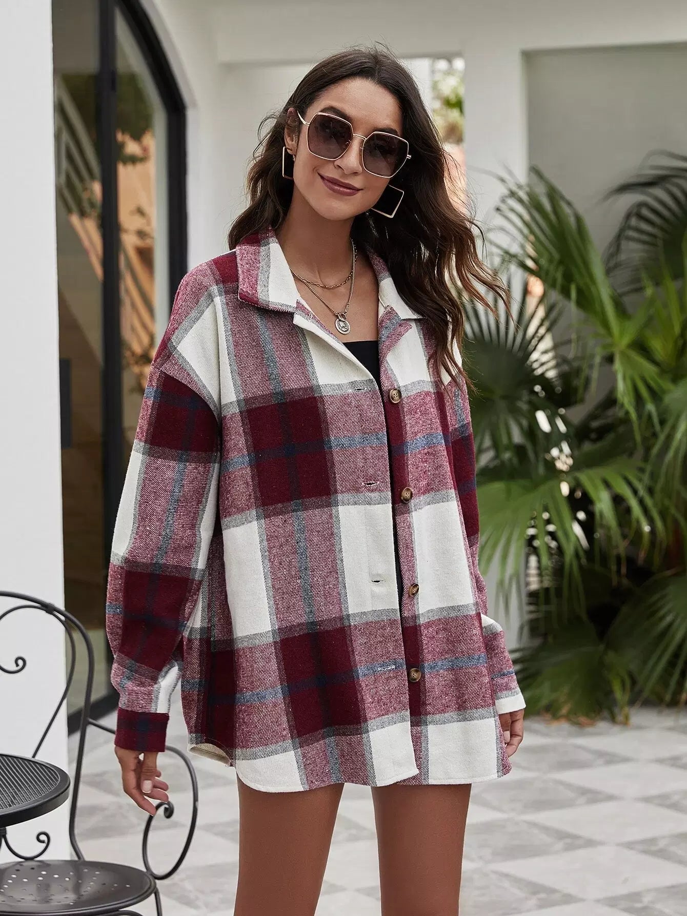Women - Plaid Drop Shoulder Button Front Oversized Coat