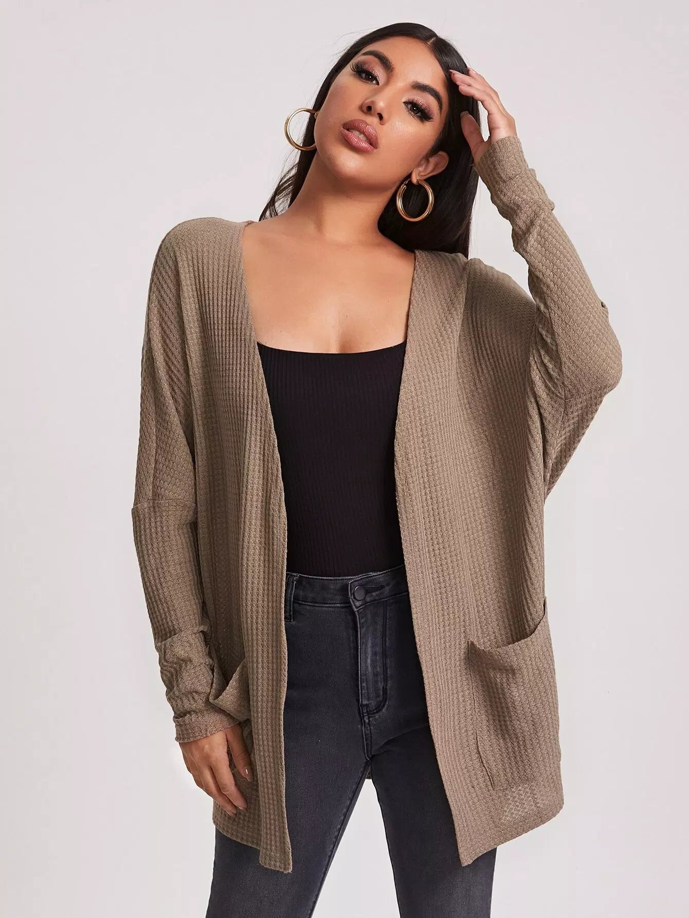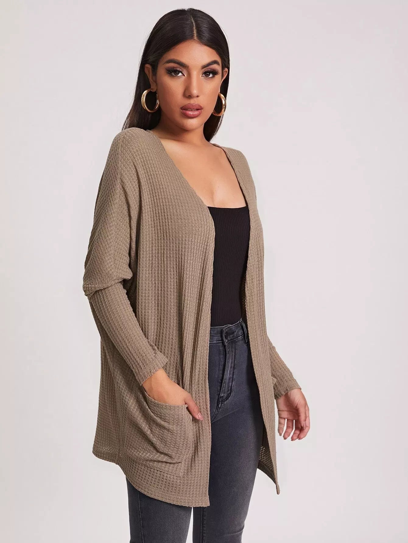 Pocket Front Waffle Knit Coat