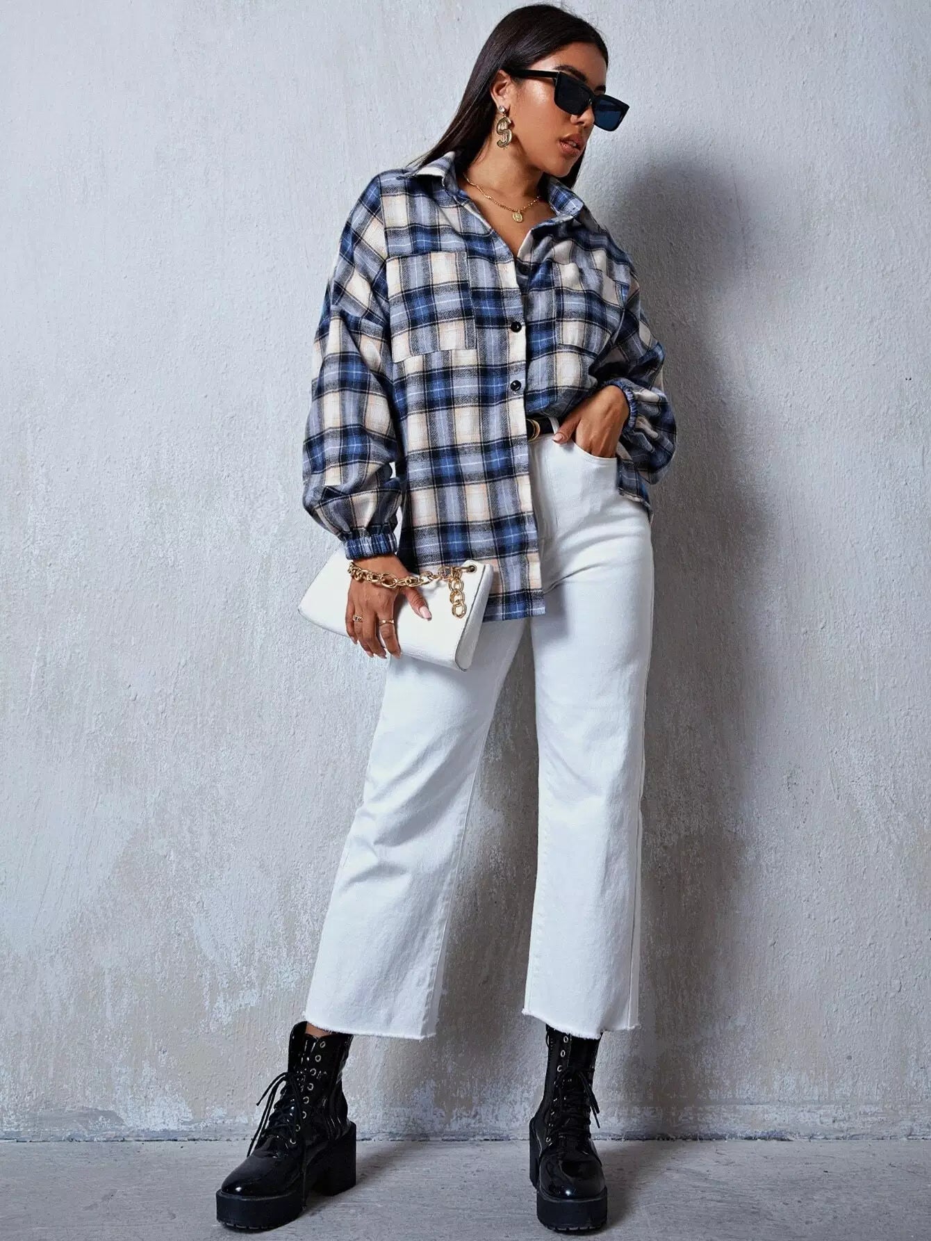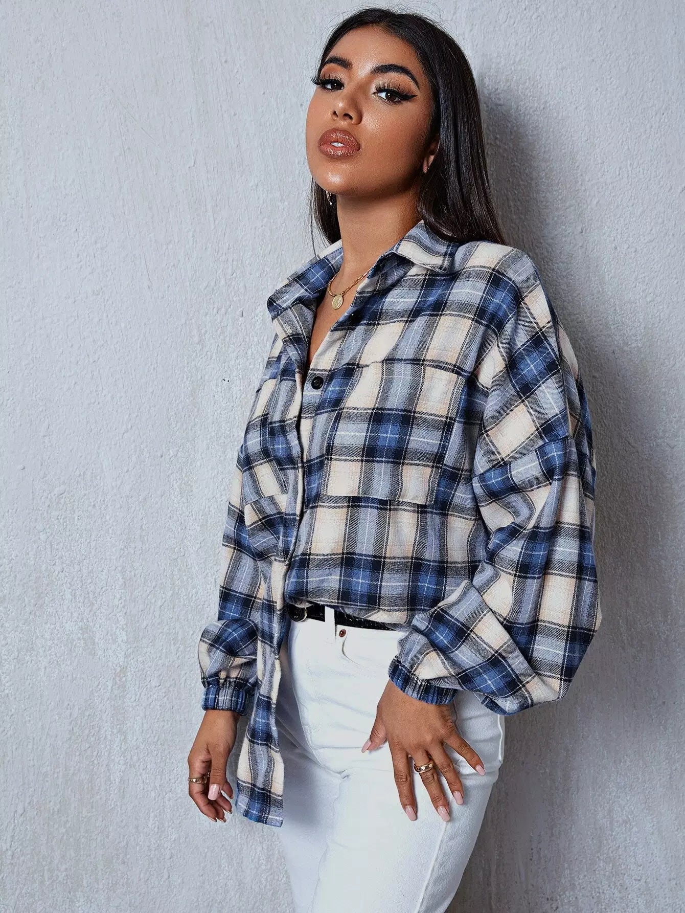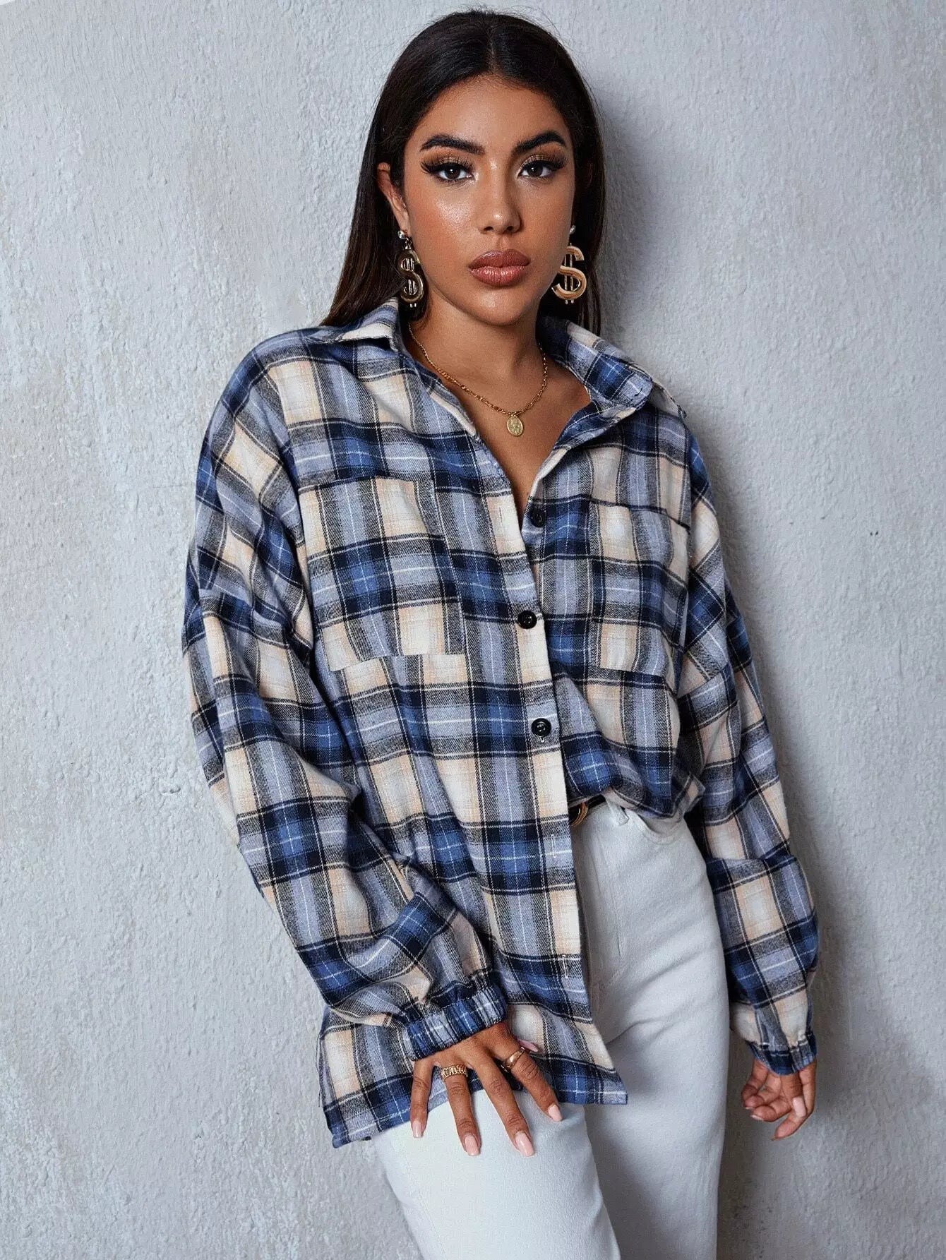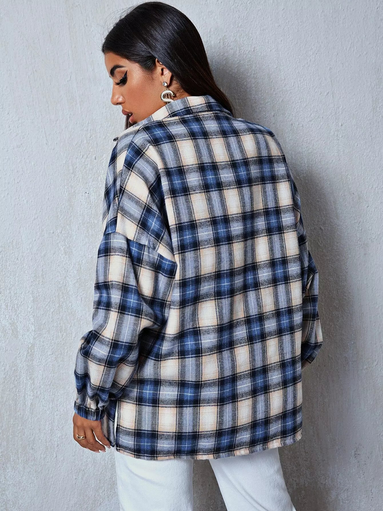 Pocket Patched Drop Shoulder Tartan Overshirt