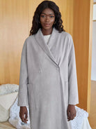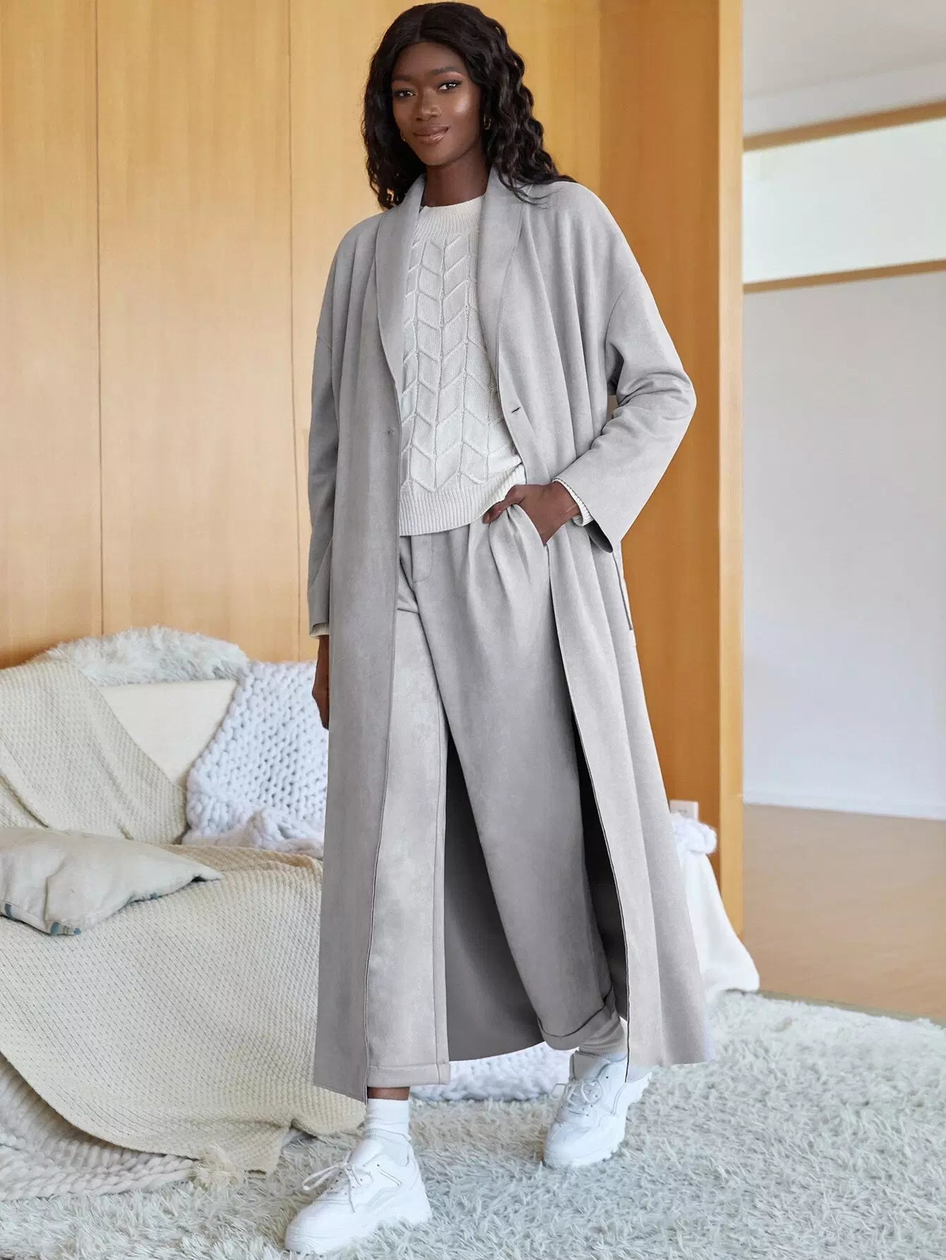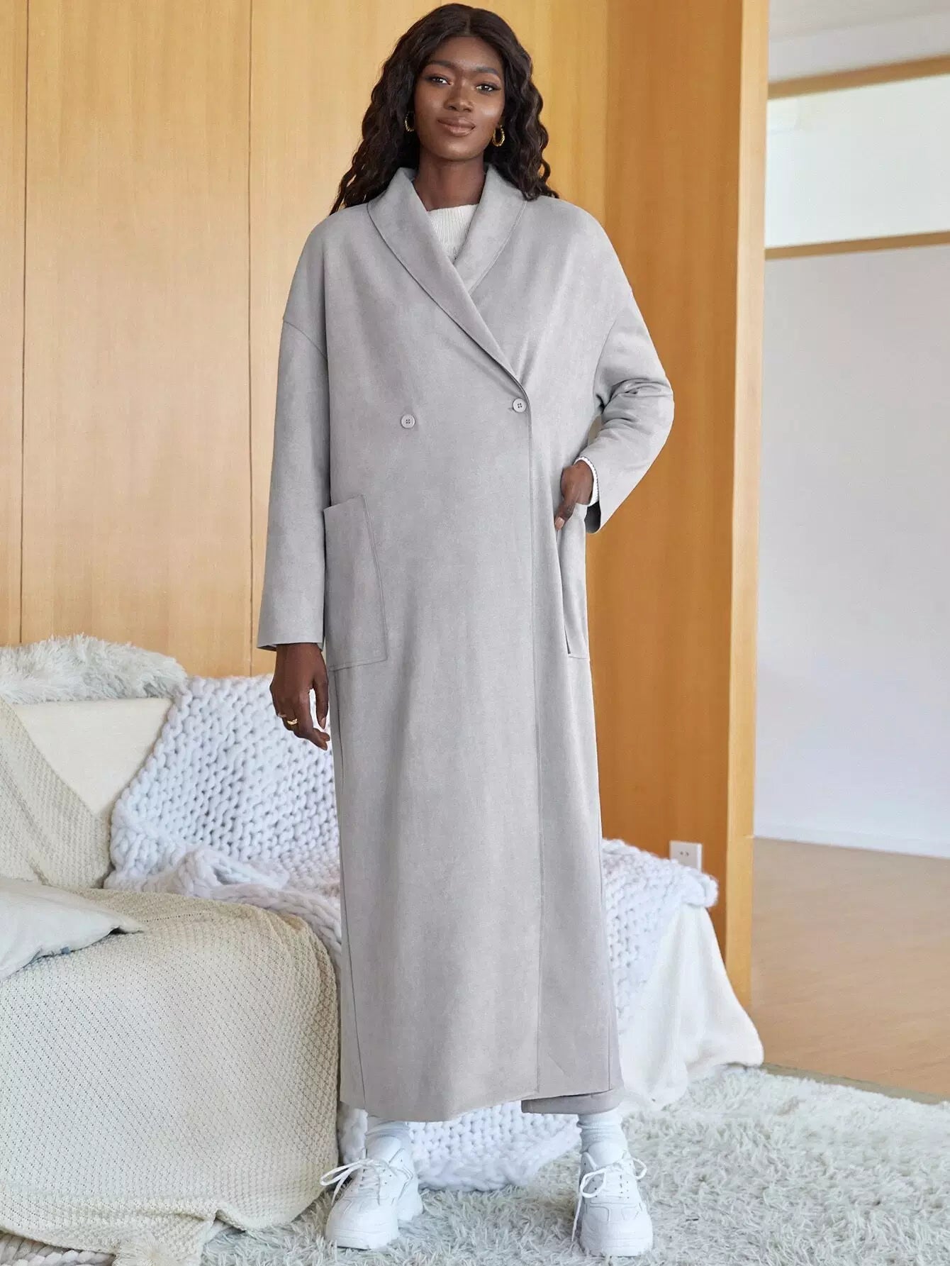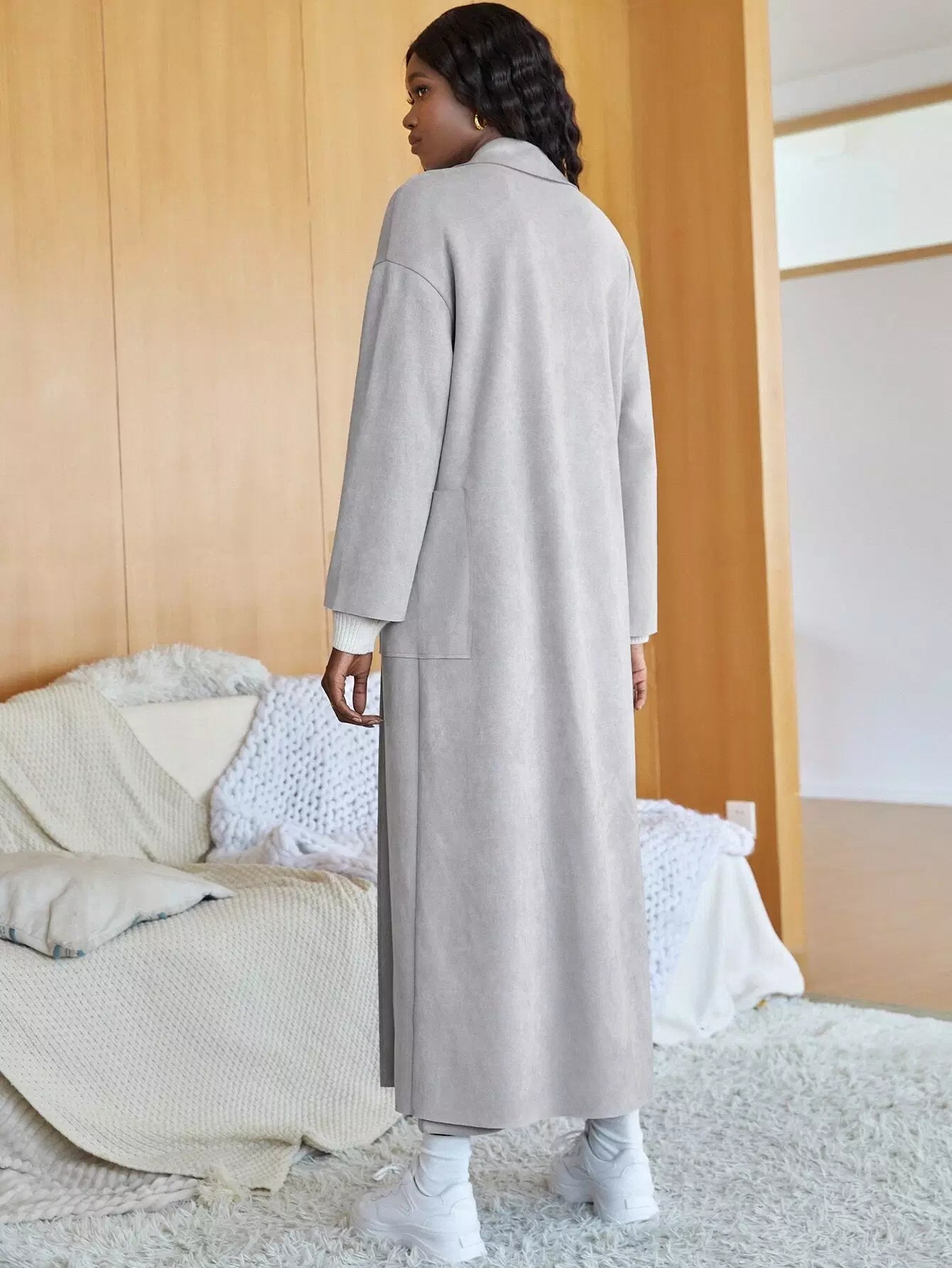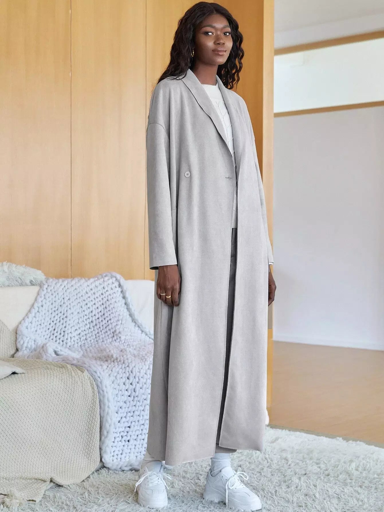 Shawl Collar Drop Shoulder Suedette Longline Coat
