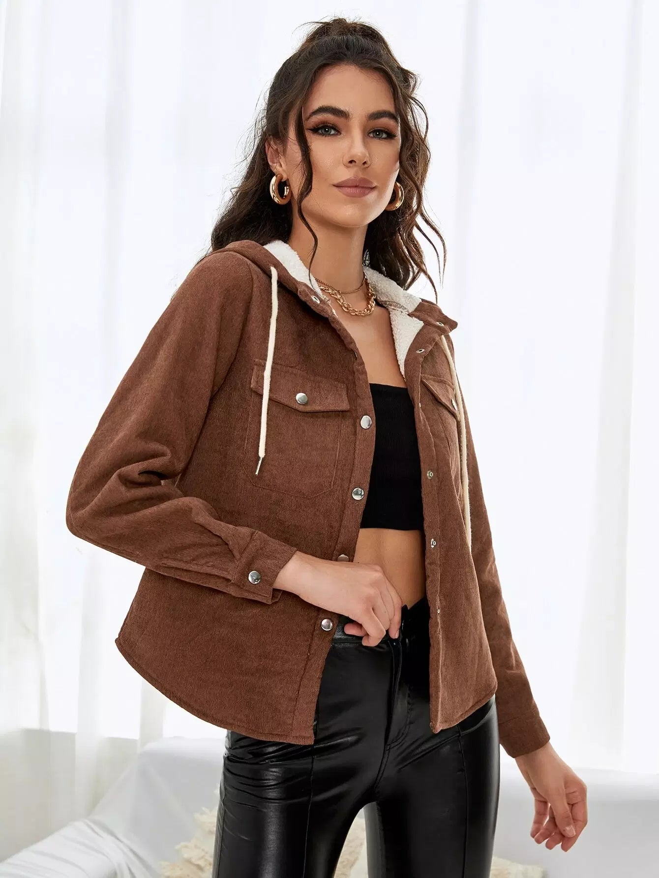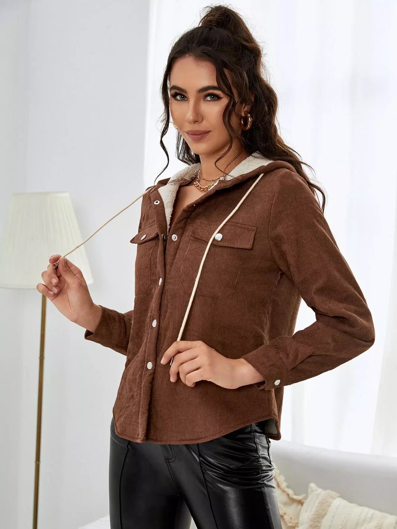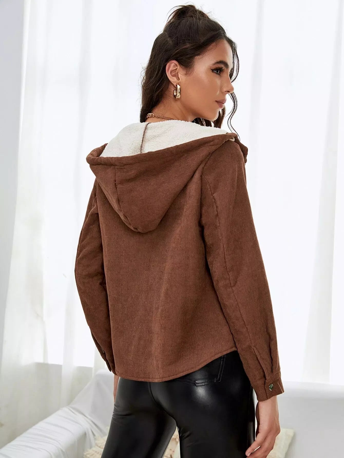 Single Breasted Teddy Lined Drawstring Hooded Coat