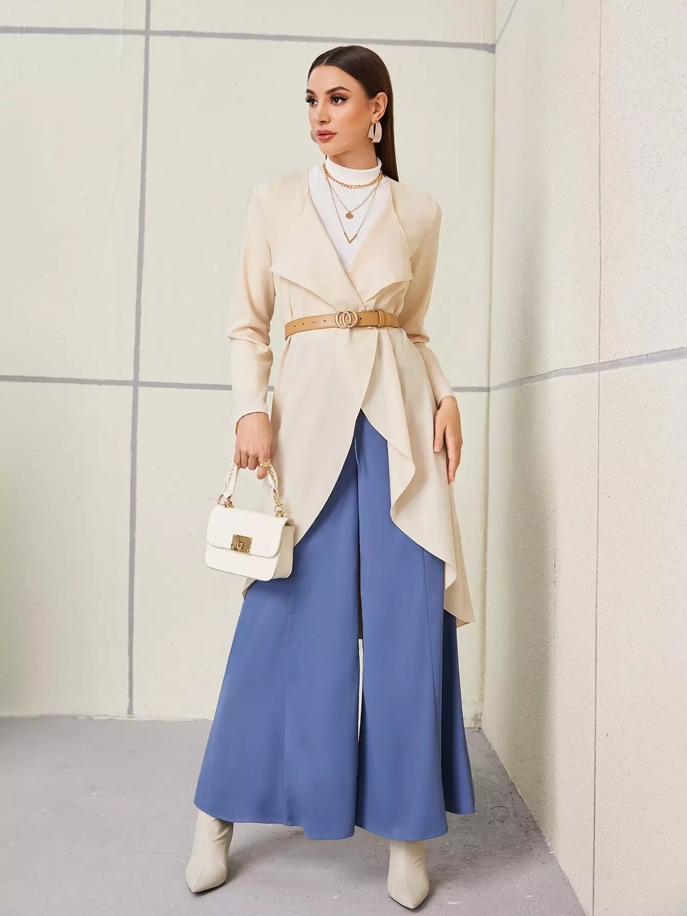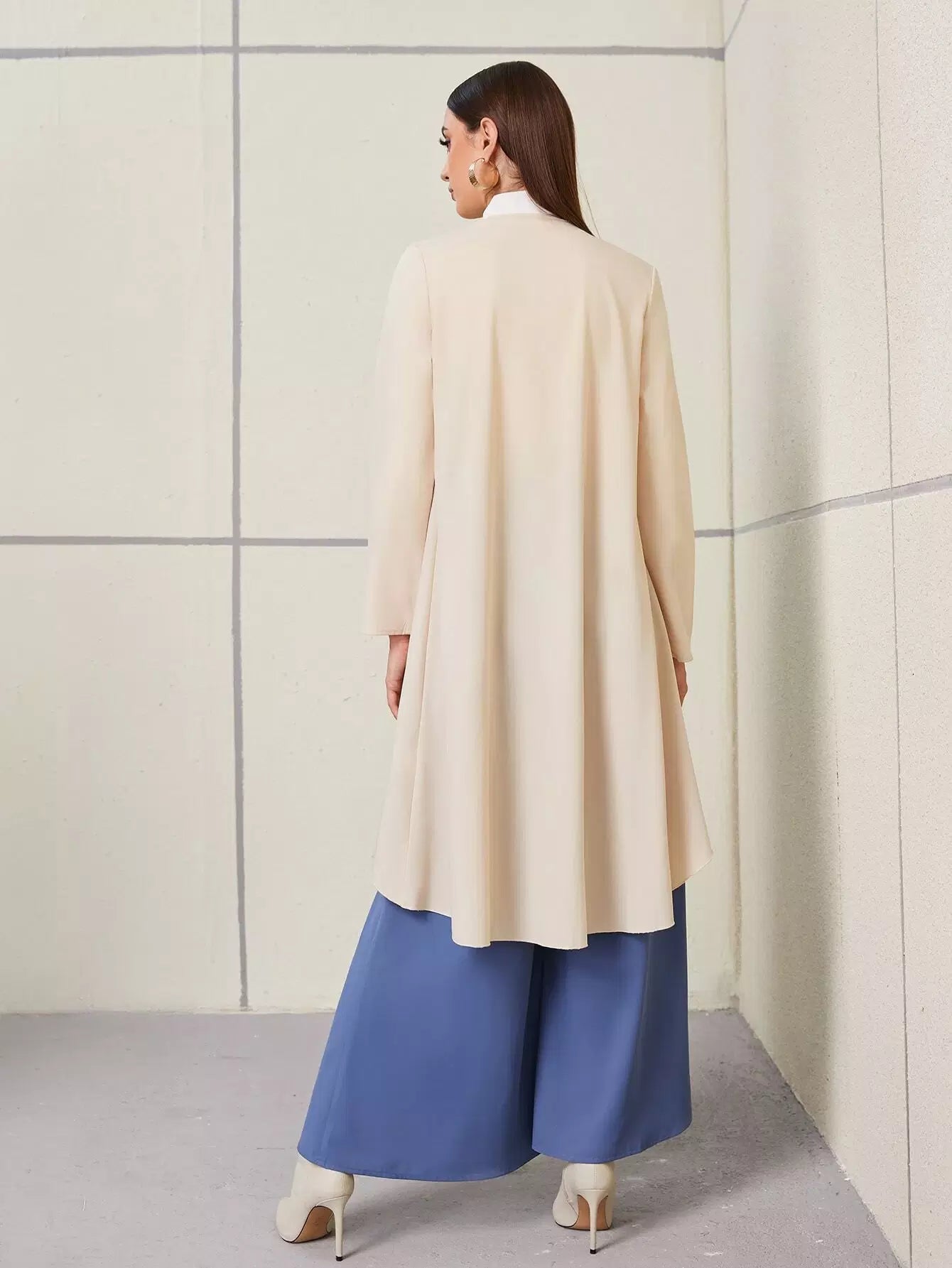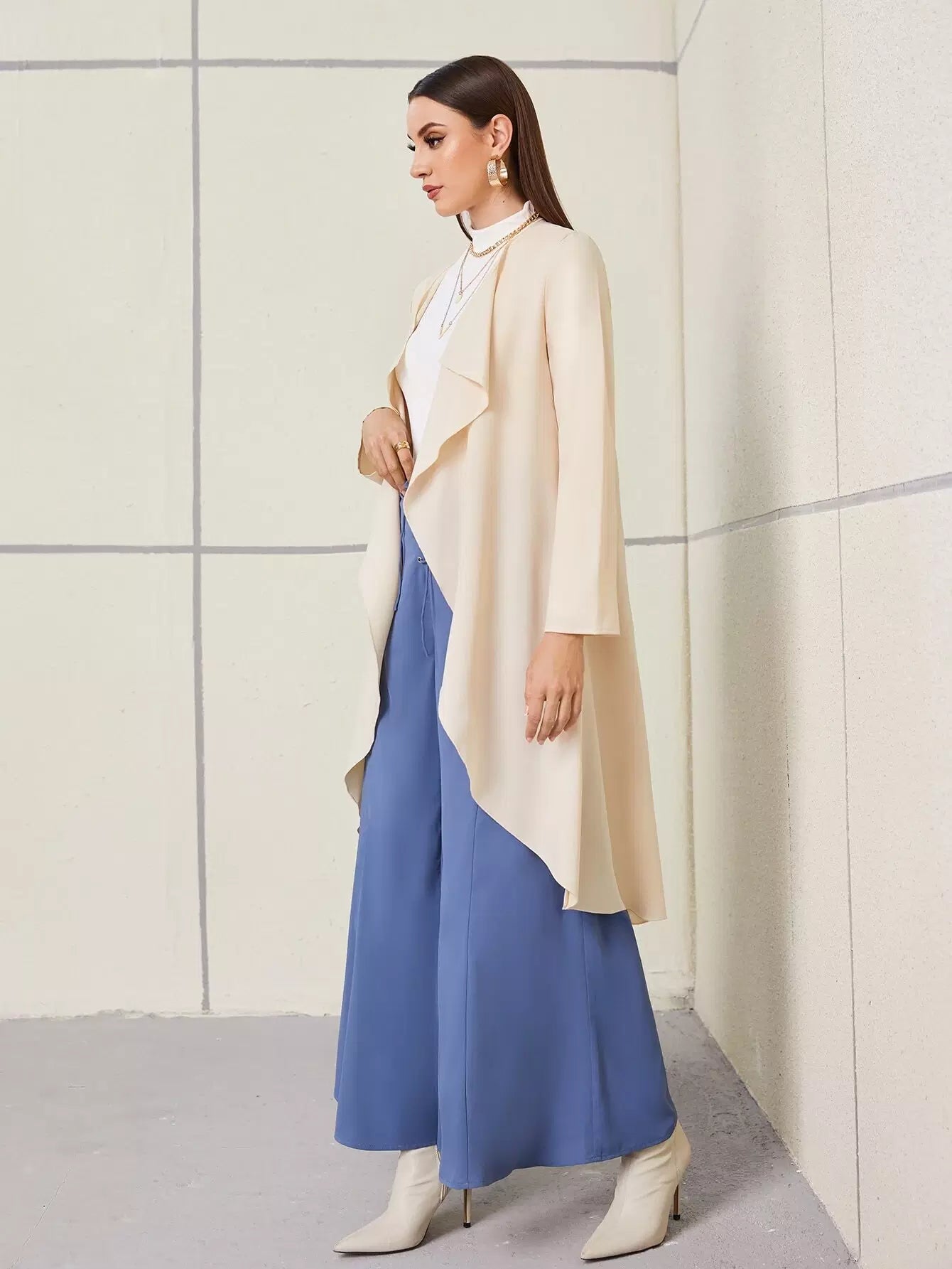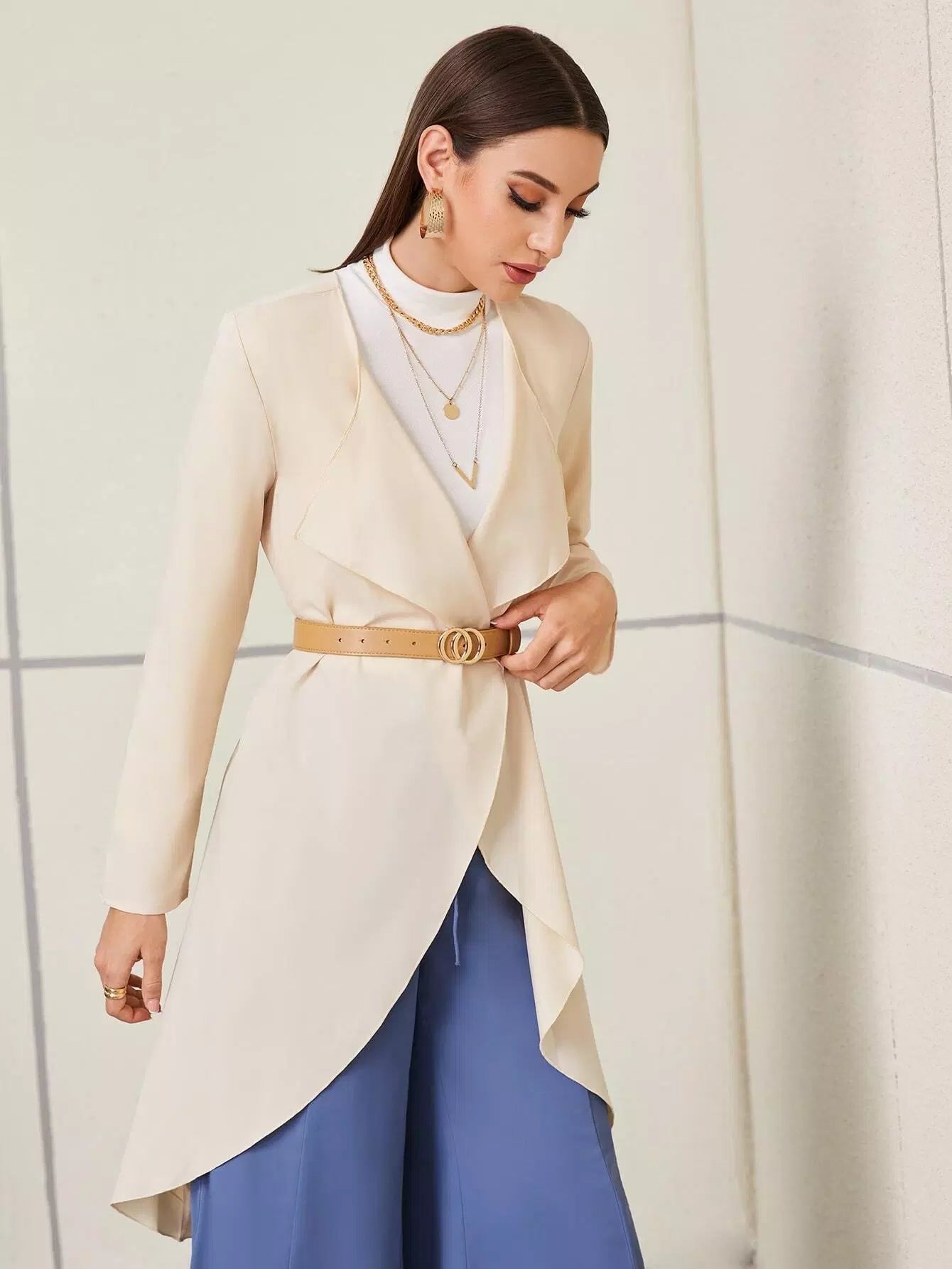 Waterfall Collar Asymmetrical Hem Coat Without Belt