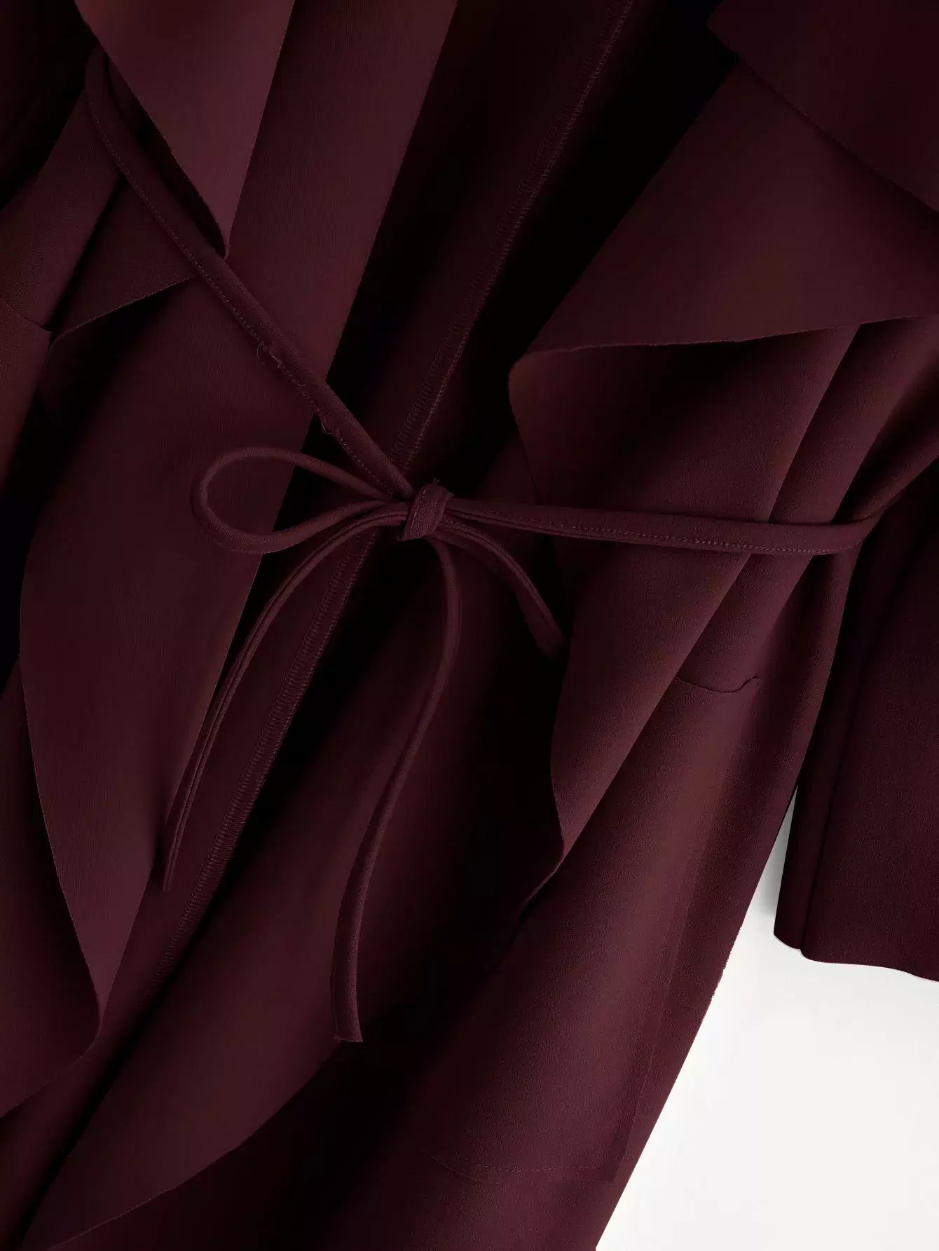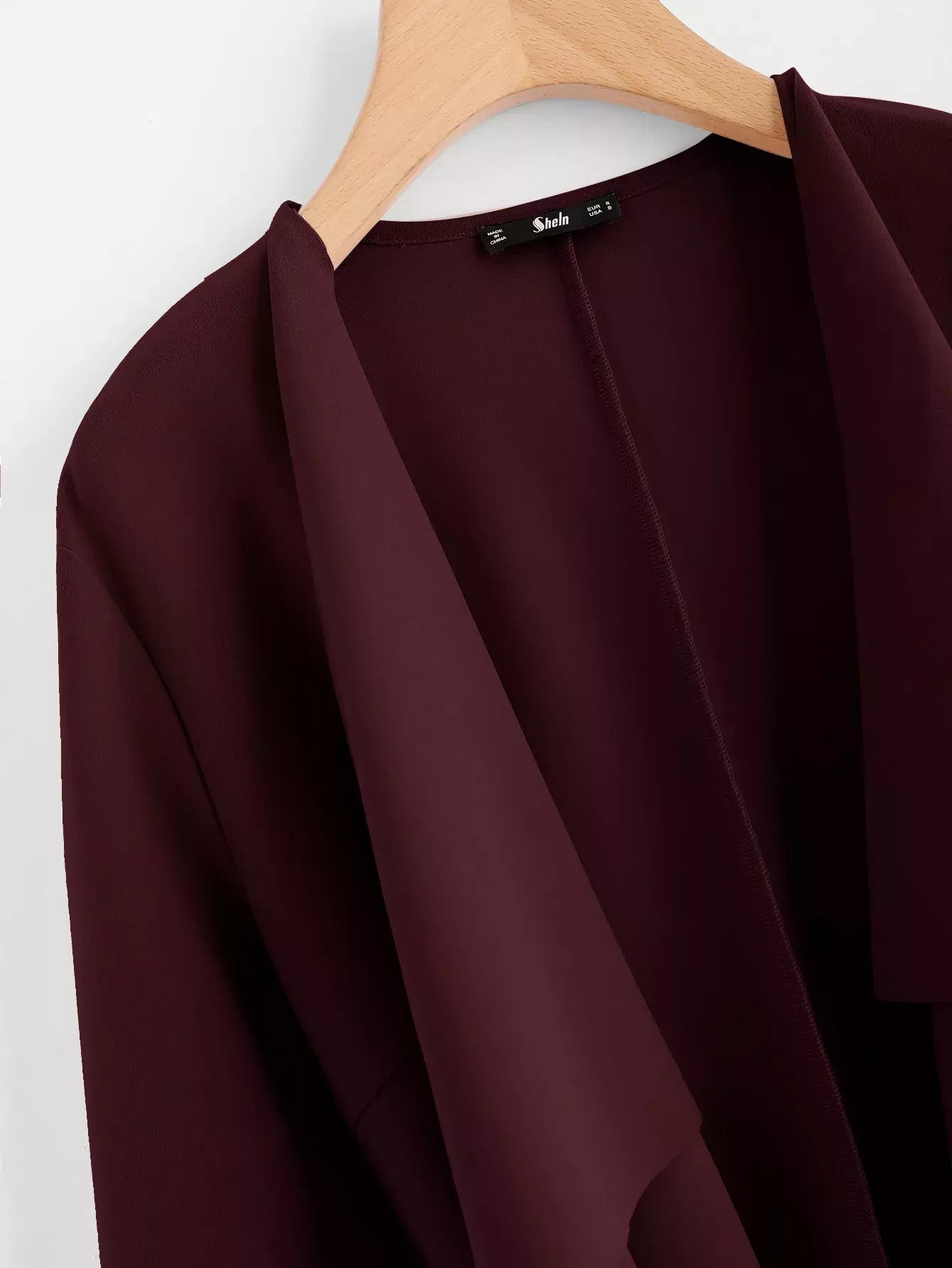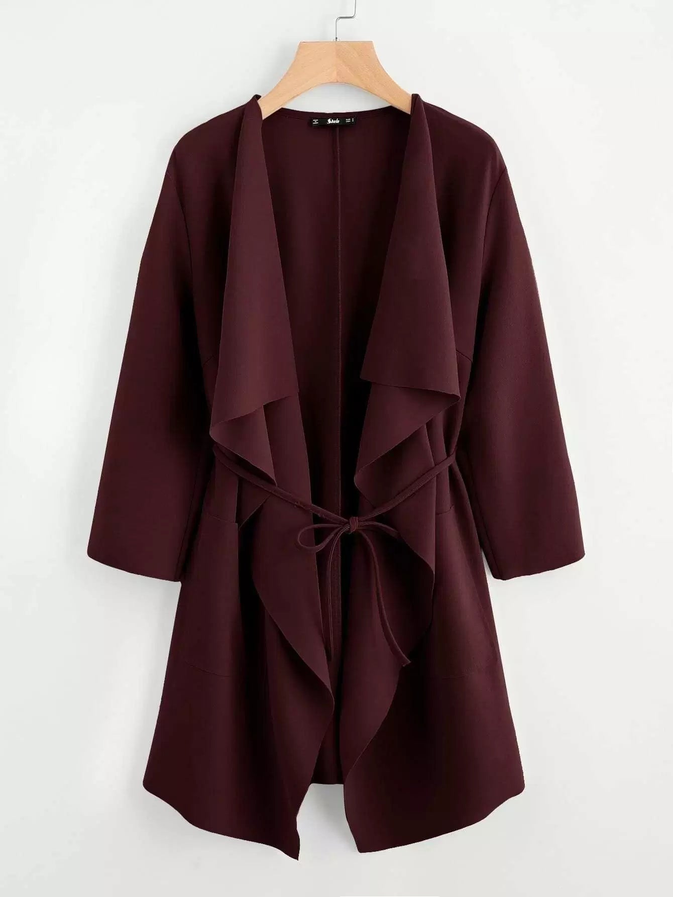 Women - Waterfall Collar Pocket Front Wrap Coat