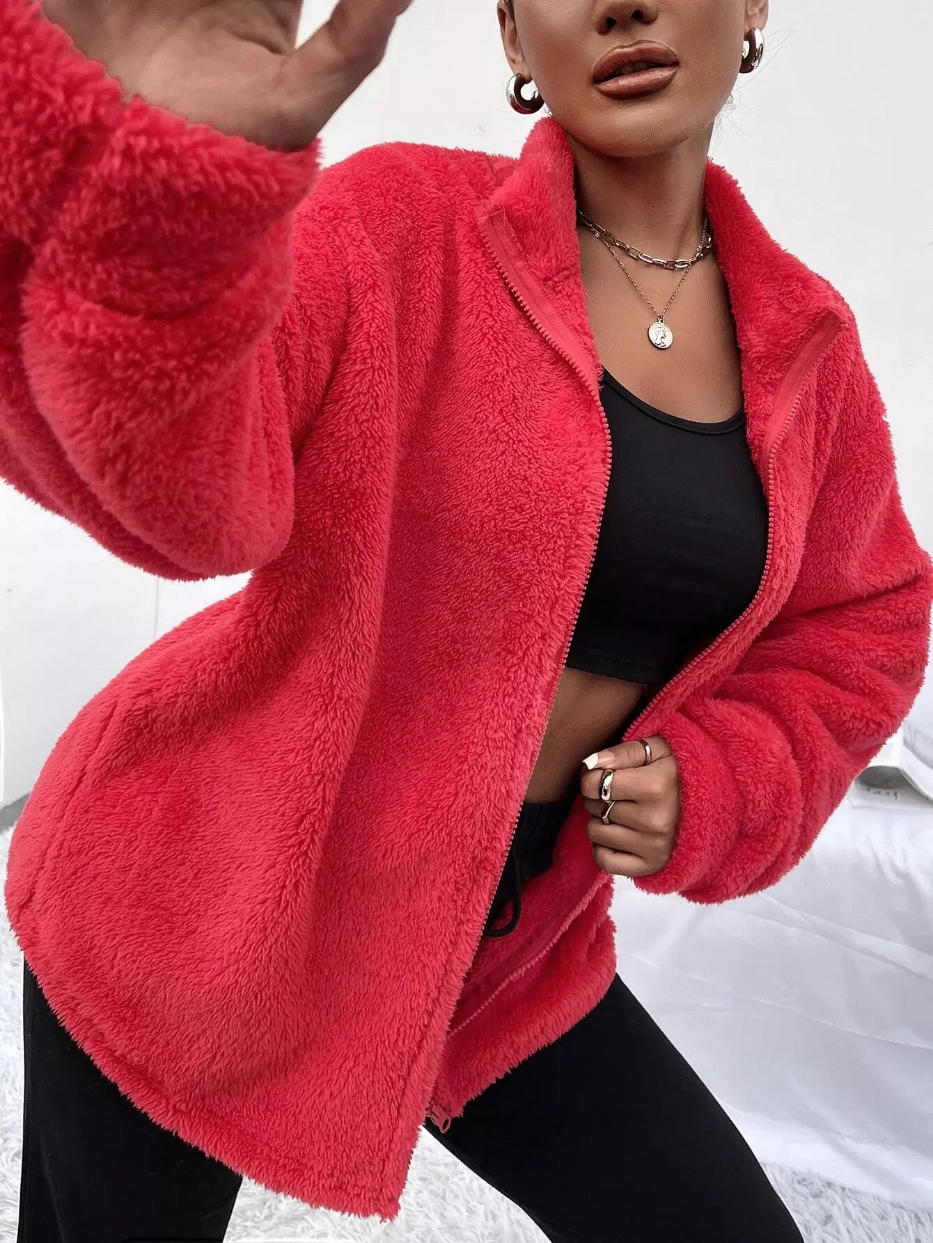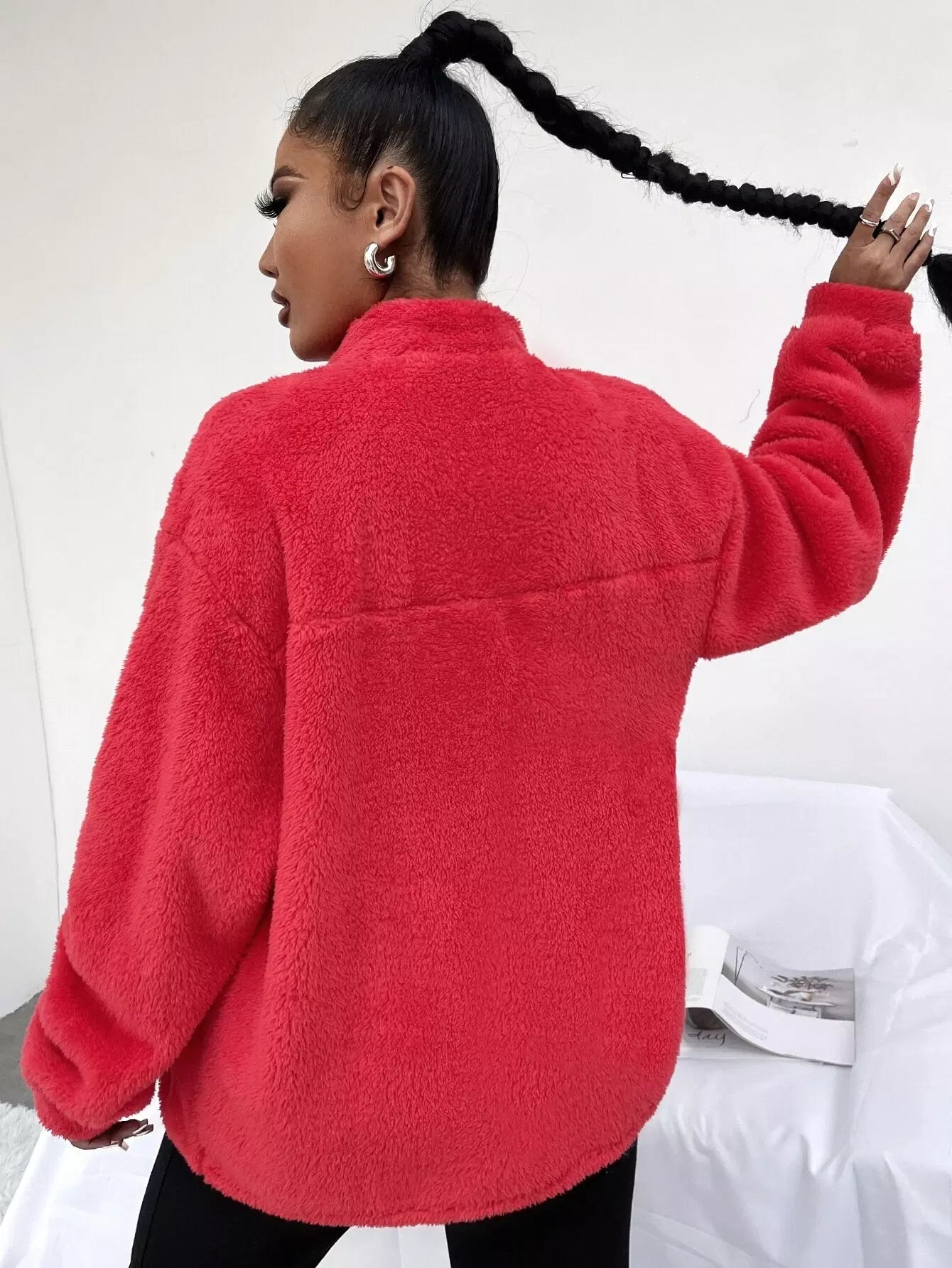 Zip Up Drop Shoulder Flannel Coat