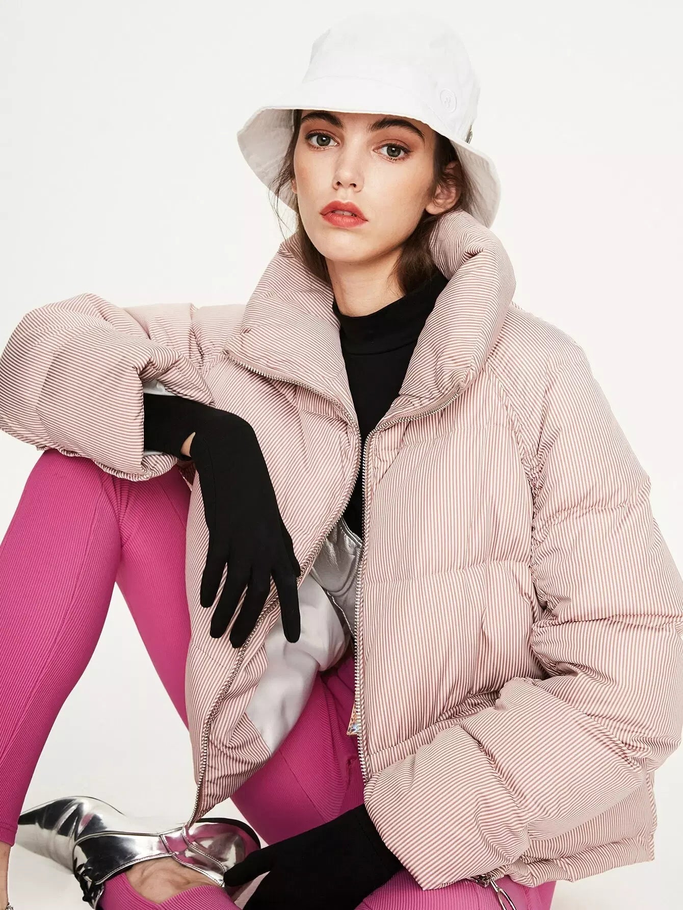Zip Up Raglan Sleeve Striped Down Coat