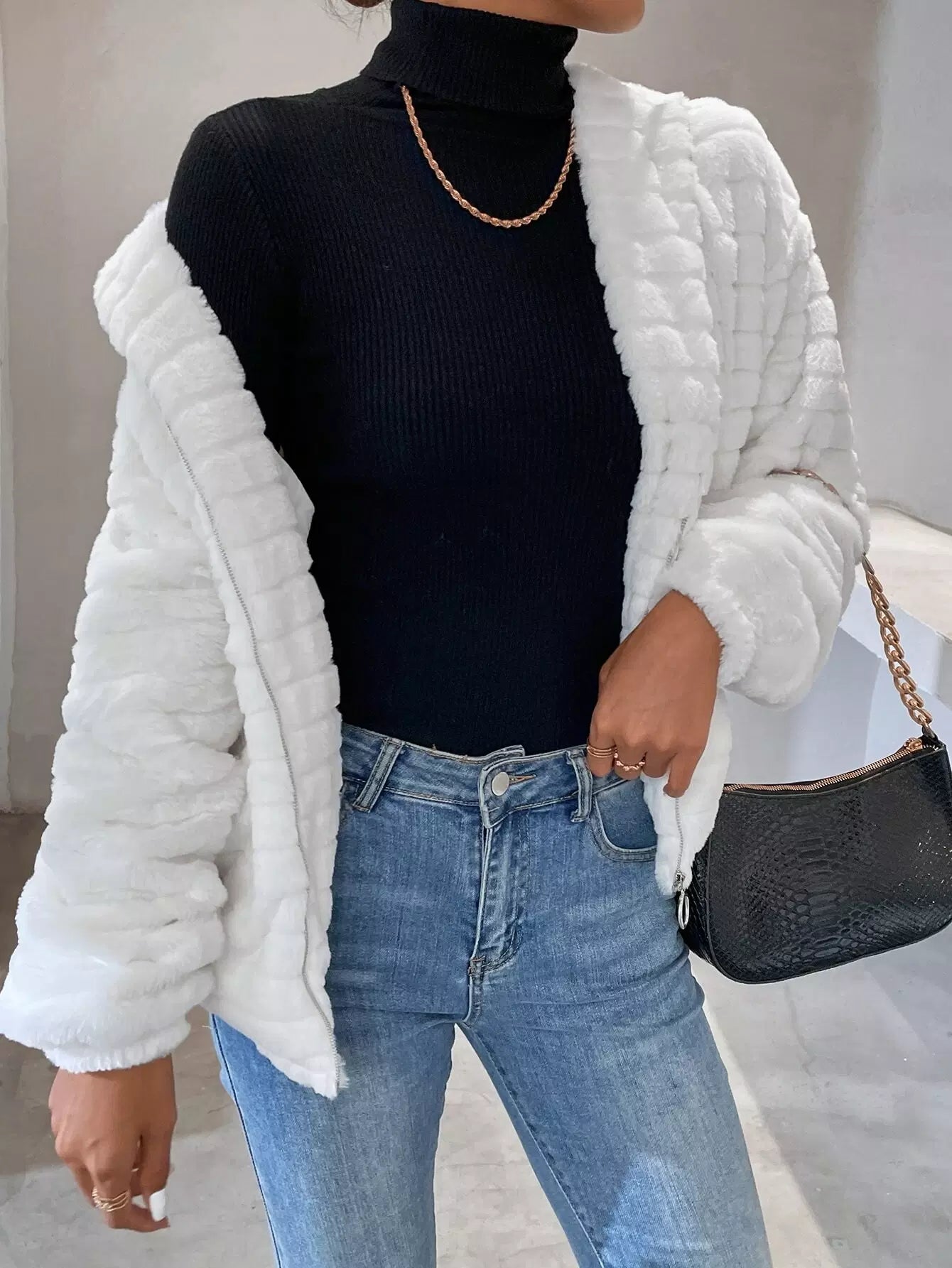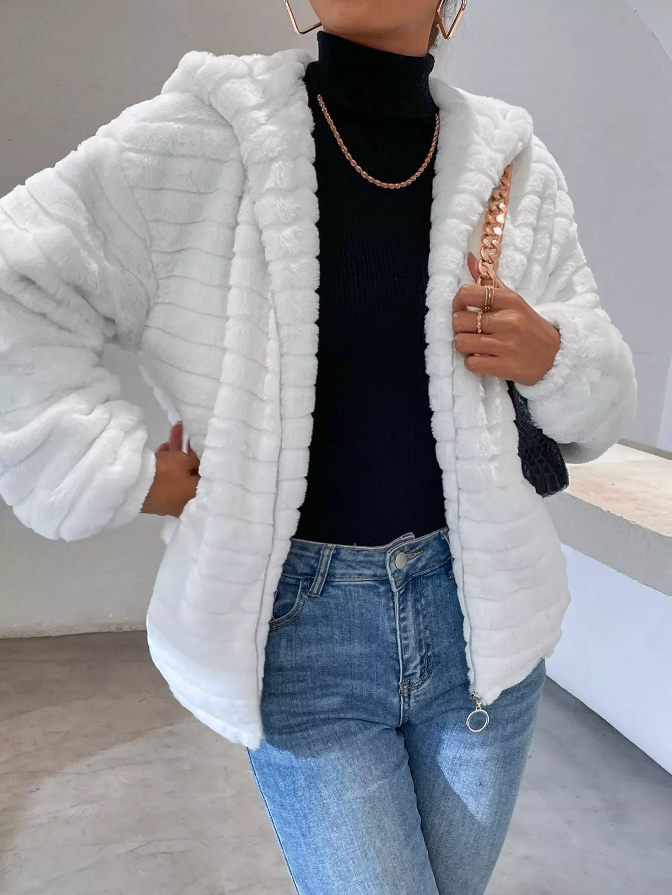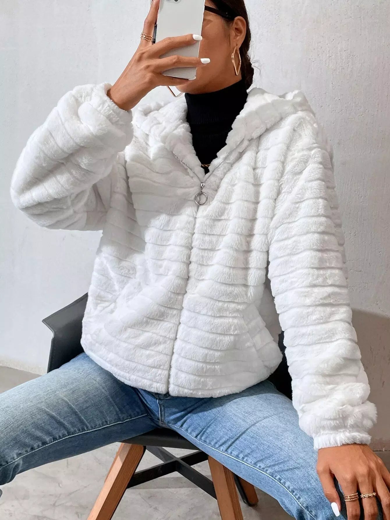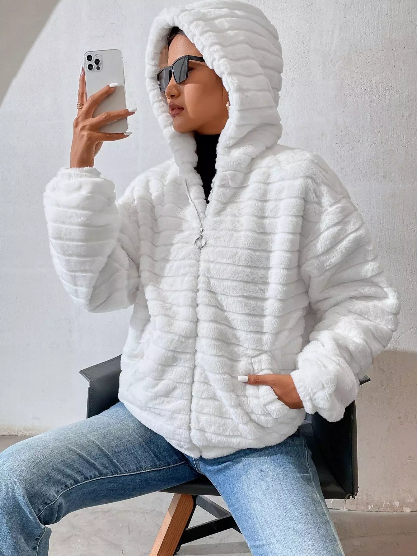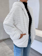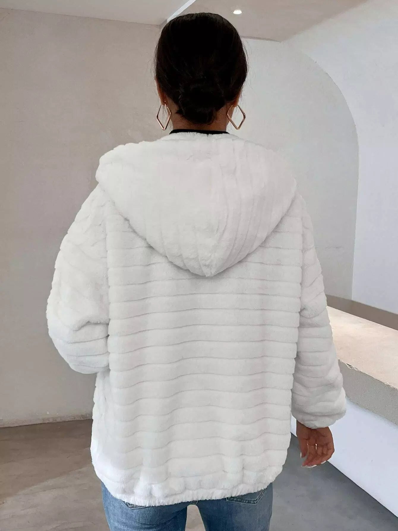 Slant Pockets Drop Shoulder Hooded Fuzzy Coat