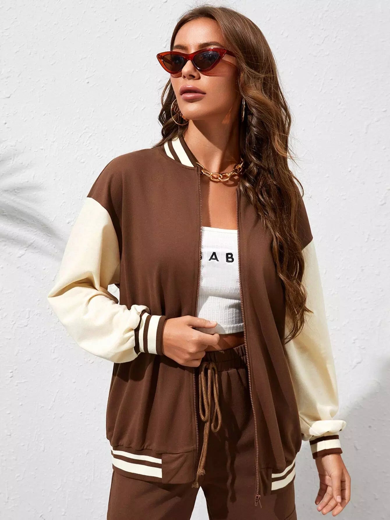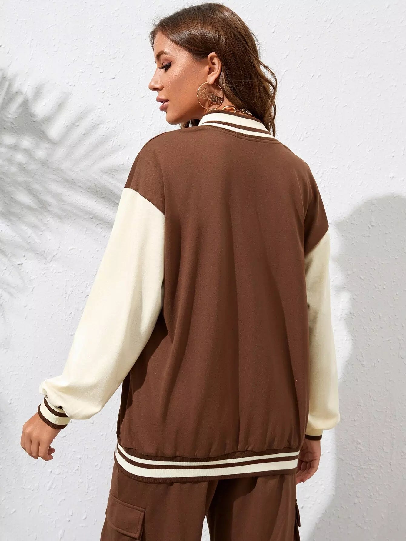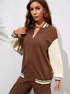 Baseball Collar Contrast Drop Shoulder Zip Front Jacket