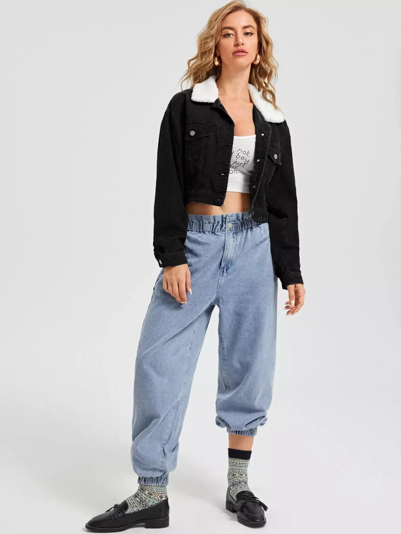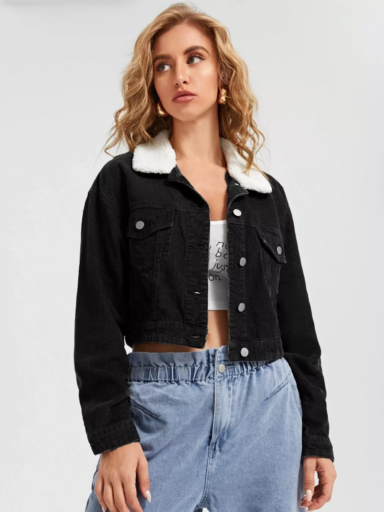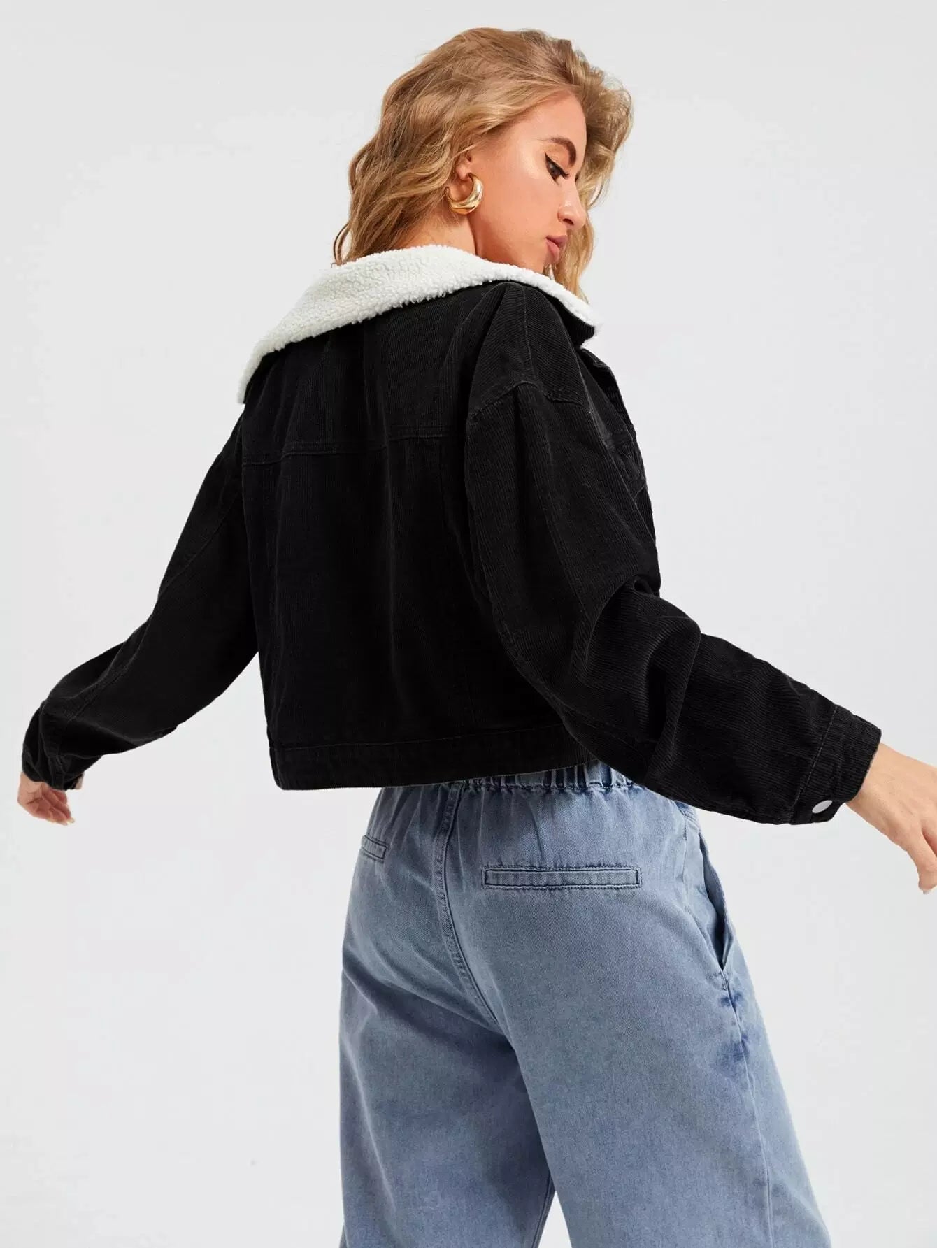 Contrast Teddy Collar Flap Pocket Cord Jacket