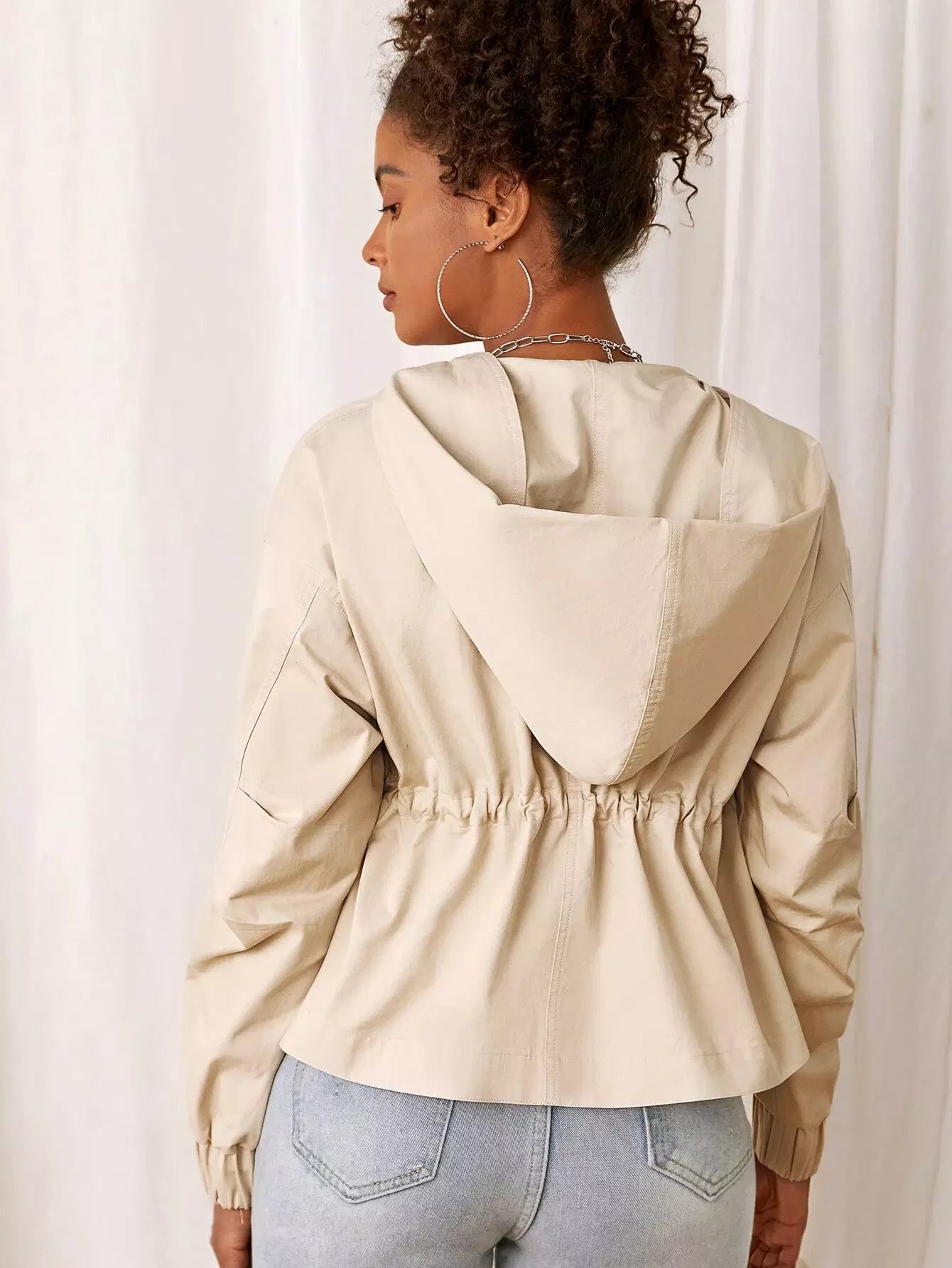 Flap Detail Drop Shoulder Hooded Jacket