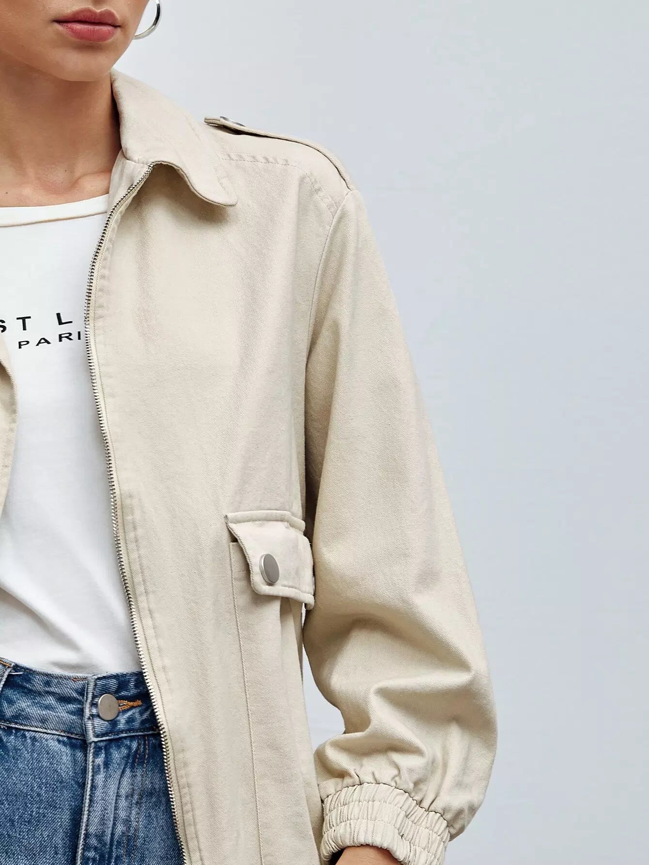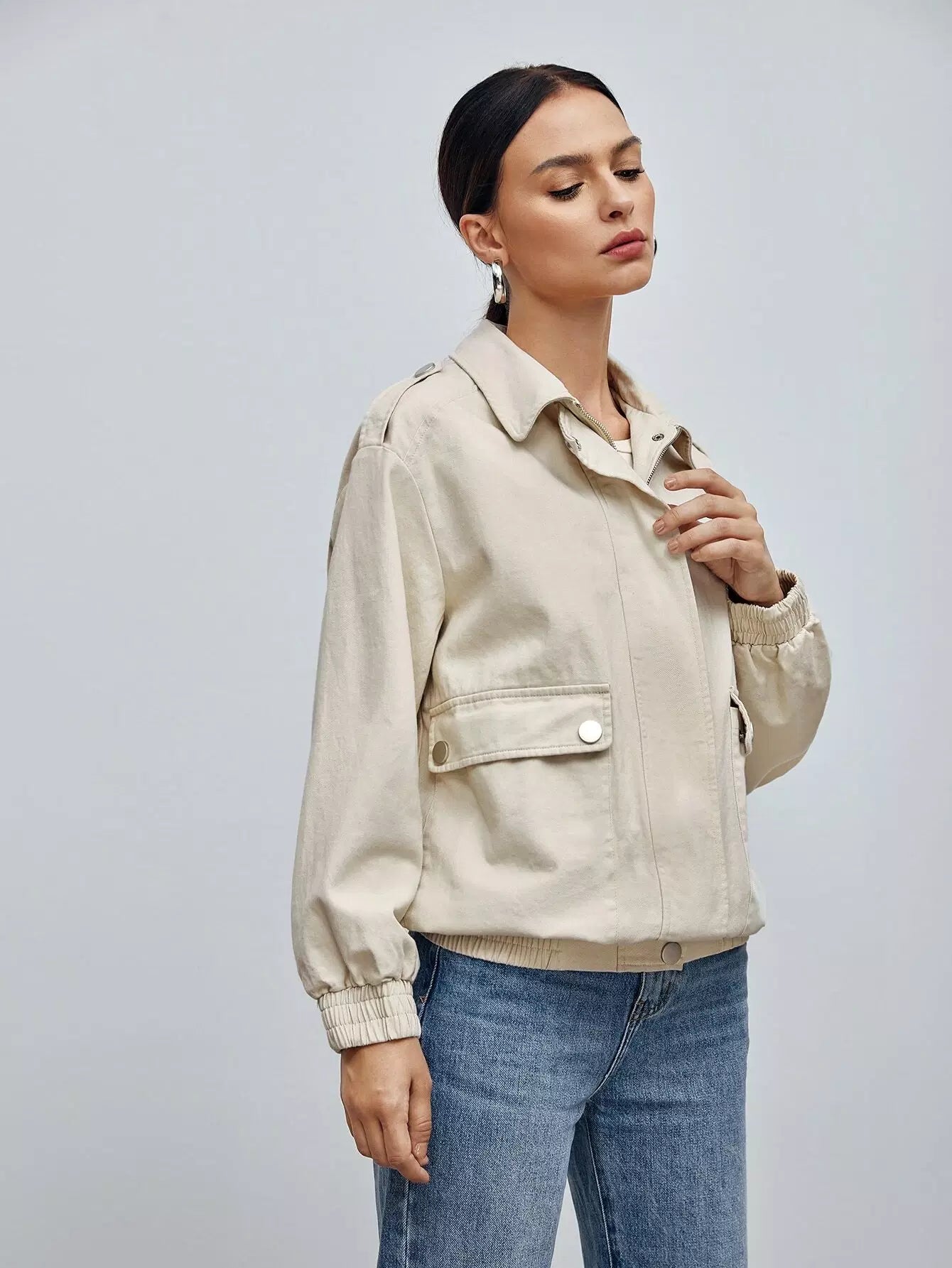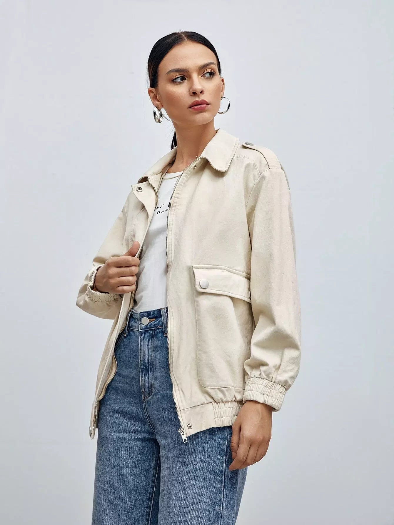Flap Pocket Zip Up Jacket