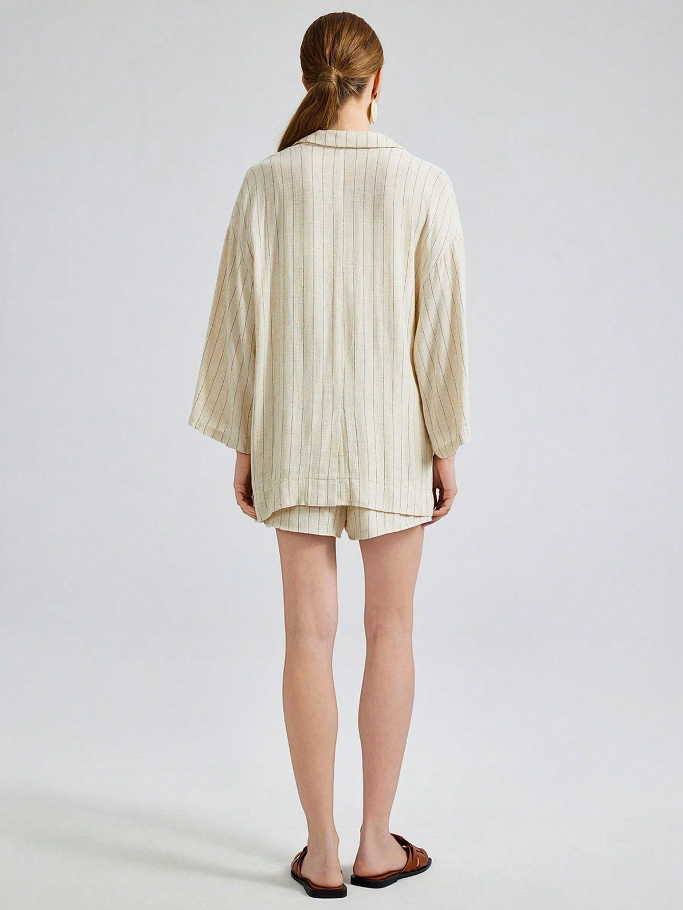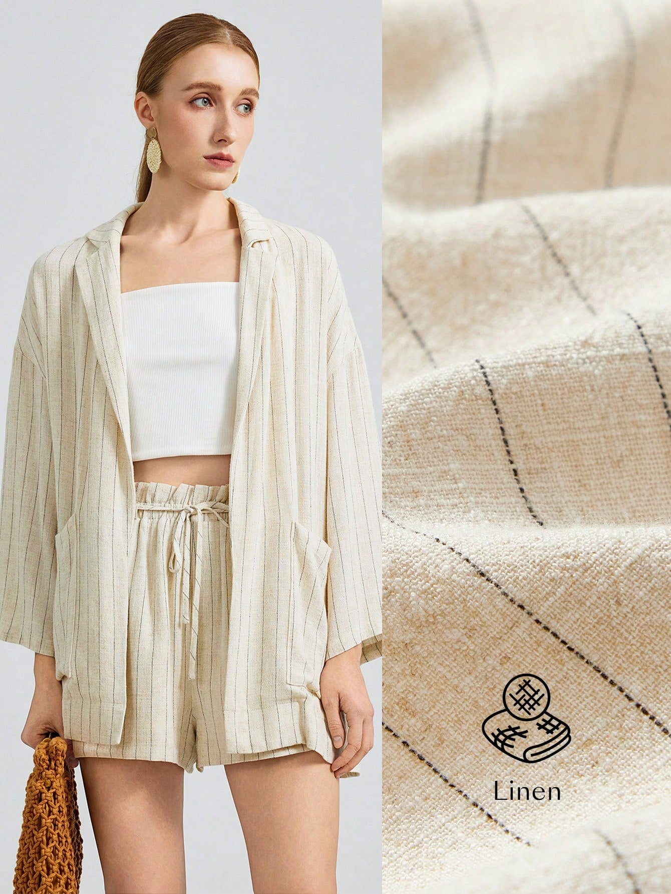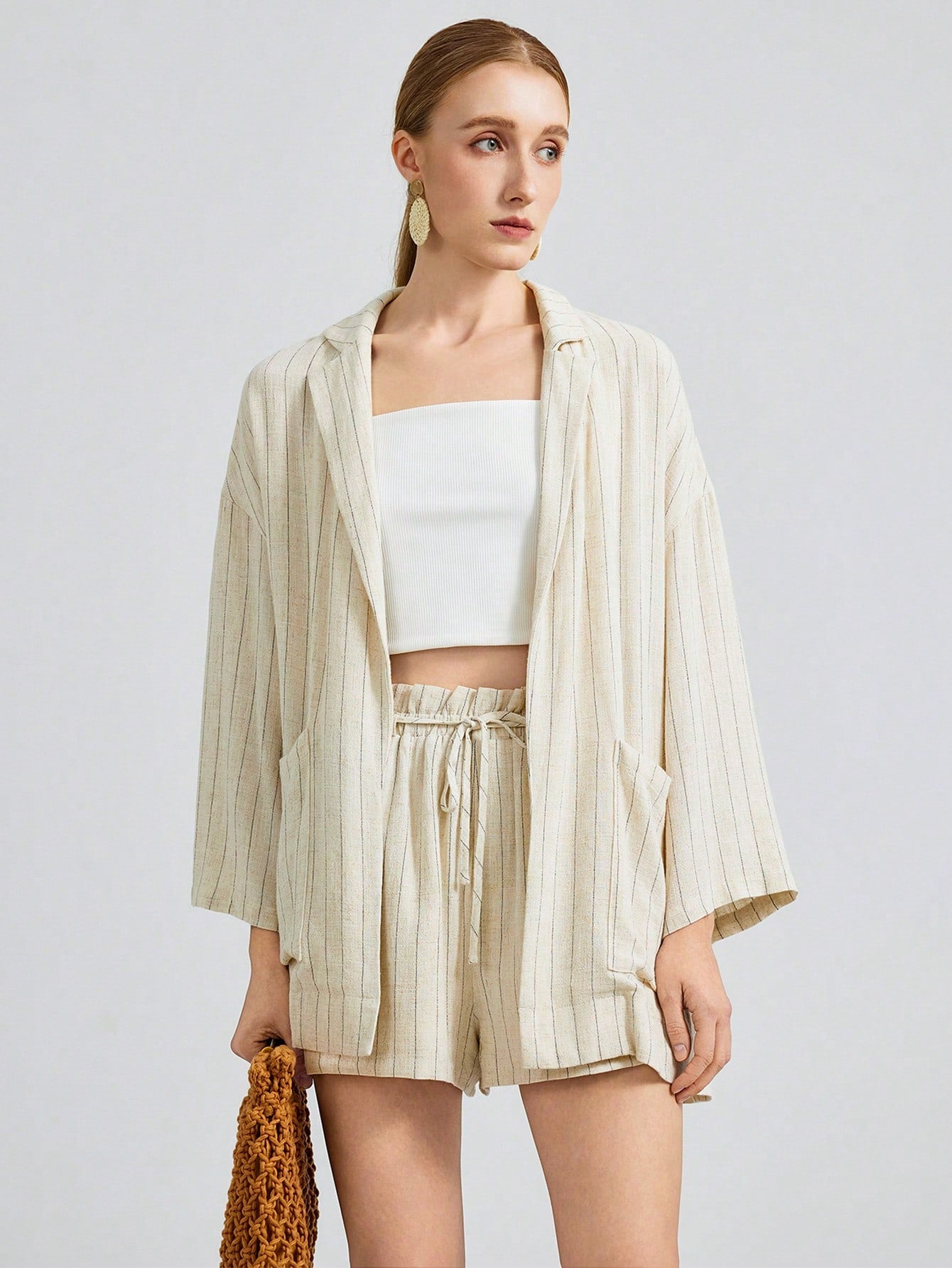 Ontre 2025 New Fashion Striped Casual Blazer Jacket, Vacation Style Striped 3/4 Sleeve Notched Collar