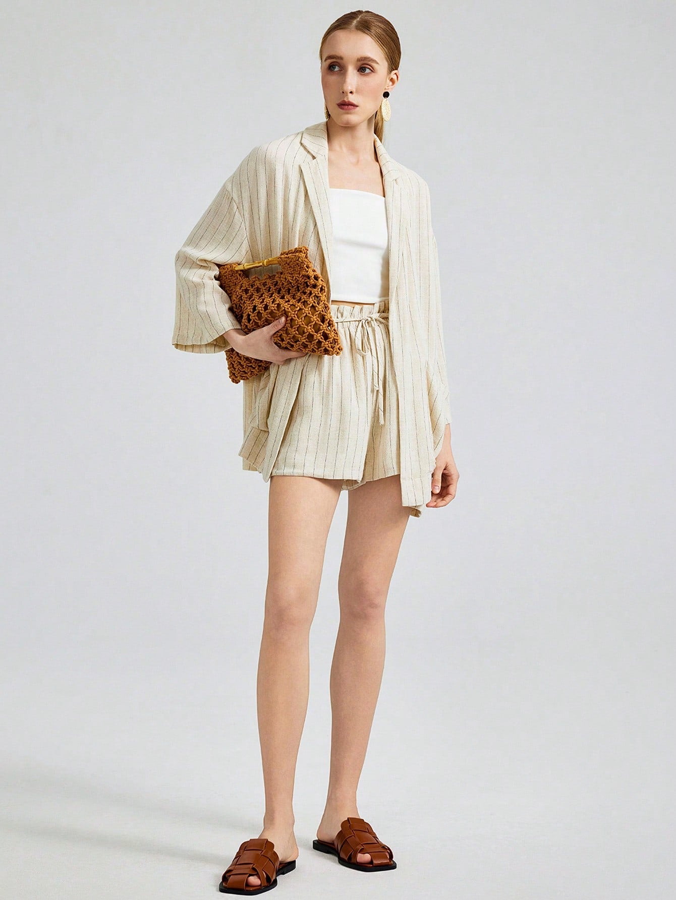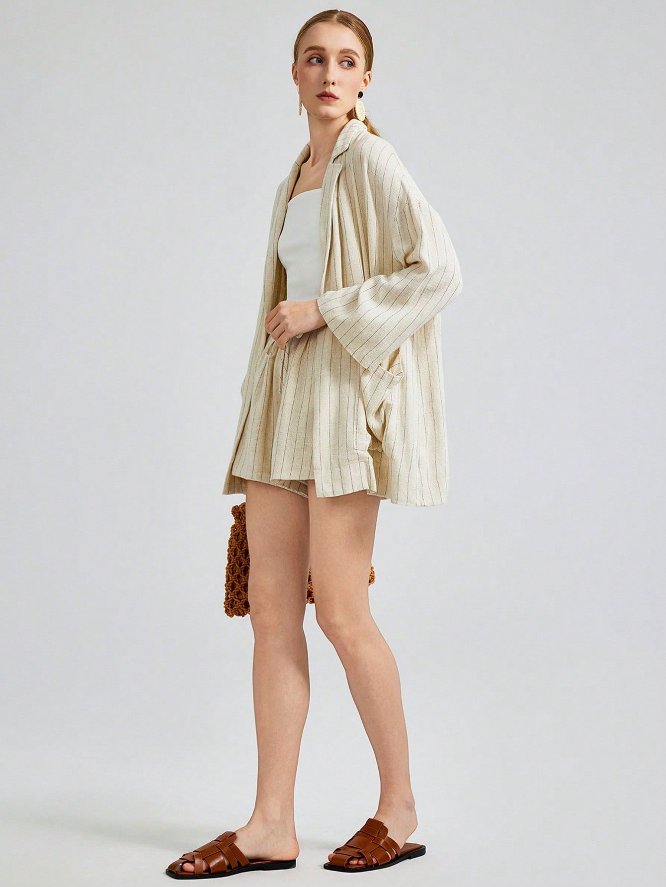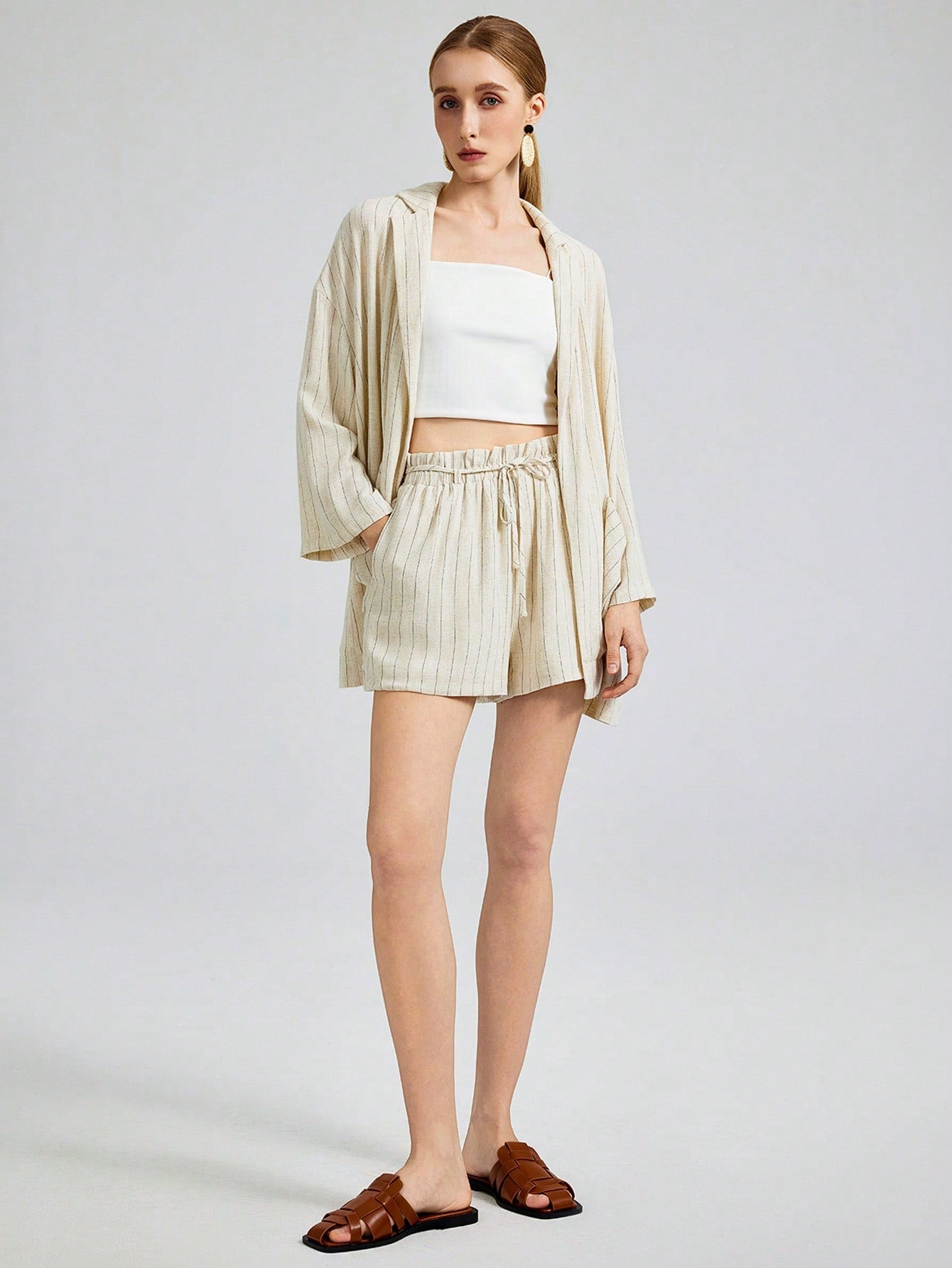 Ontre 2025 New Fashion Striped Casual Blazer Jacket, Vacation Style Striped 3/4 Sleeve Notched Collar