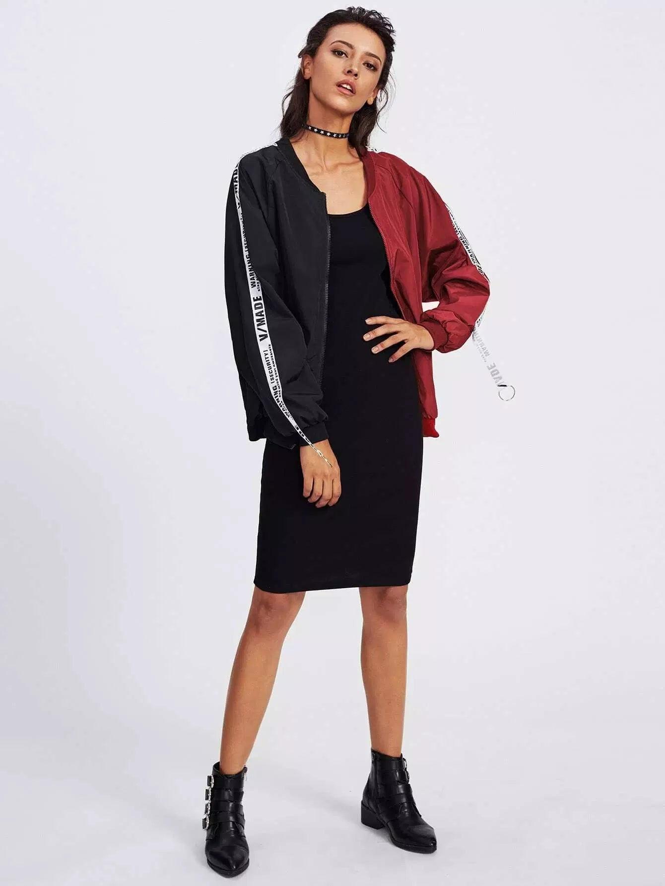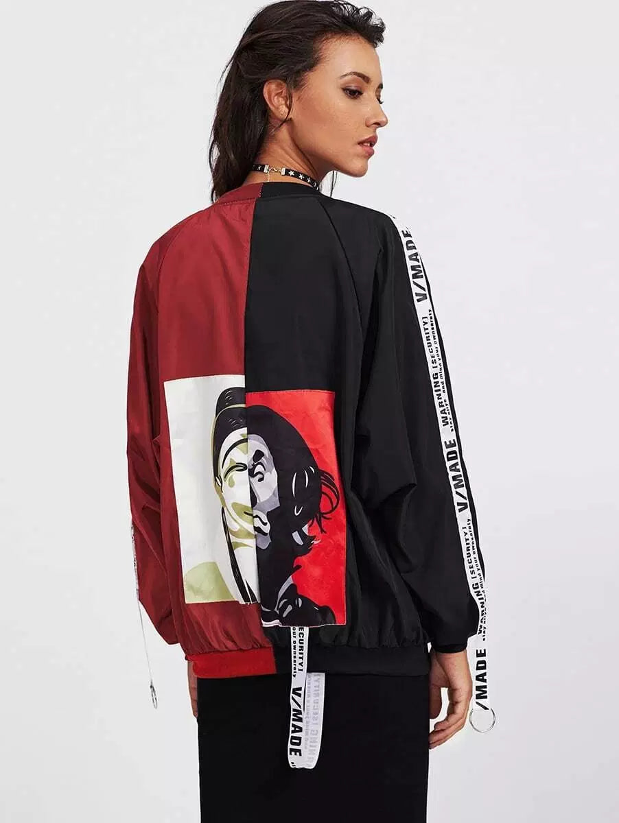 Patch Back Ribbon Detail Two Tone Bomber Jacket