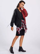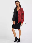 Women - Patch Back Ribbon Detail Two Tone Bomber Jacket