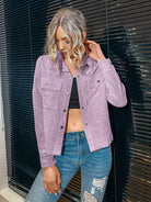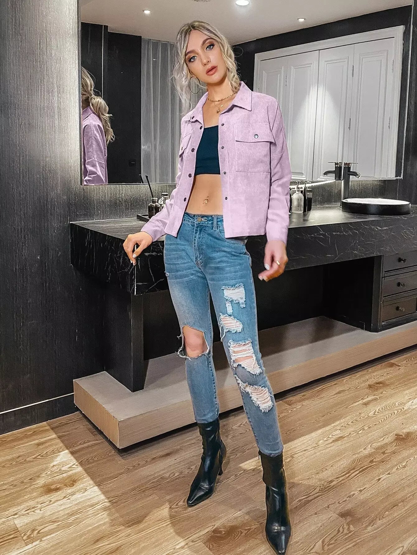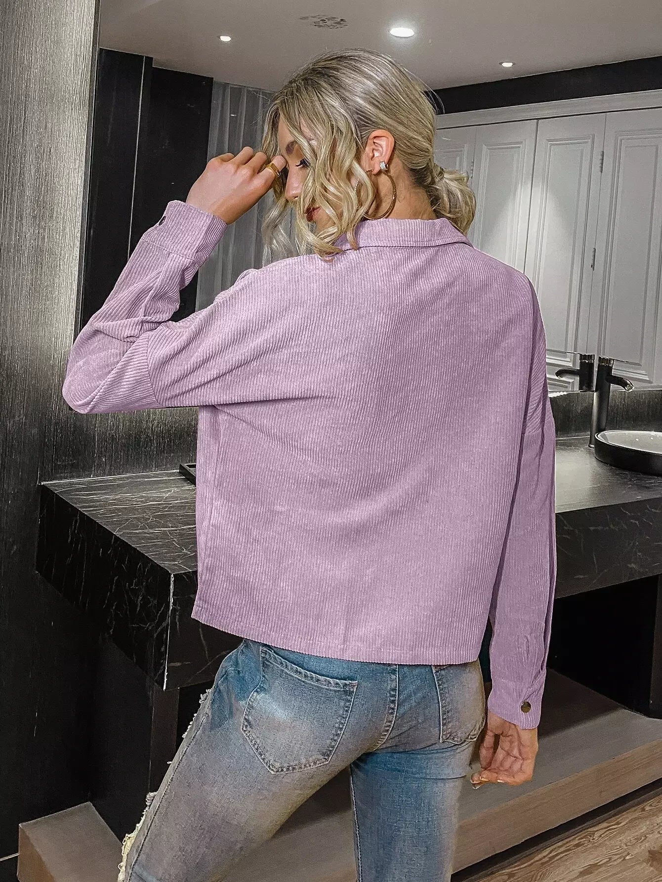 Popper Button Front Drop Shoulder Corduroy Jacket