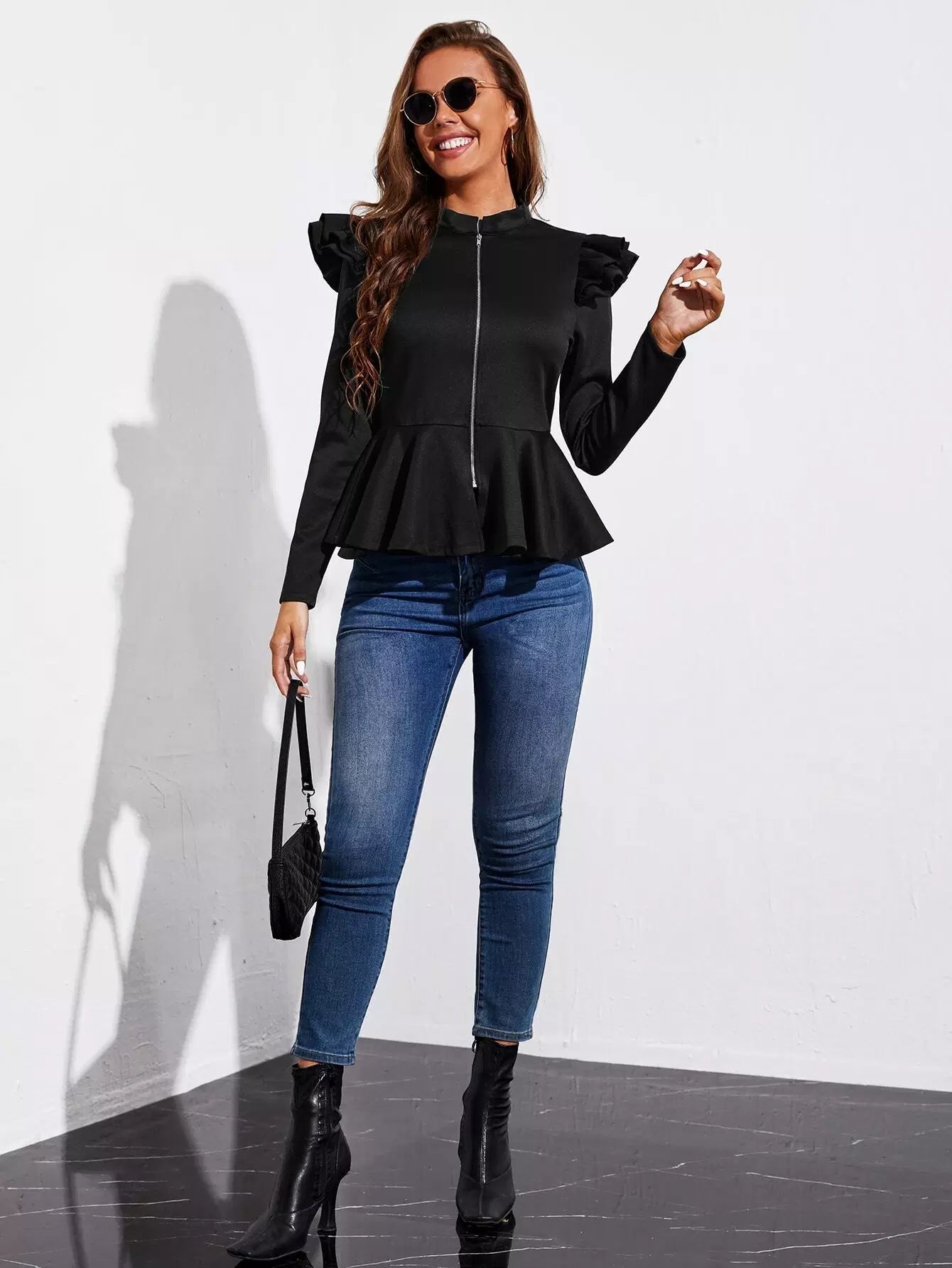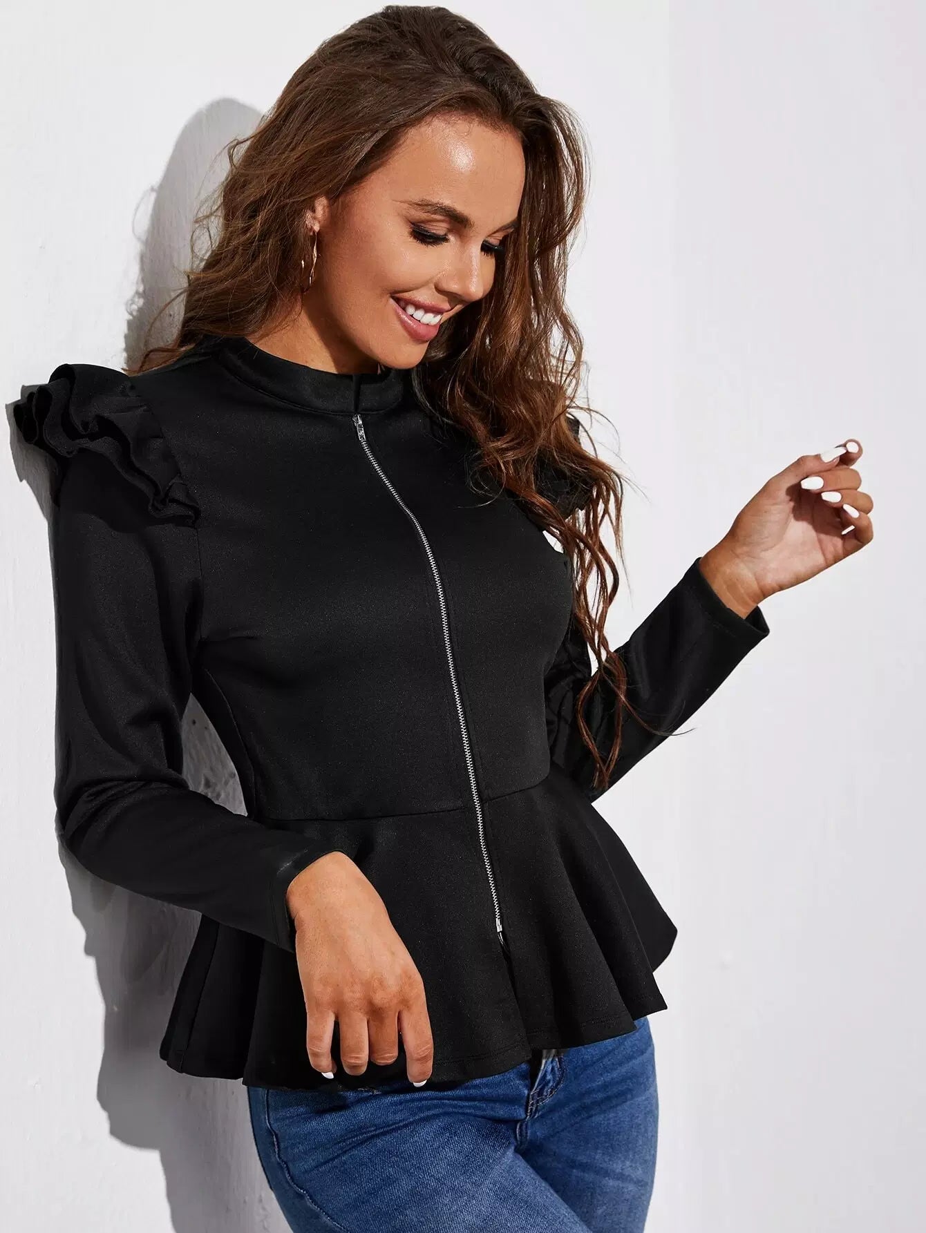 Ruffle Trim Peplum Jacket