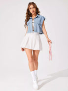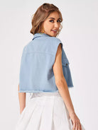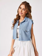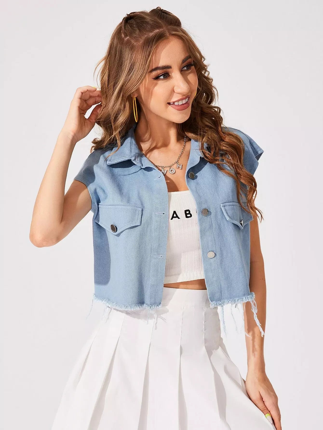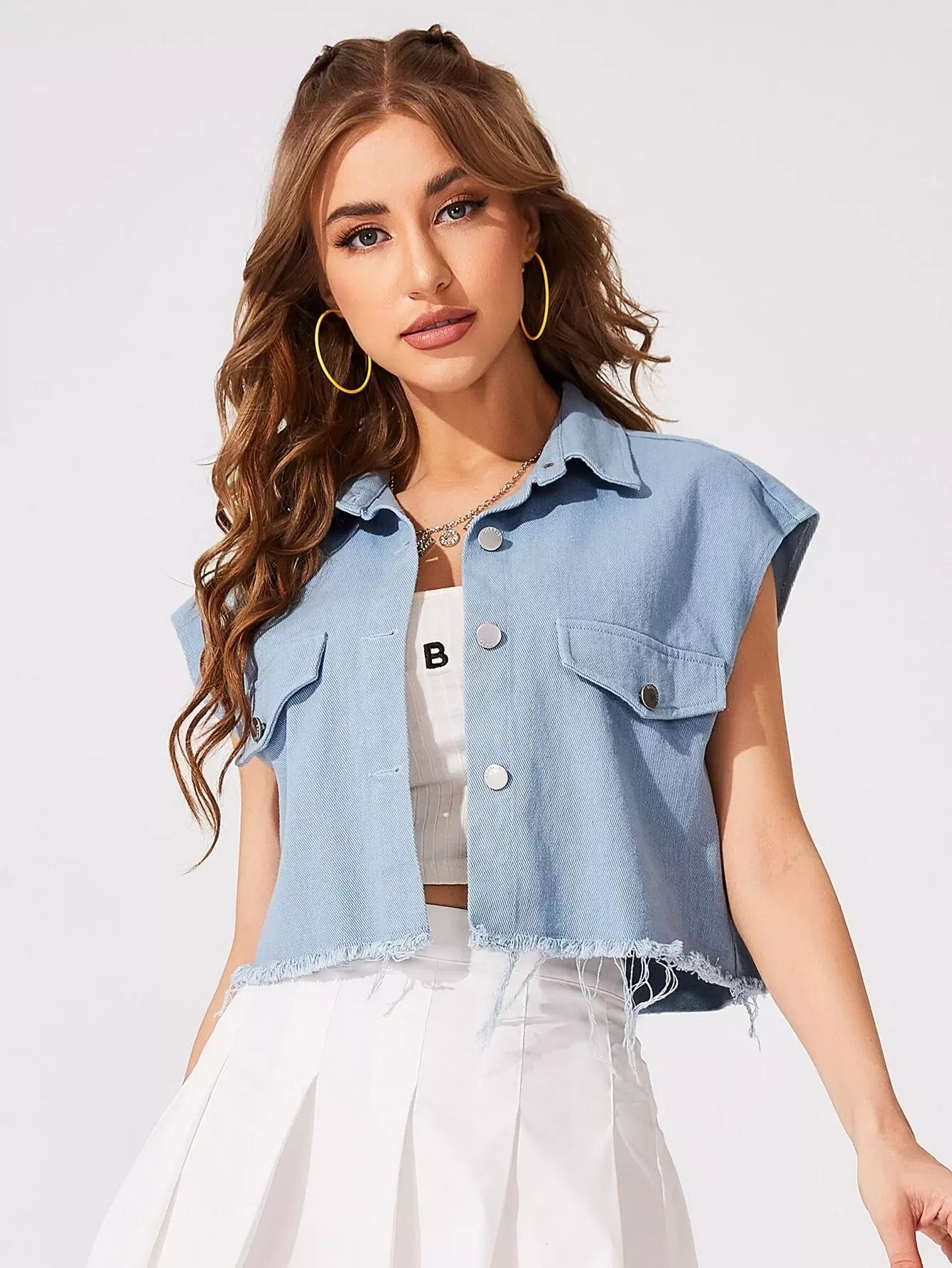 Single Breasted Sleeveless Raw Hem Crop Jacket