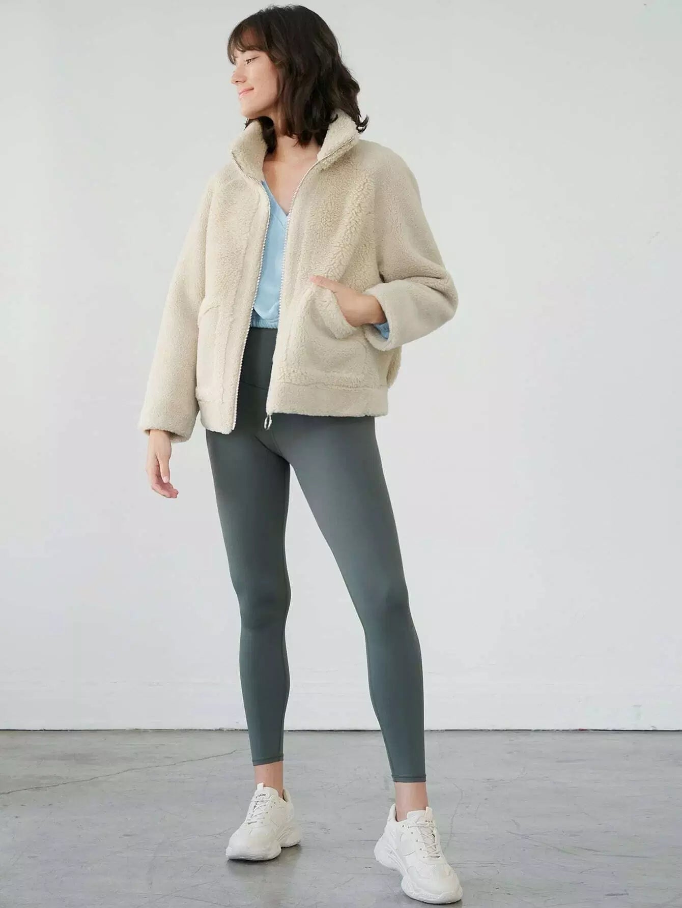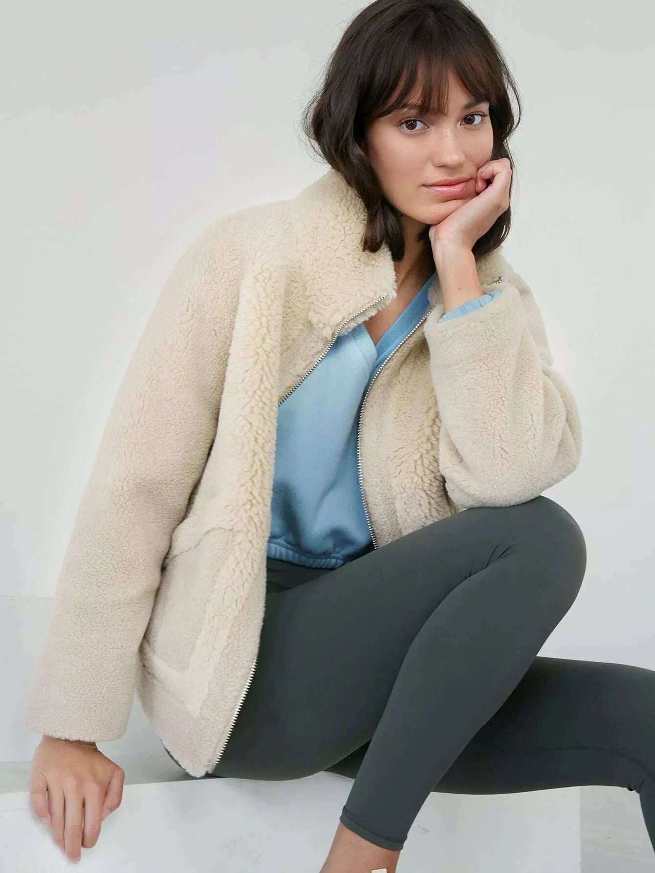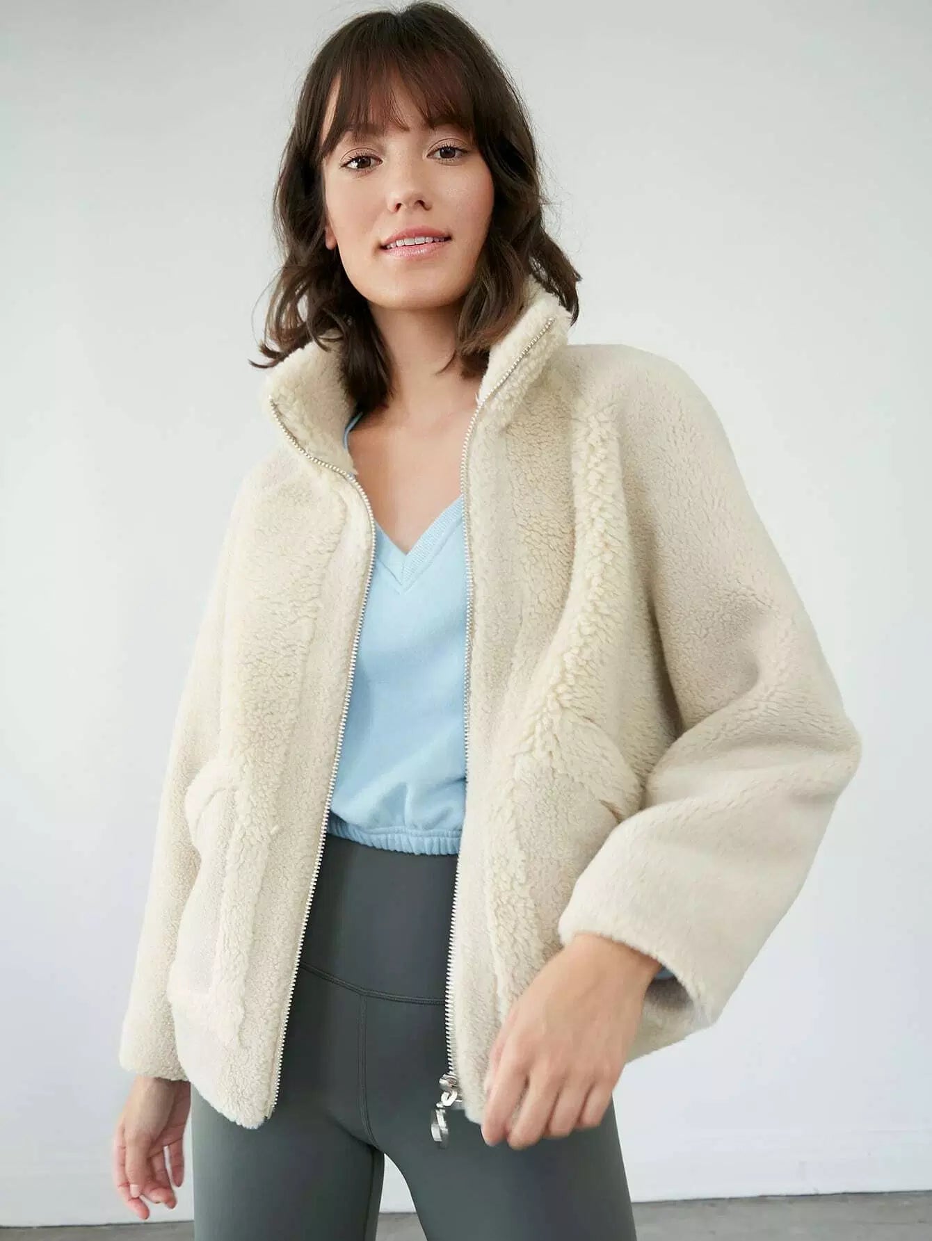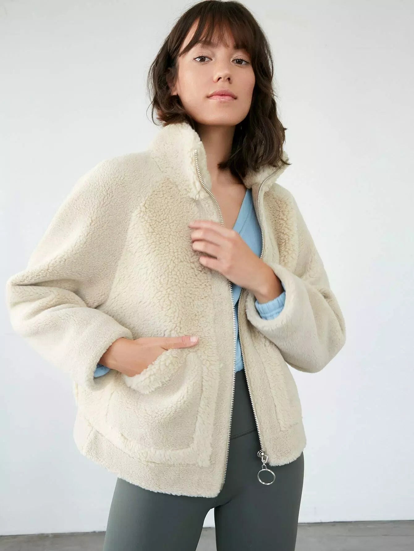 TEDDY RAGLAN SLEEVE ZIPPER FUZZY JACKET