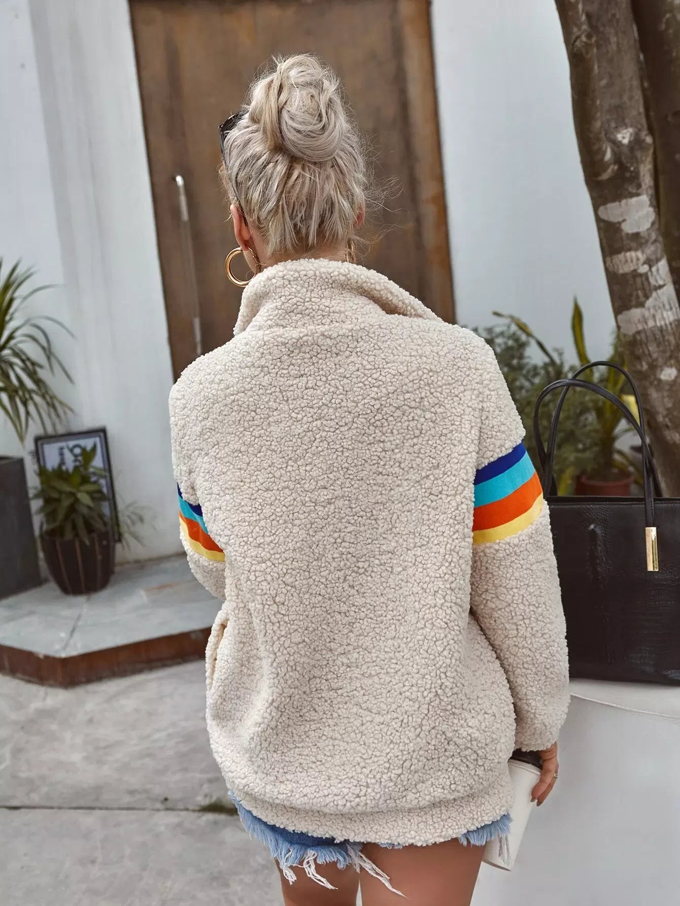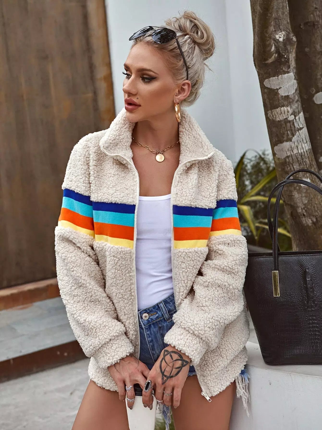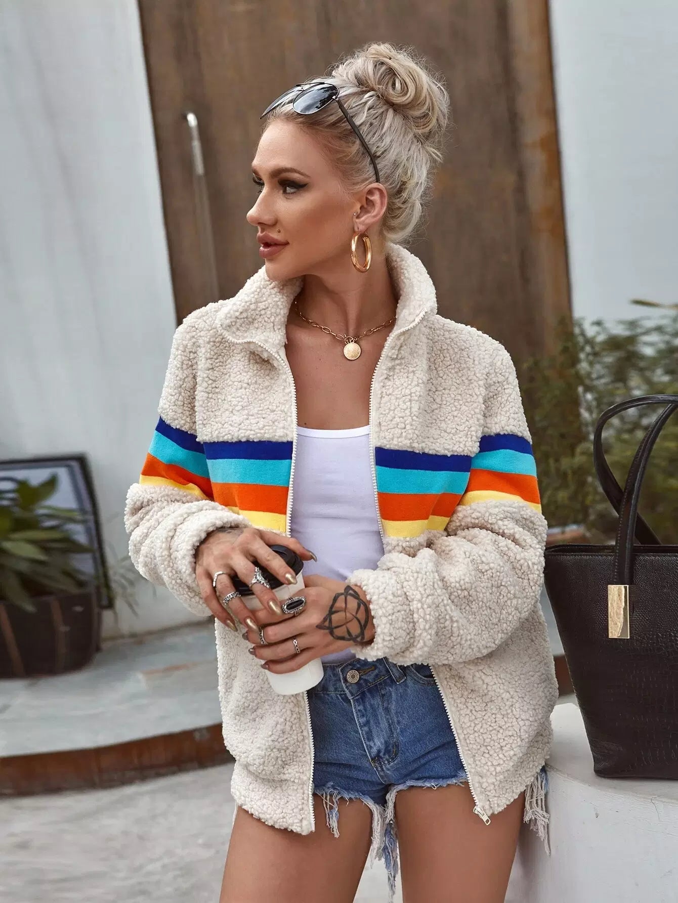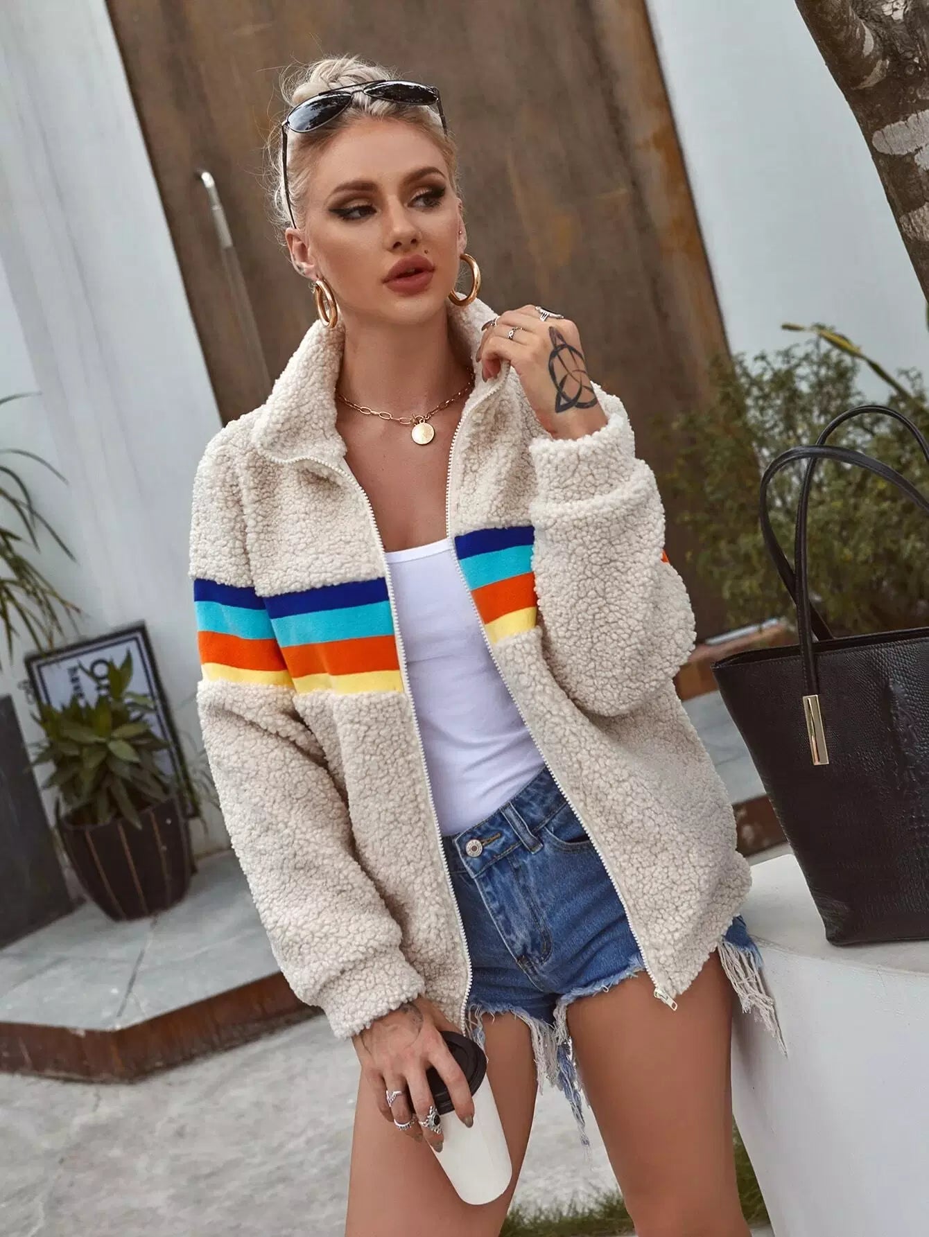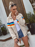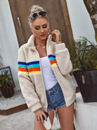 Zip Up Contrast Striped Teddy Jacket