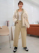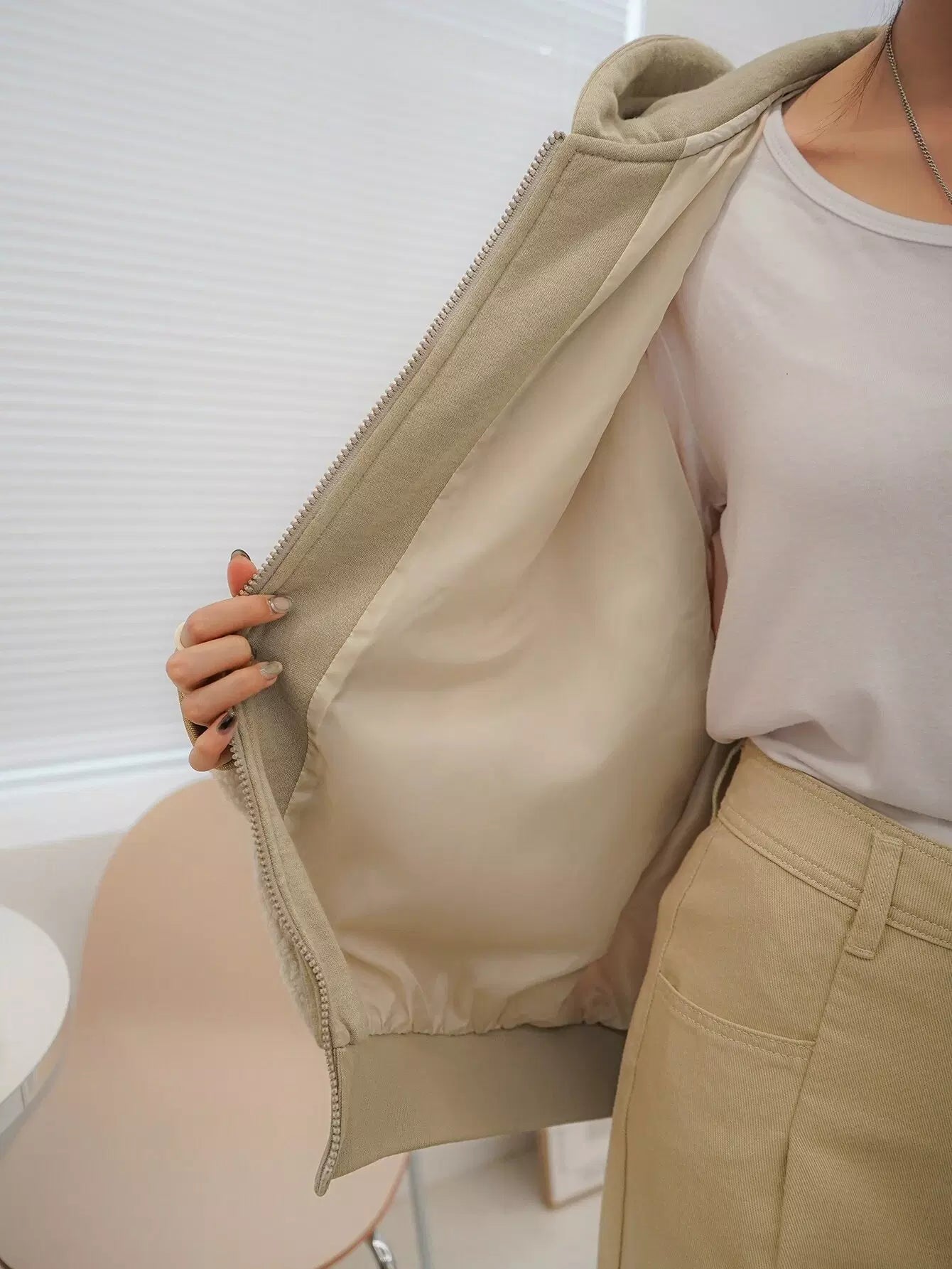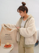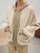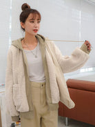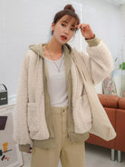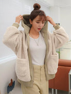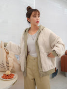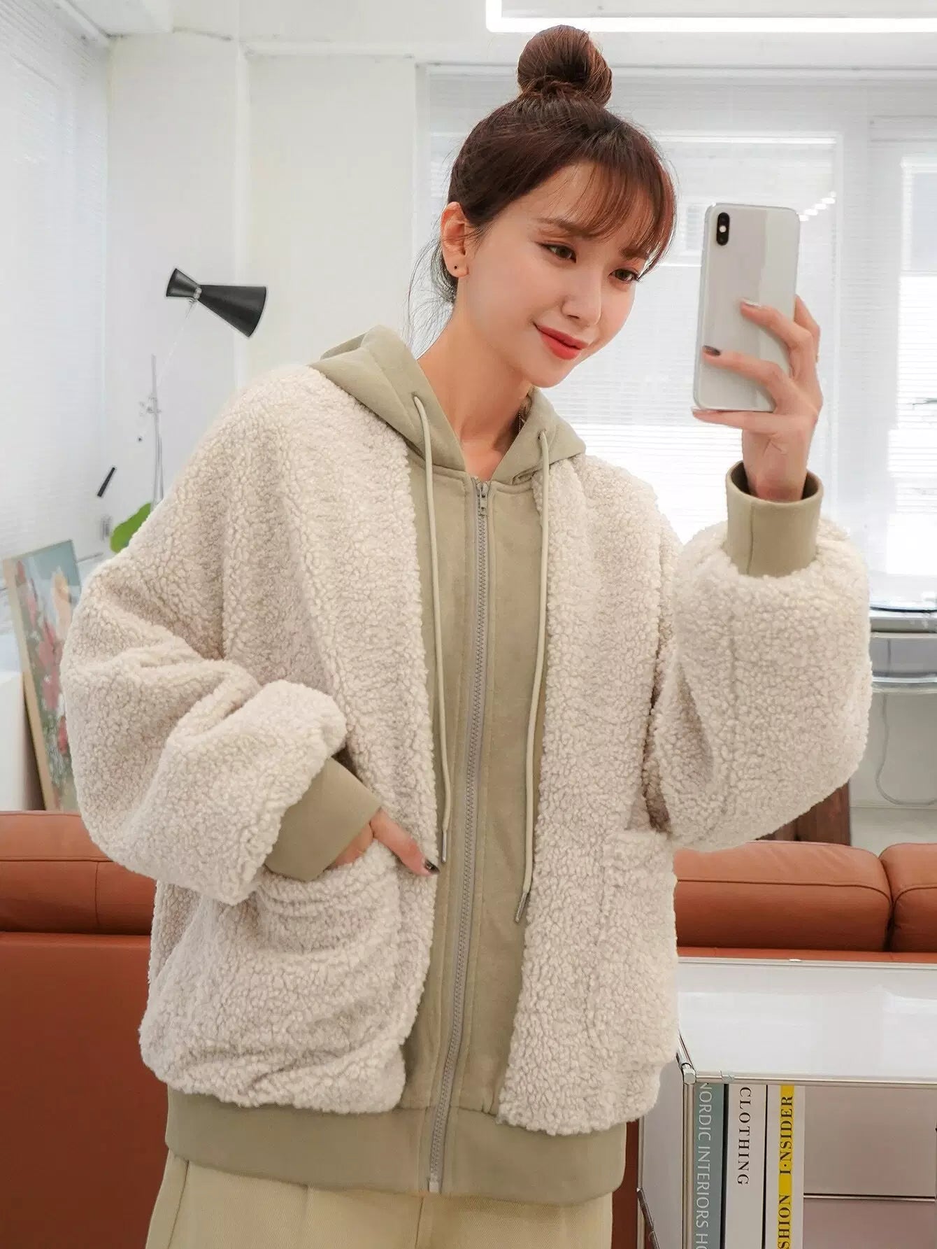 Zip Up Drawstring Hooded 2 In 1 Teddy Jacket