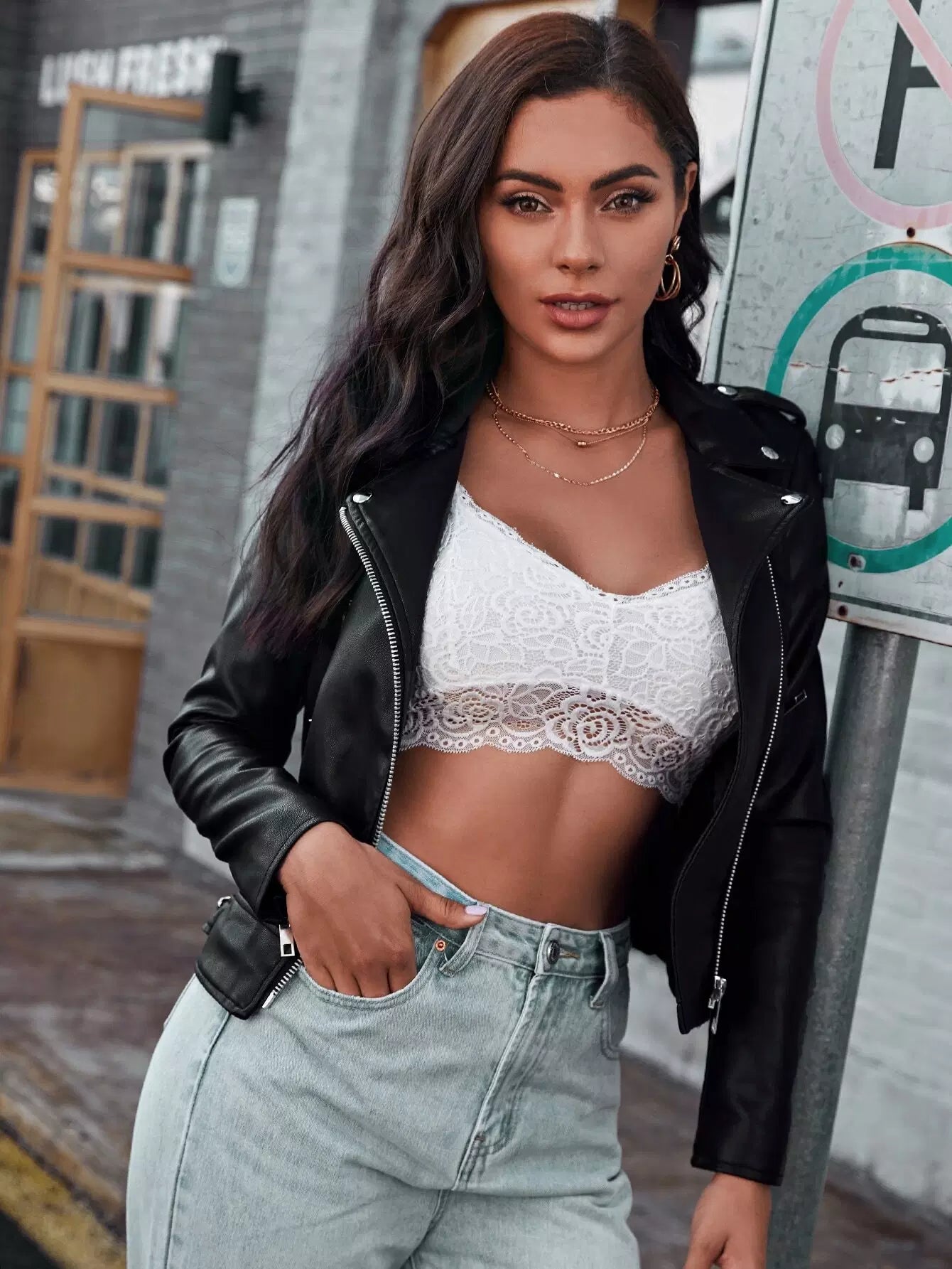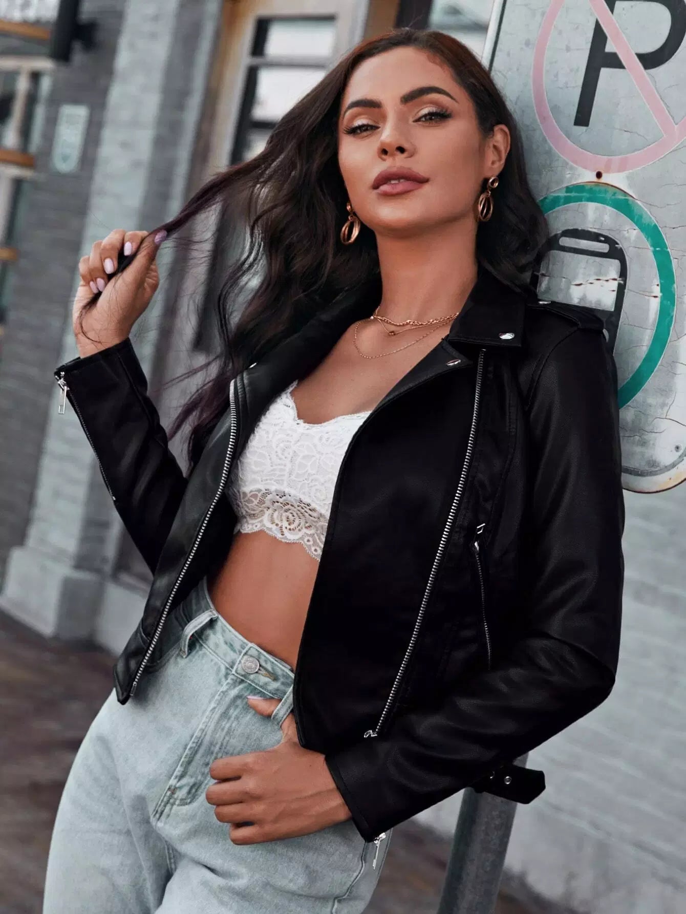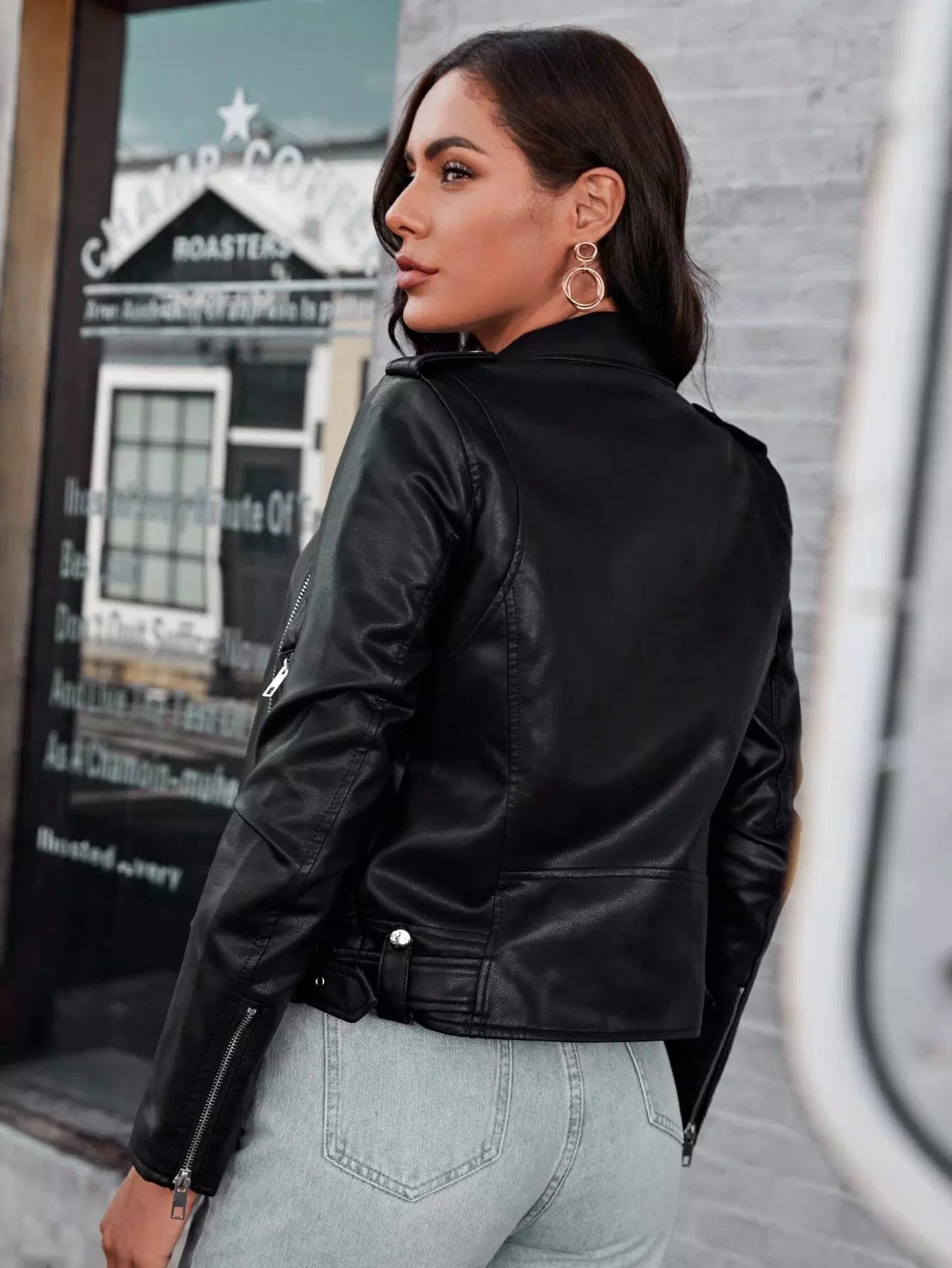 Zip Up Epaulet Detail PU Moto Jacket