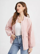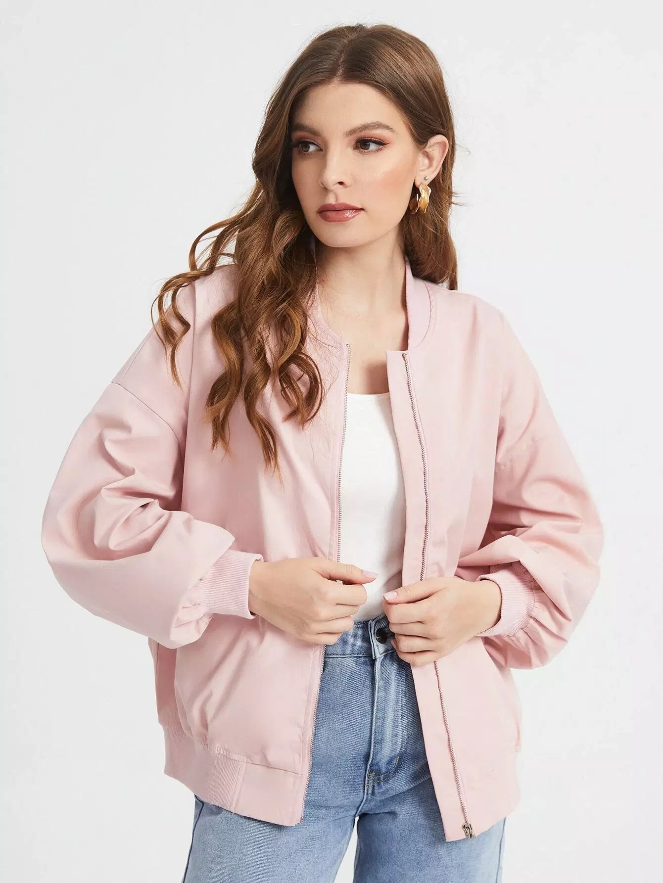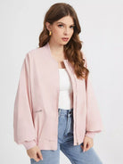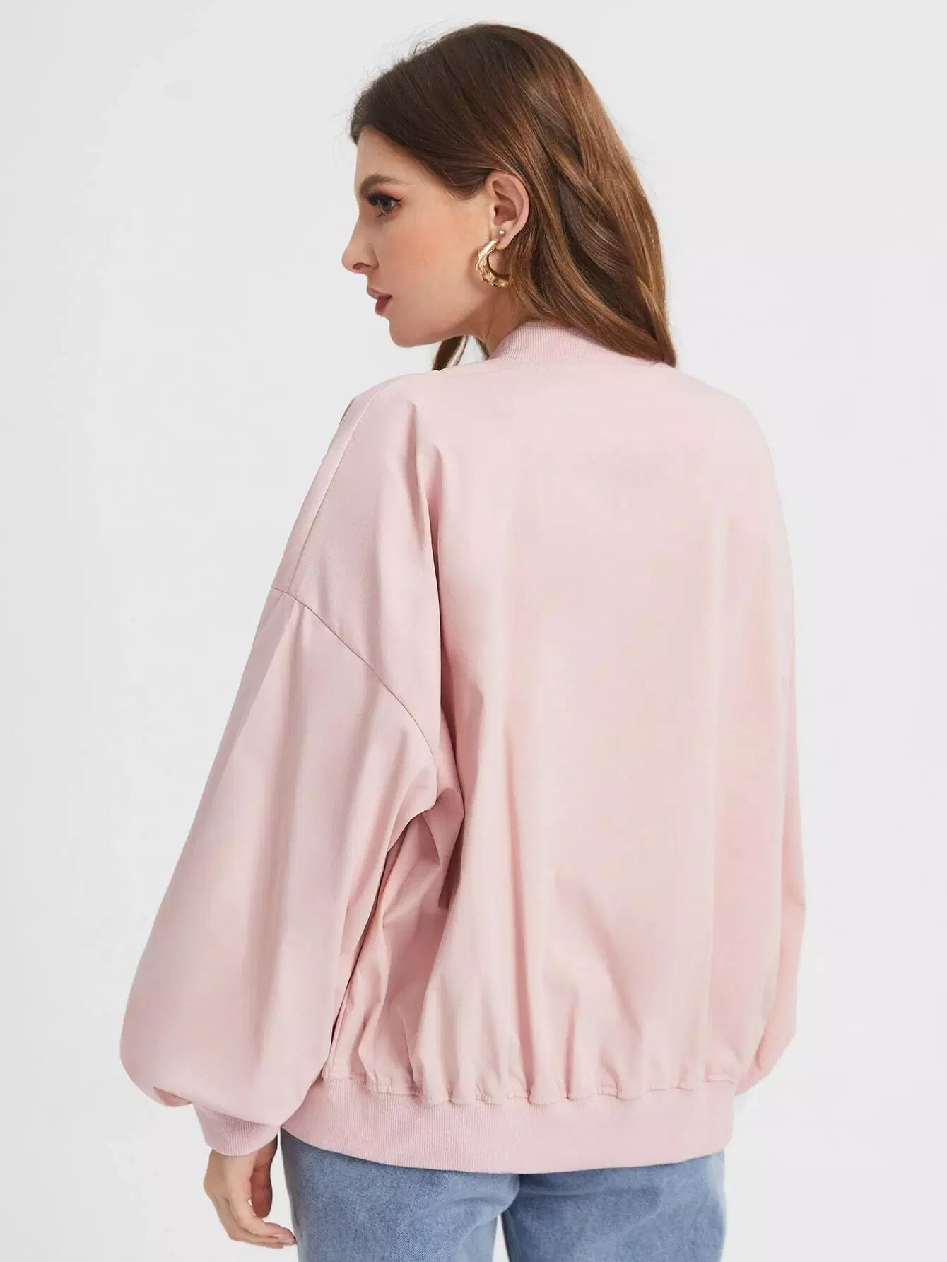 Zipper Pocket Drop Shoulder Bomber Jacket