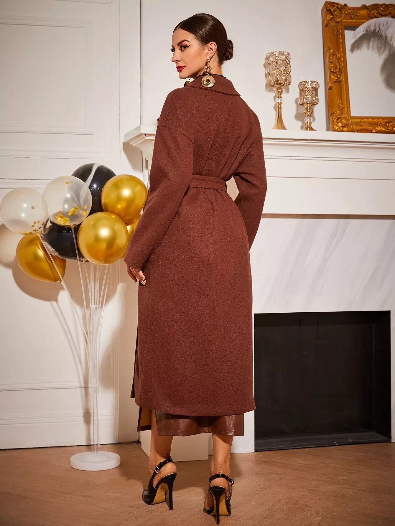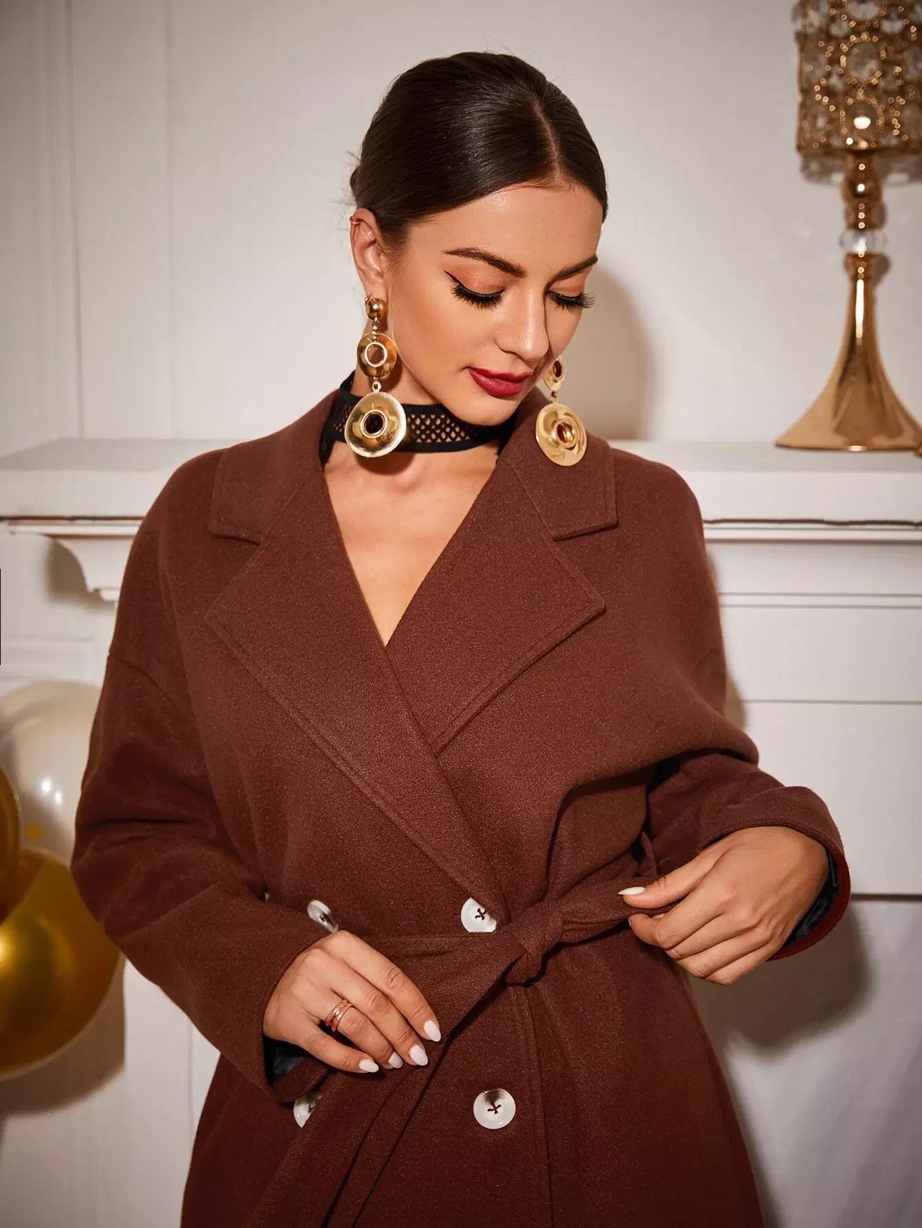 Double Breasted Drop Shoulder Overcoat Without Belt