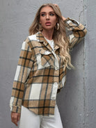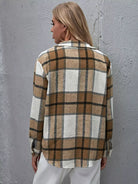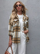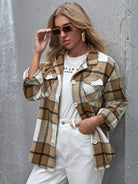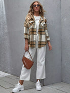 Flap Pocket Button Front Curved Hem Plaid Coat