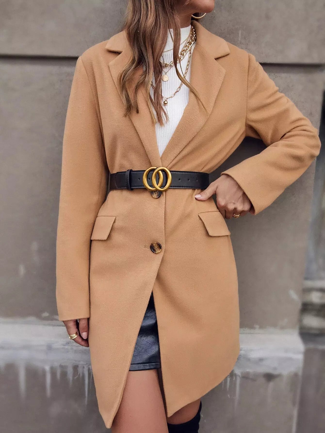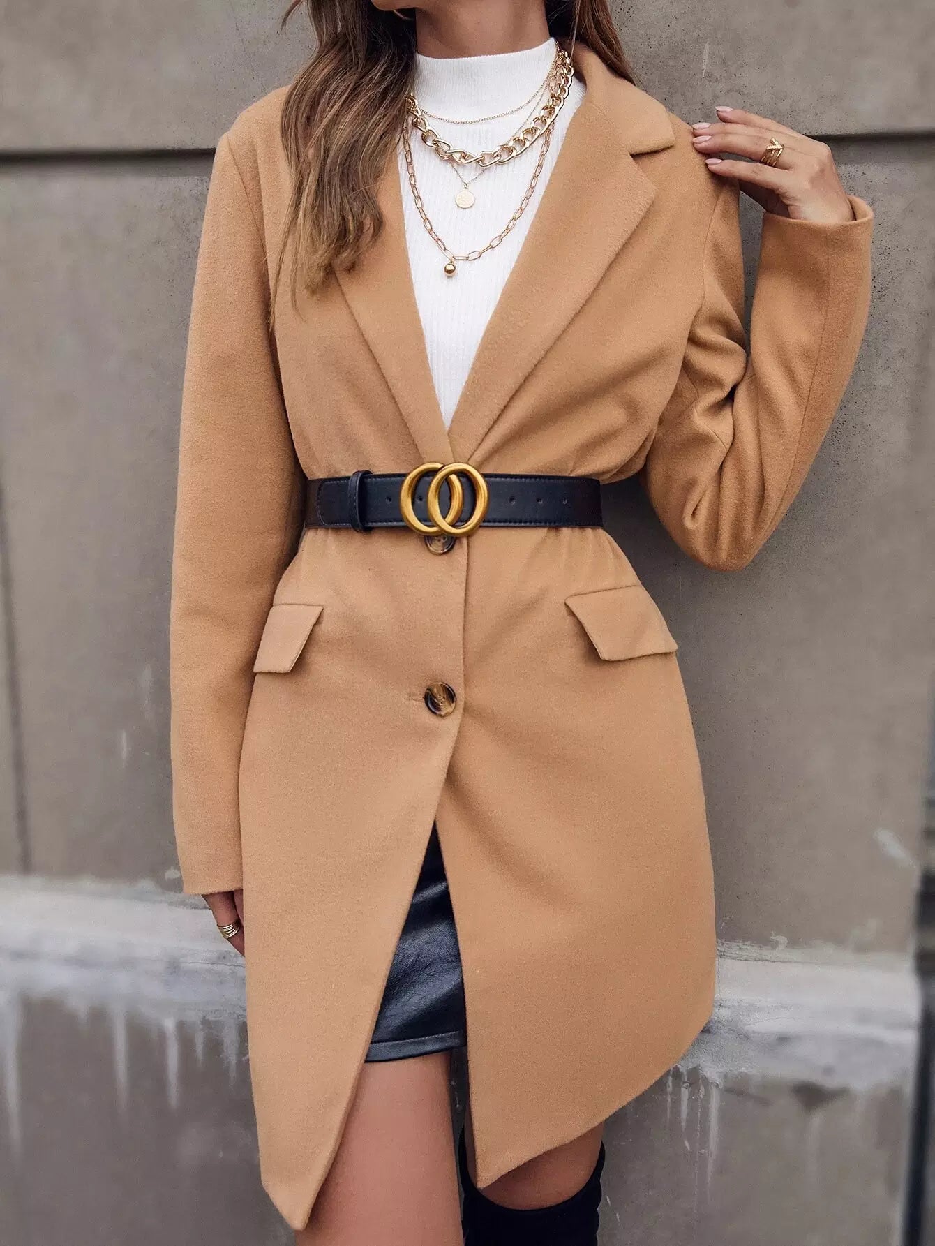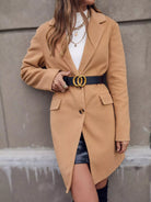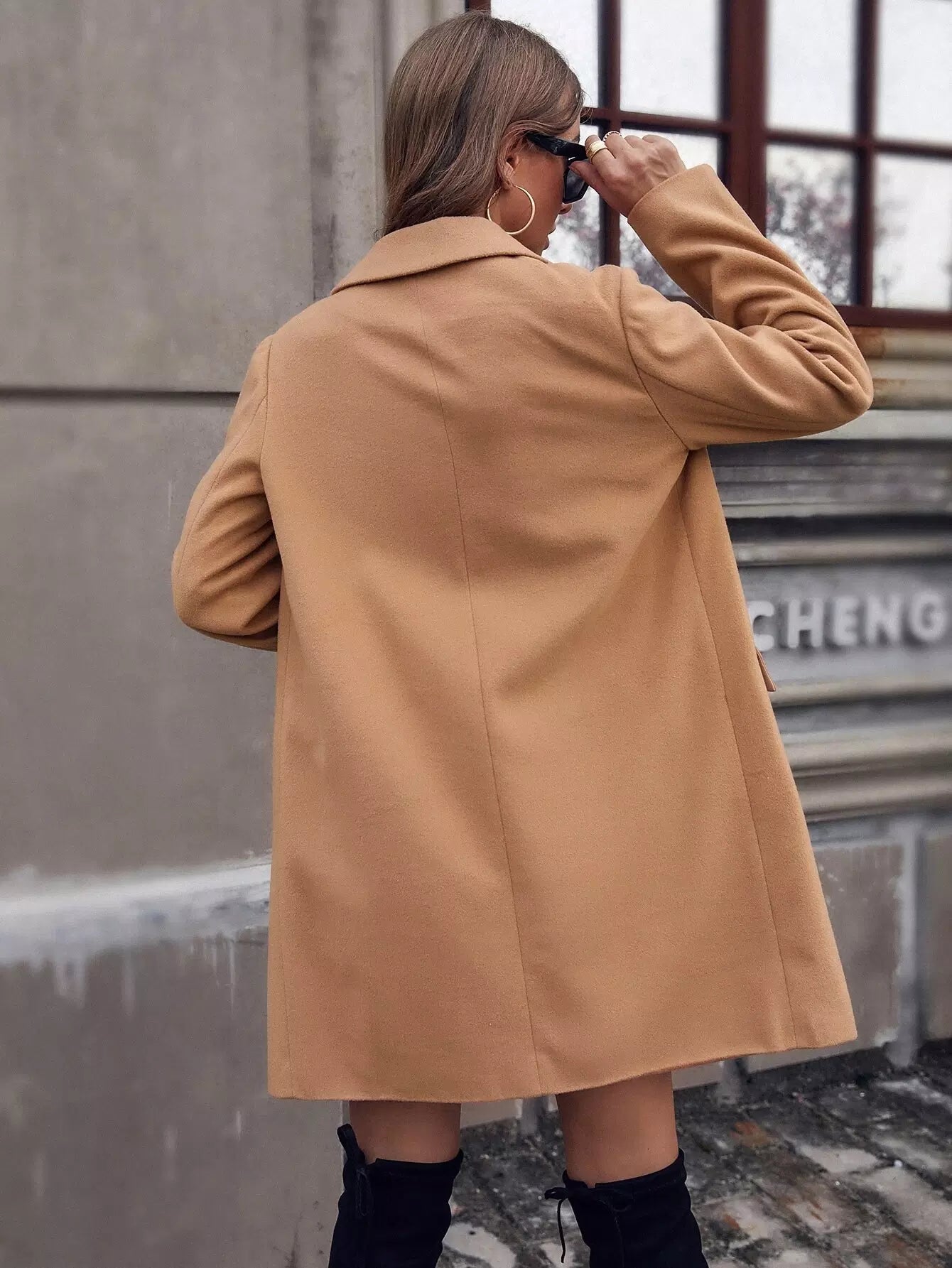 Flap Pocket Lapel Collar Overcoat Without Belt