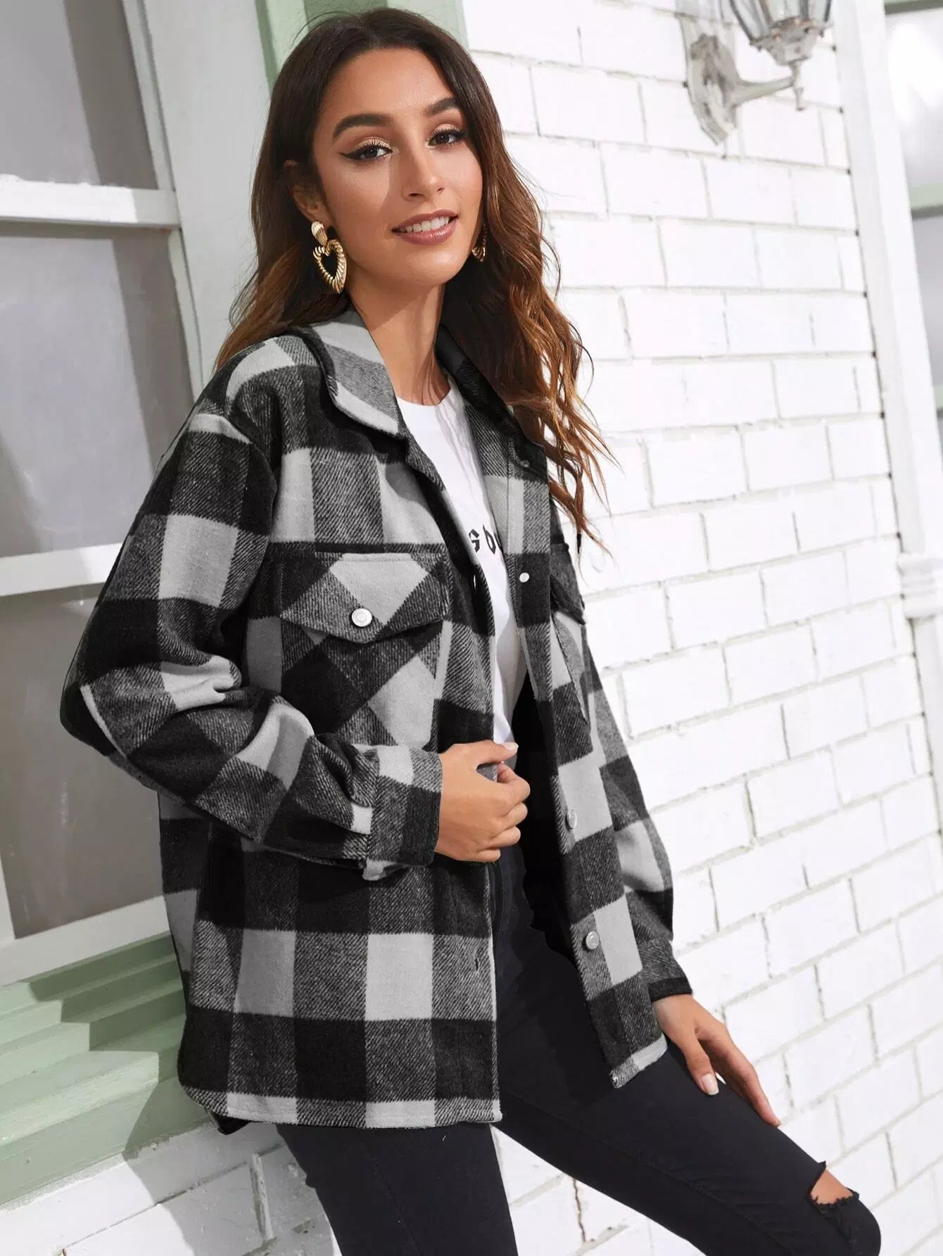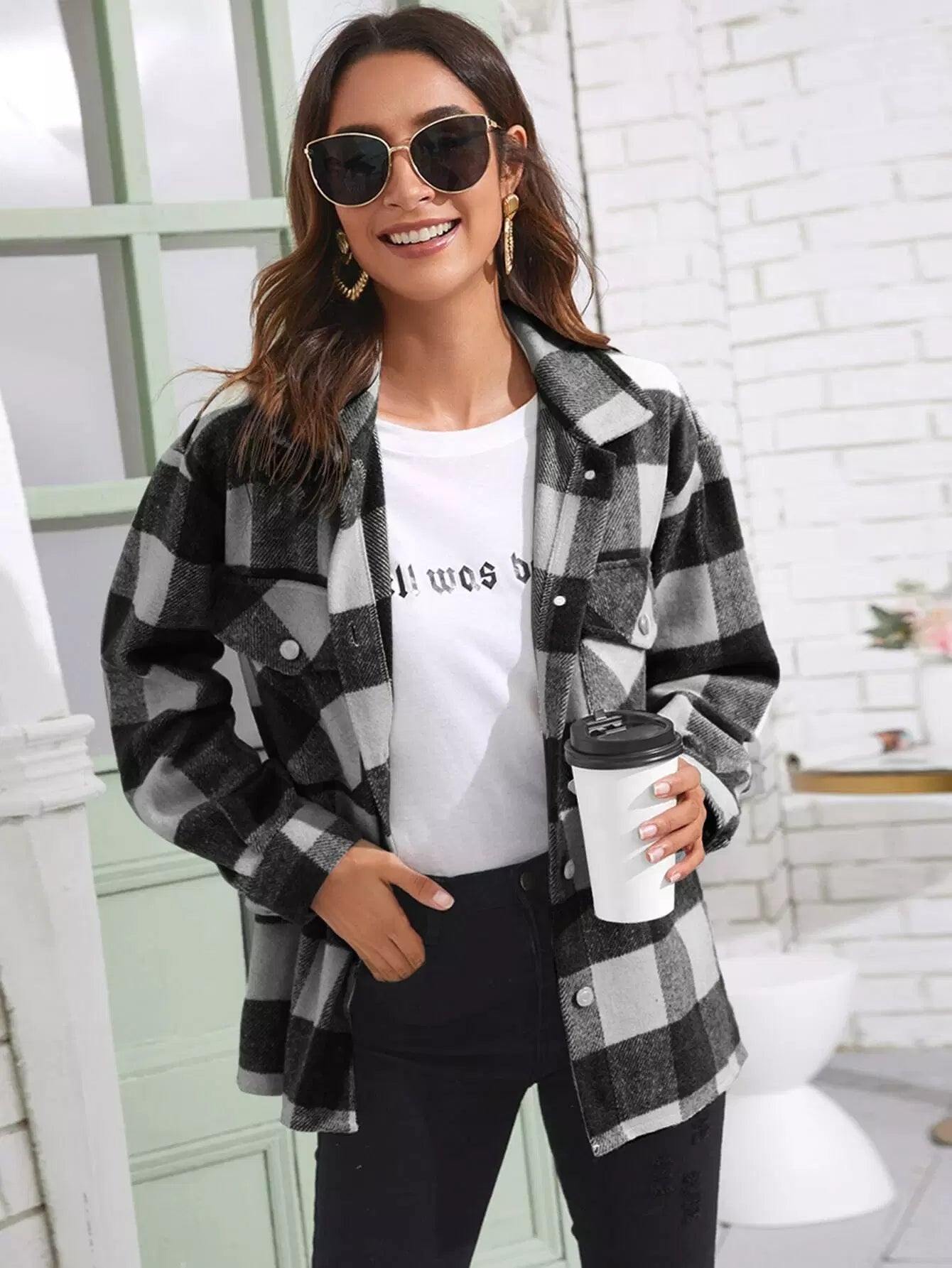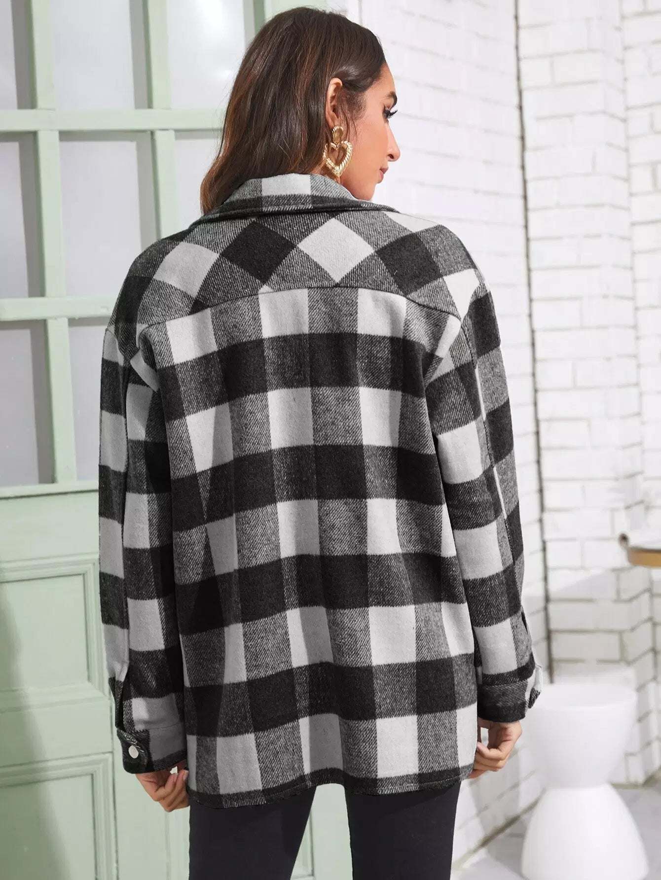 Gingham Print Button Through Overcoat