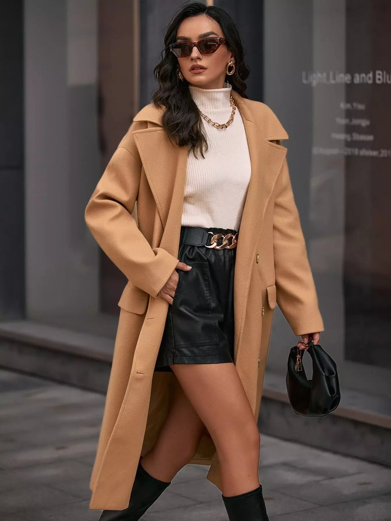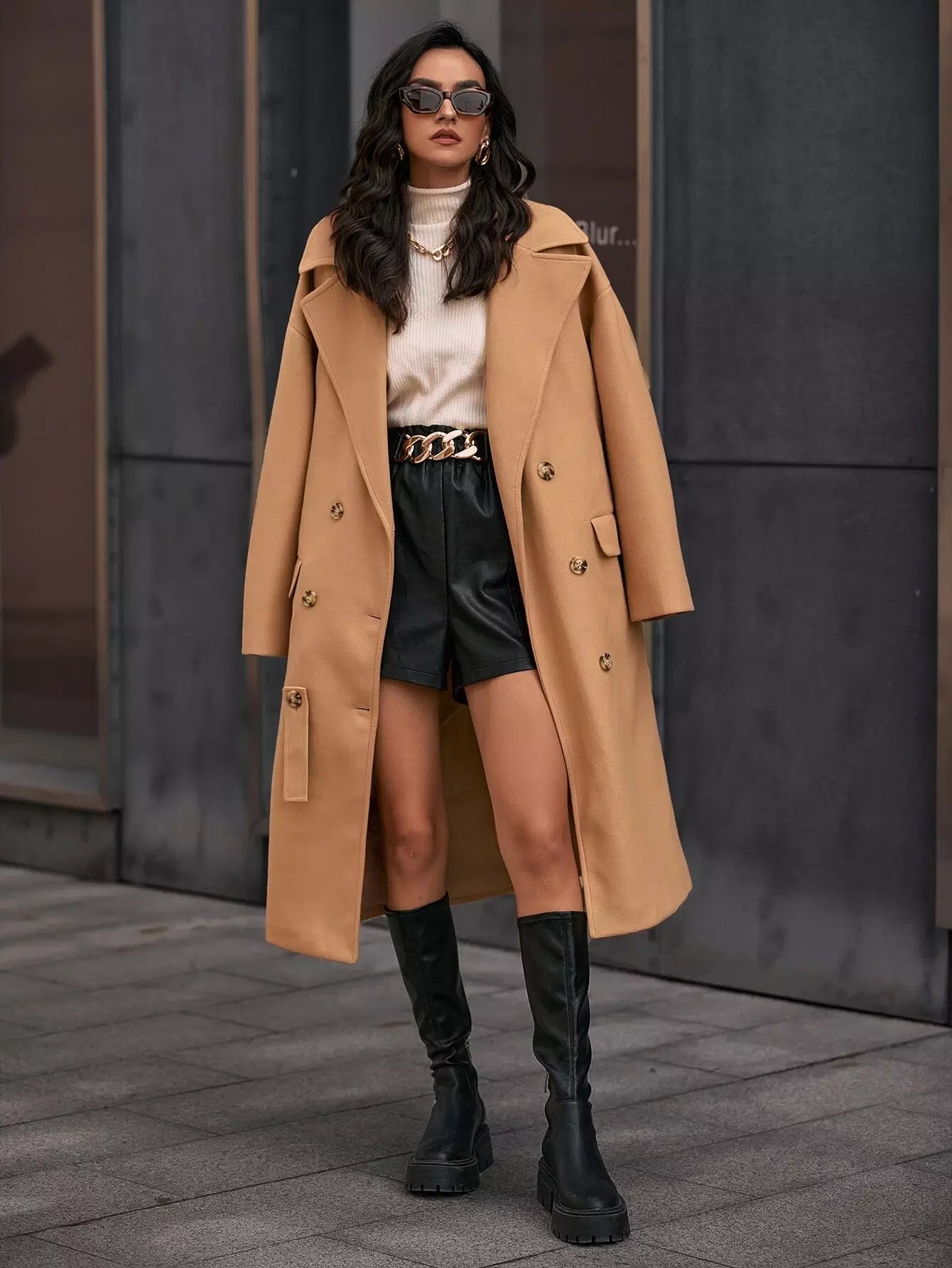 Women - Lapel Neck Double Breasted Drop Shoulder Overcoat