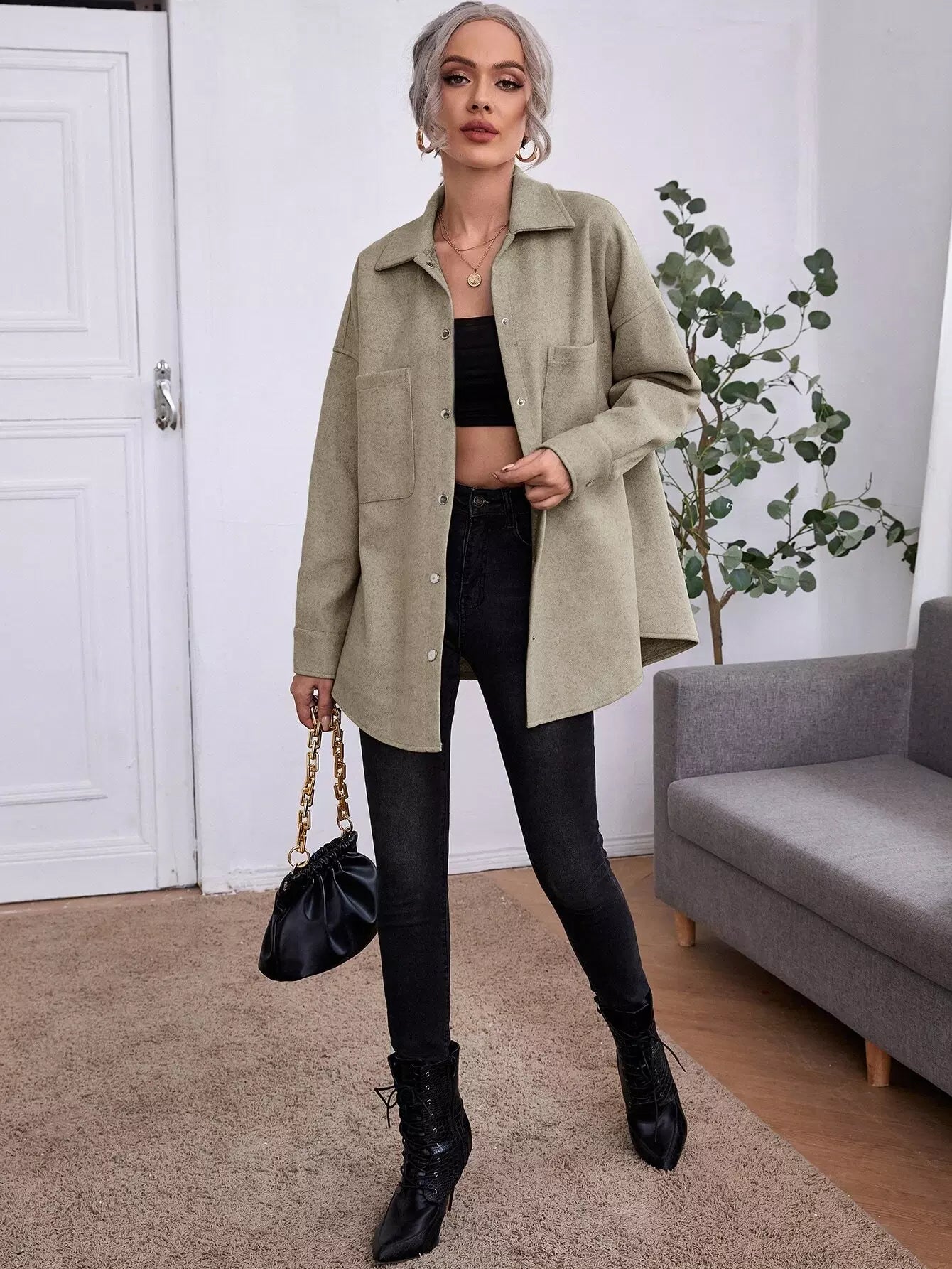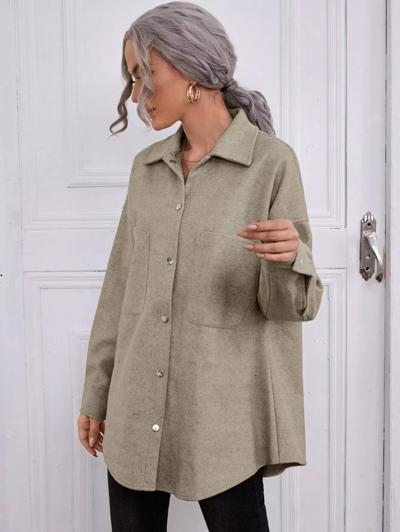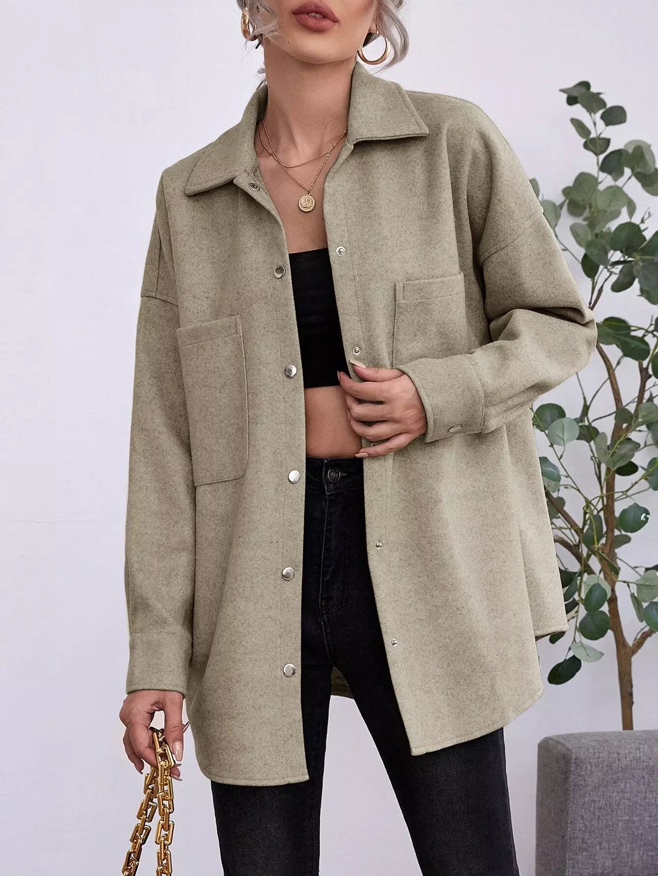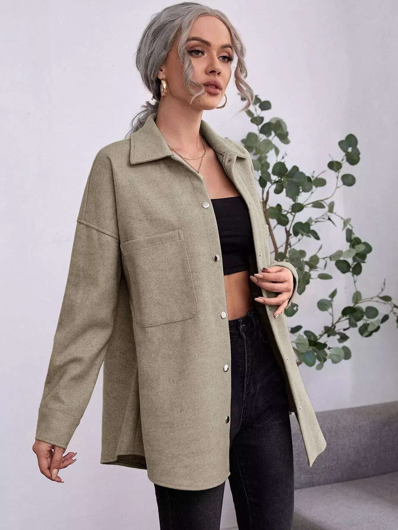 Pocket Front Drop Shoulder Overcoat