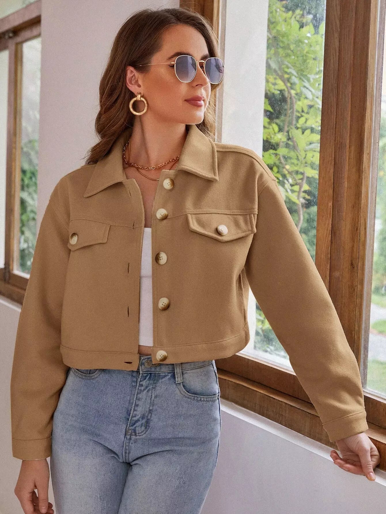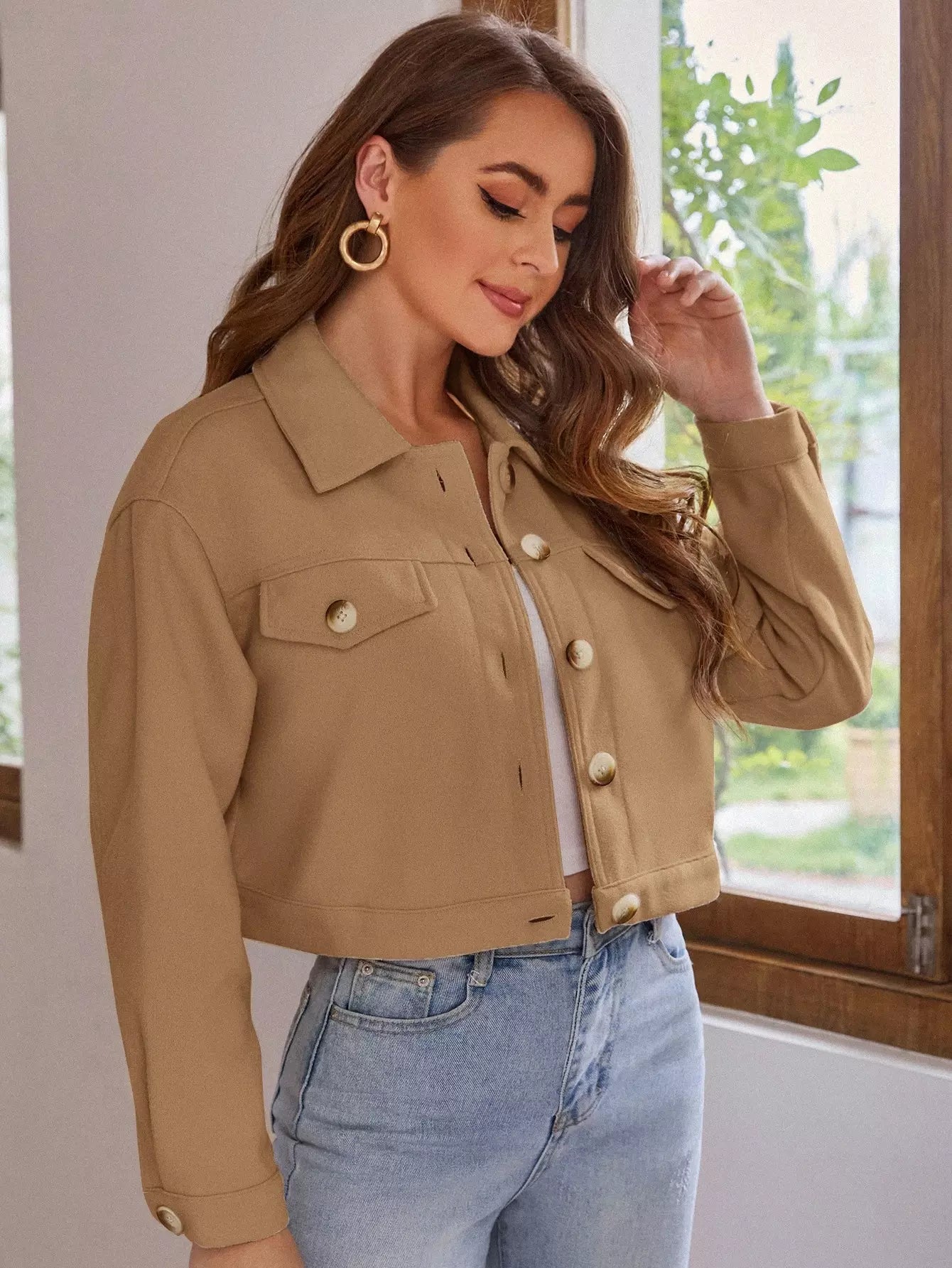 Clothing - Solid Button Front Drop Shoulder Overcoat