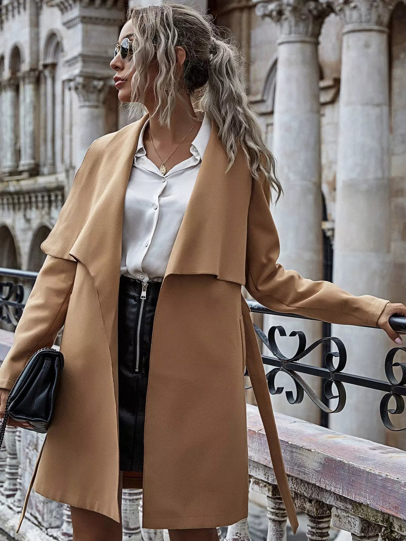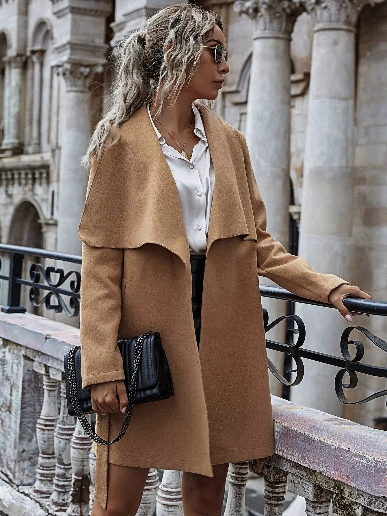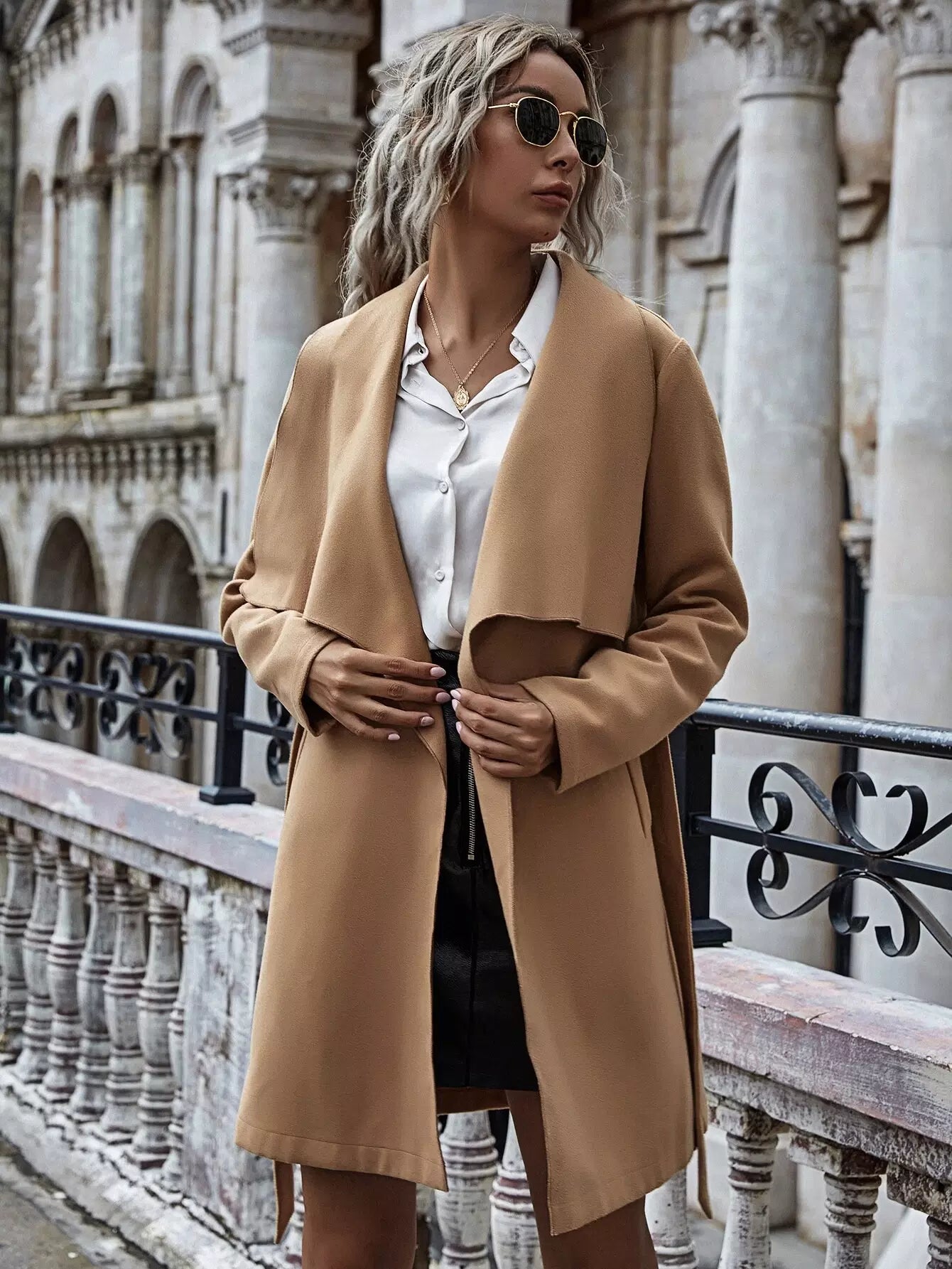 Waterfall Collar Overcoat Without Belt