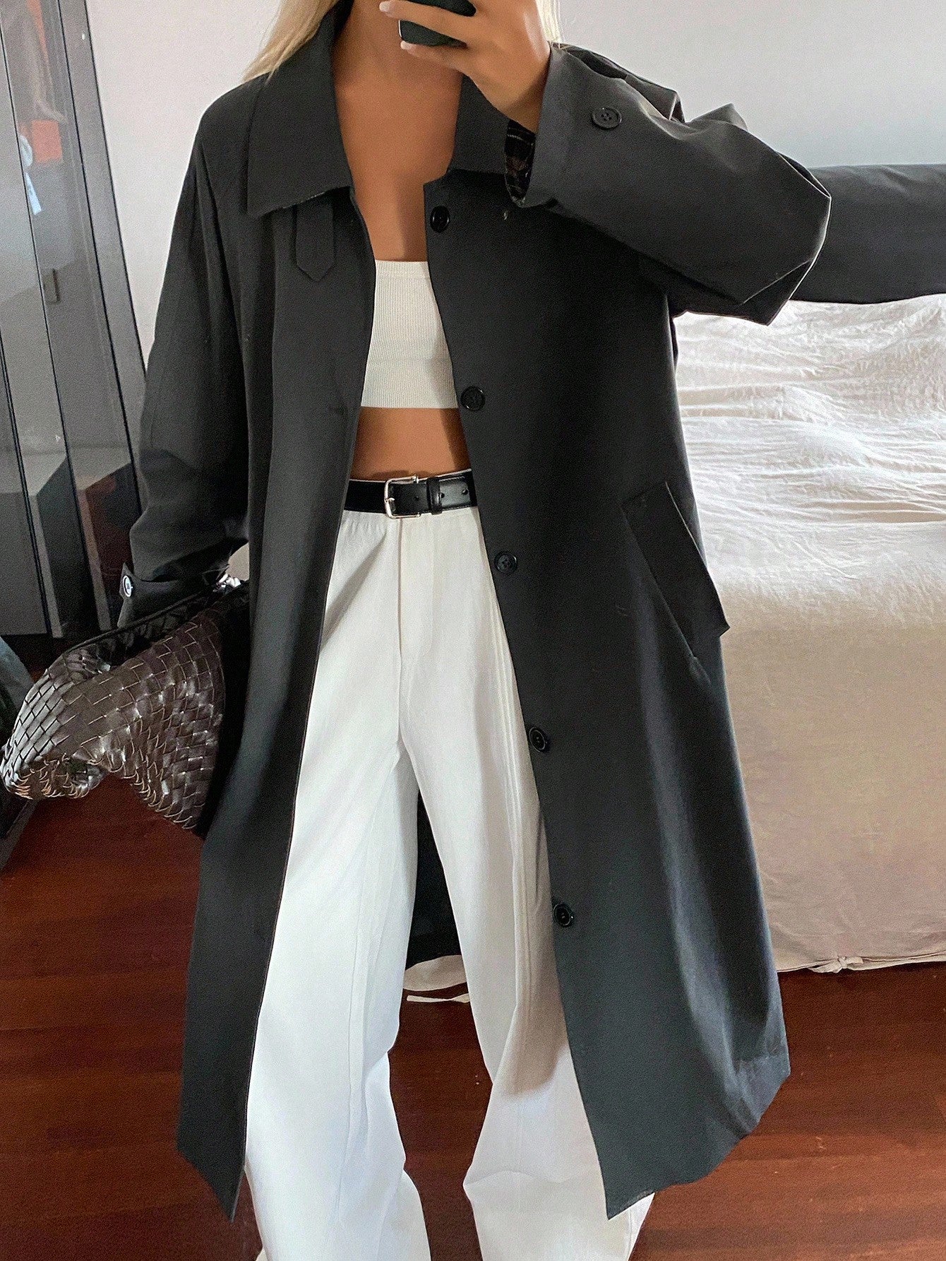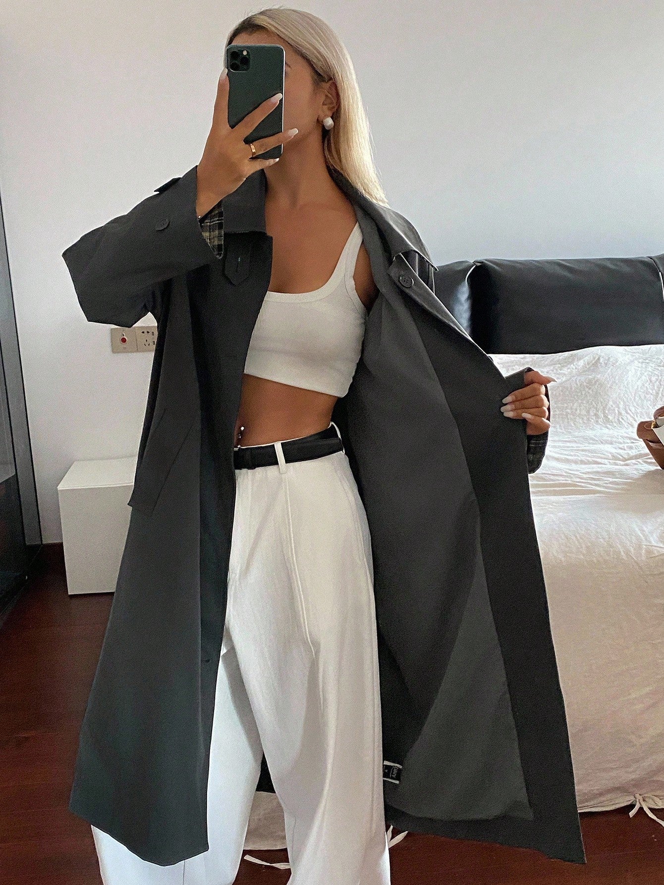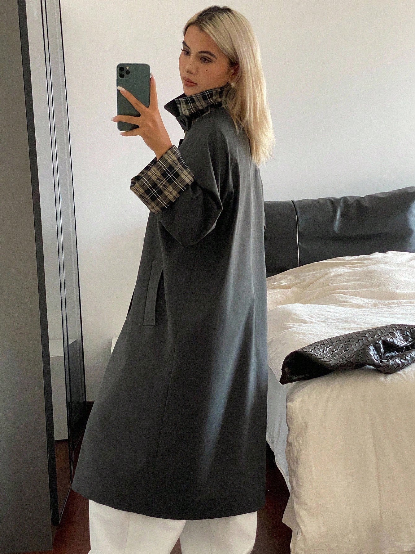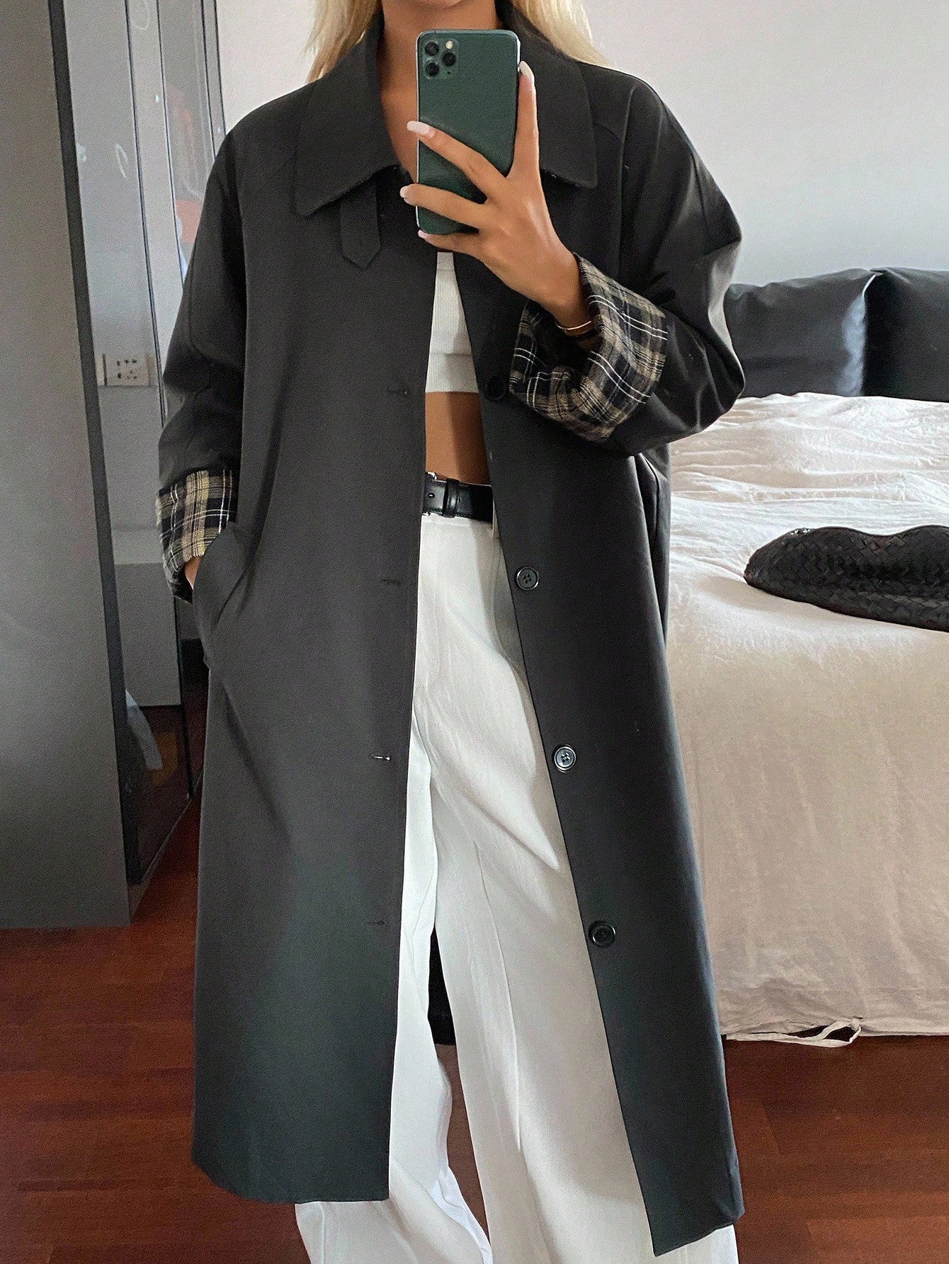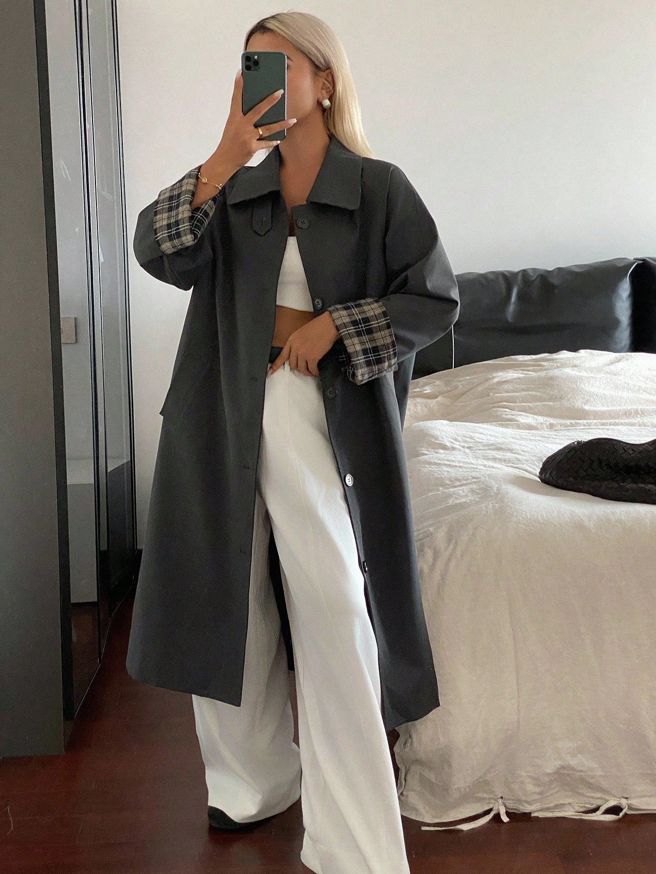 DAZY Patchwork Plaid Loose Long Sleeve Turndown Collar Cuff Casual Street Autumn/Winter Jacket For Women