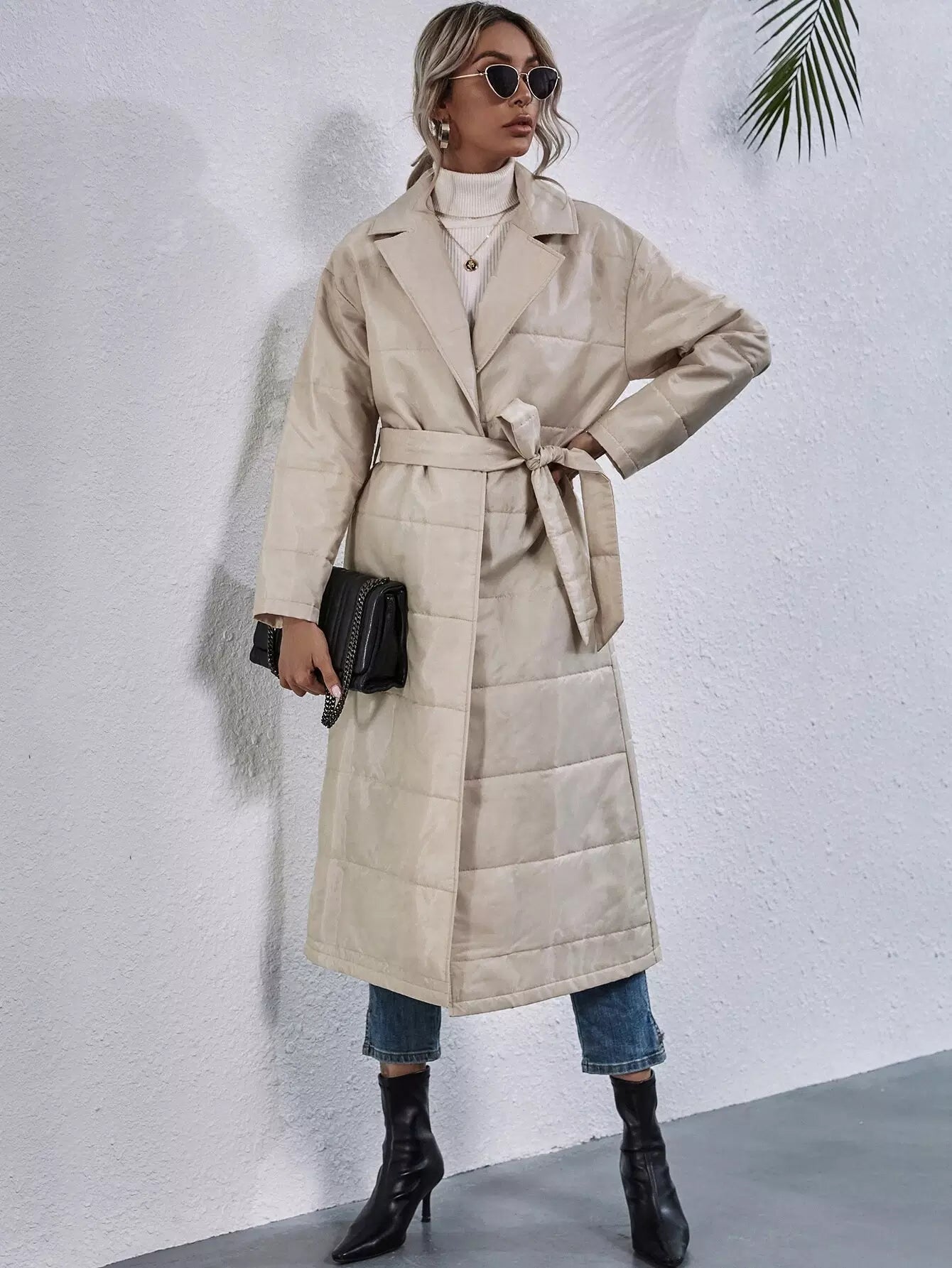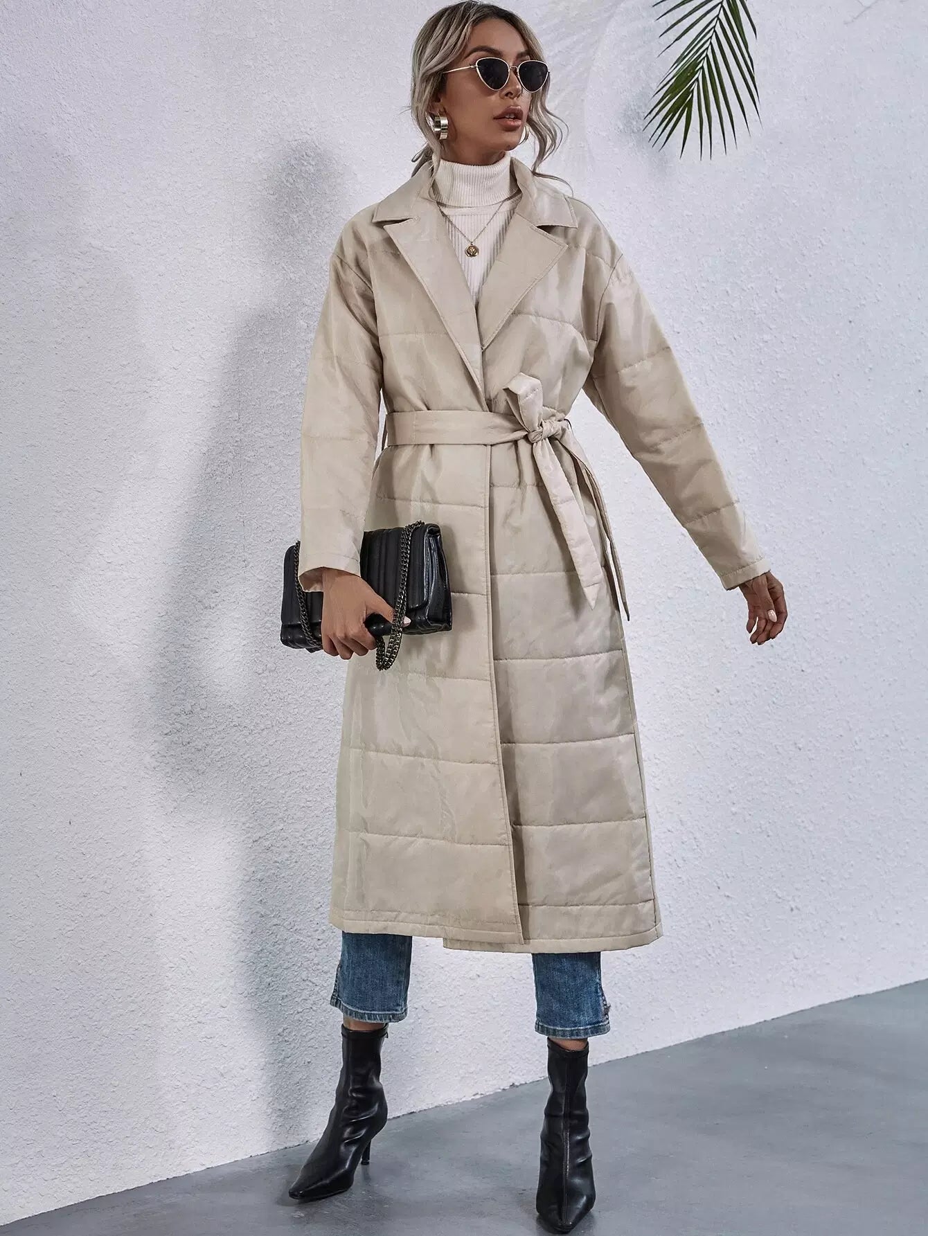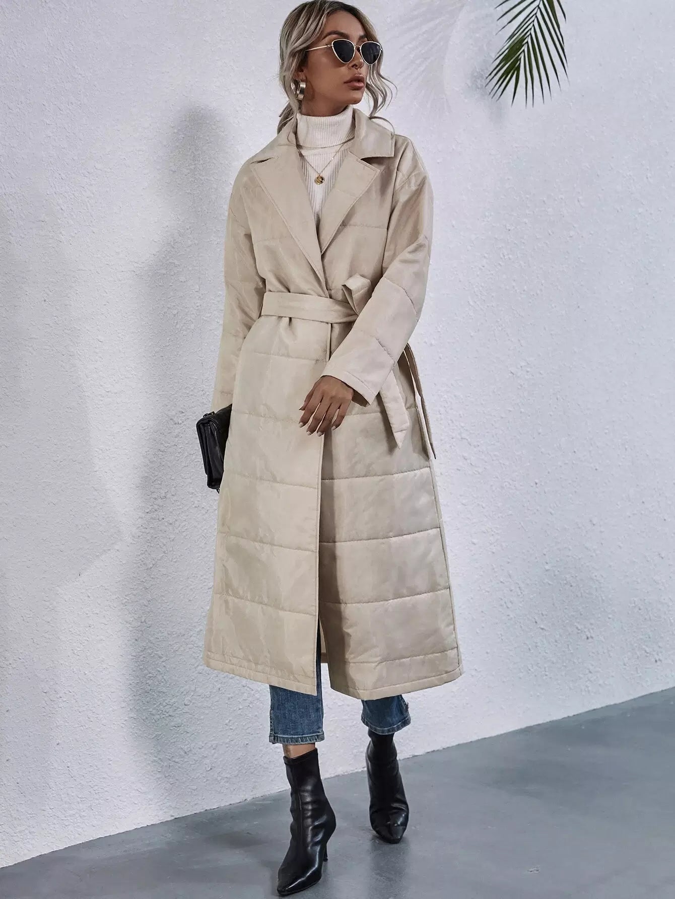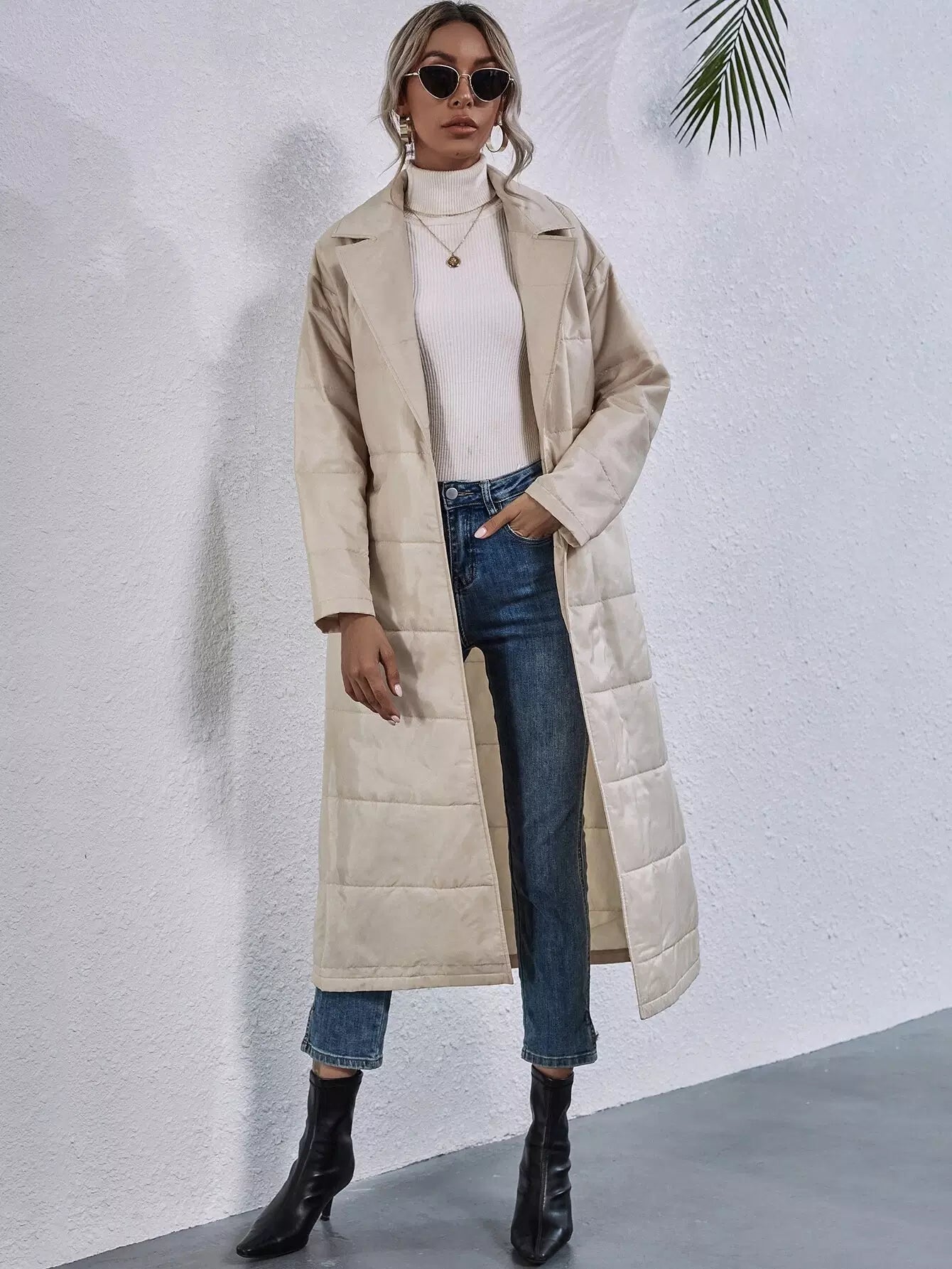 Drop Shoulder Puffer Coat Without Belt