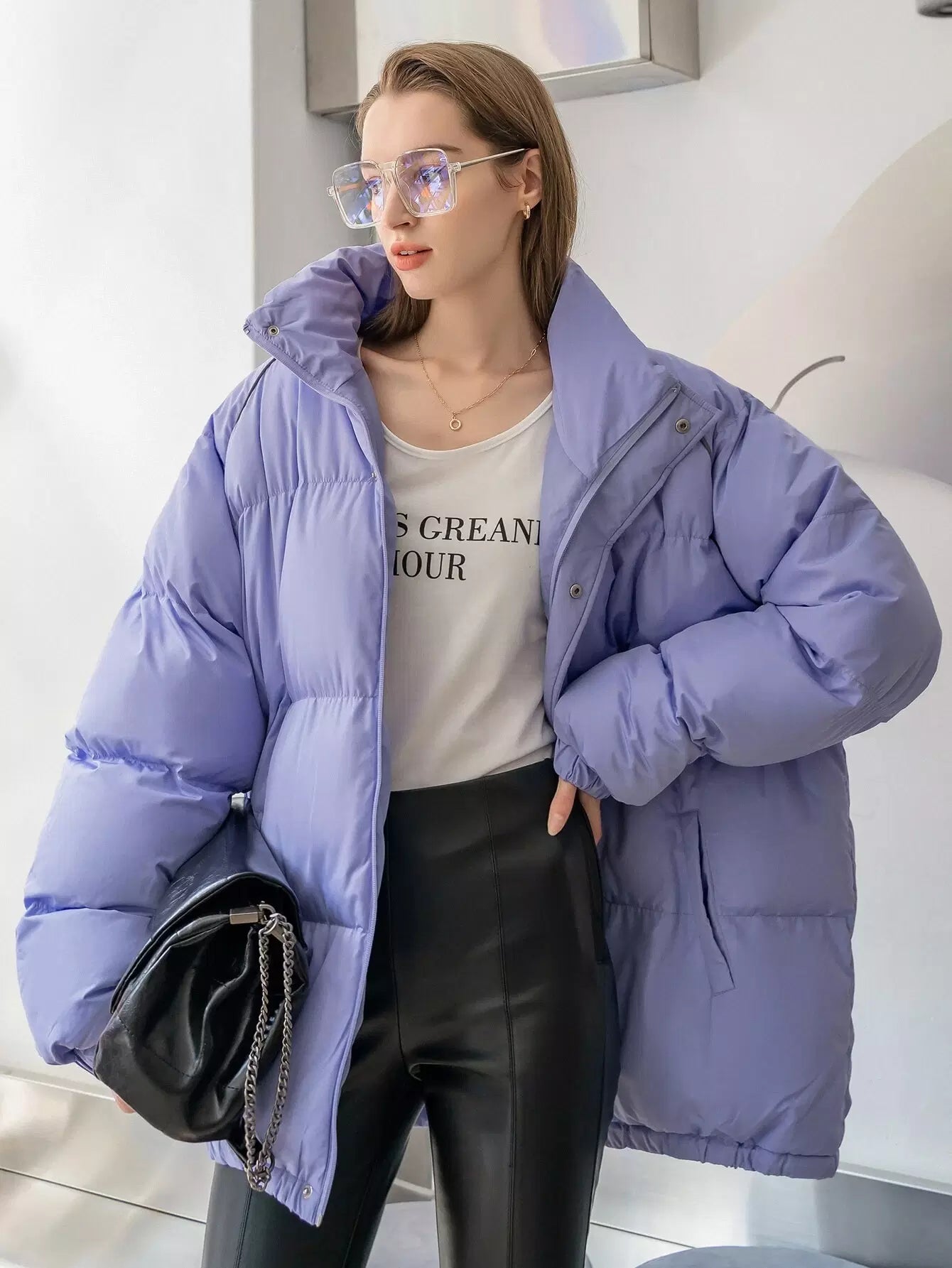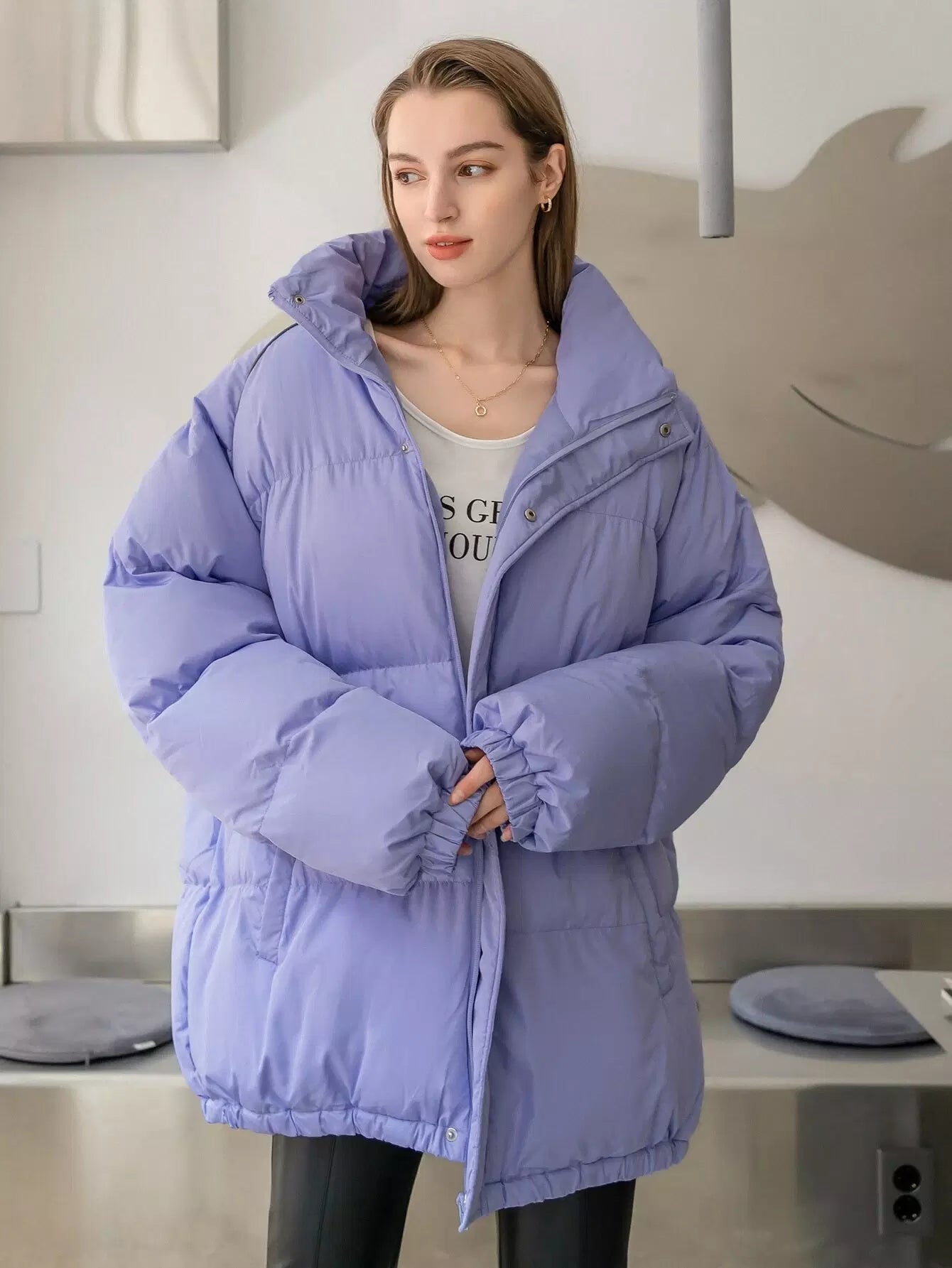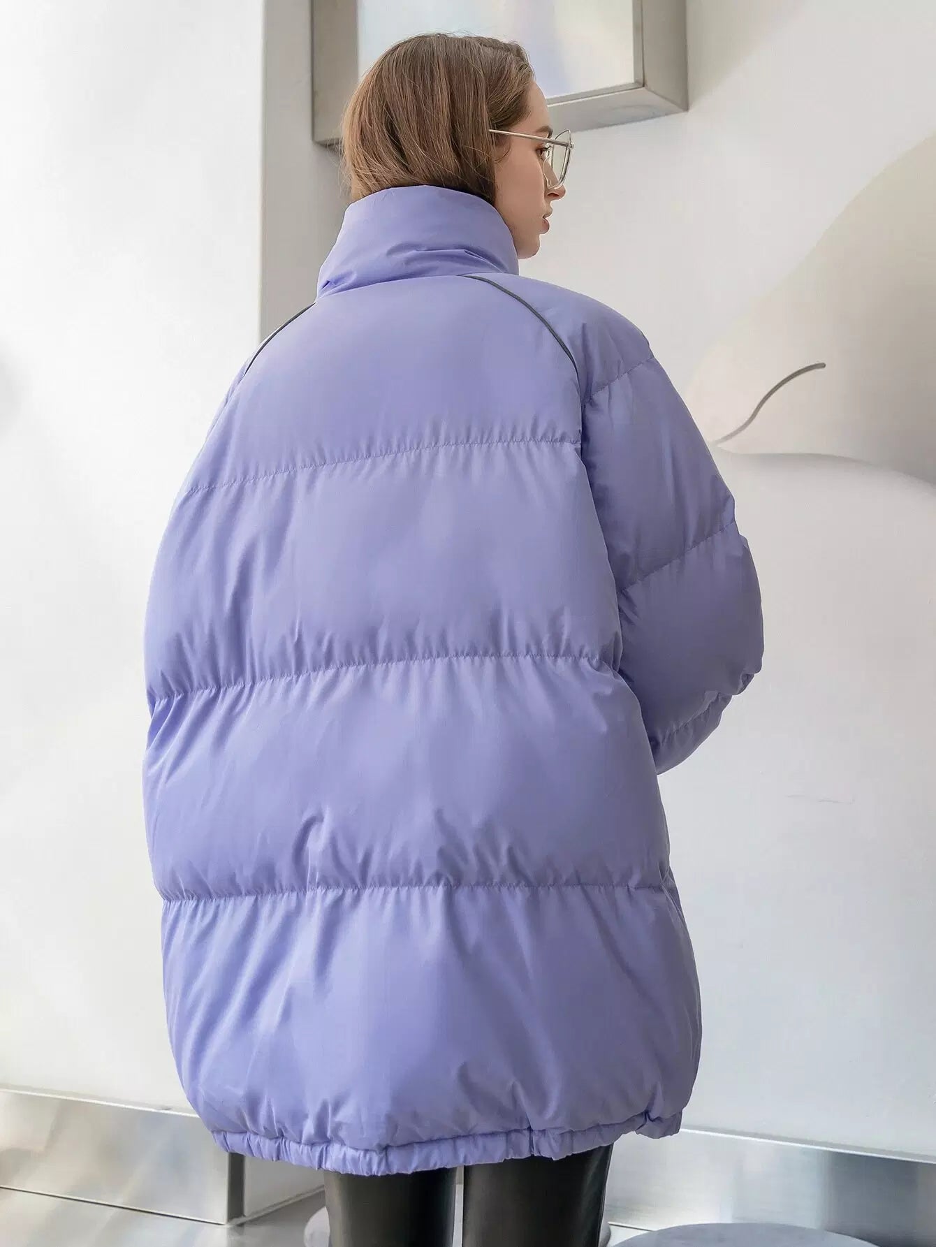 High Neck Raglan Sleeve Puffer Coat