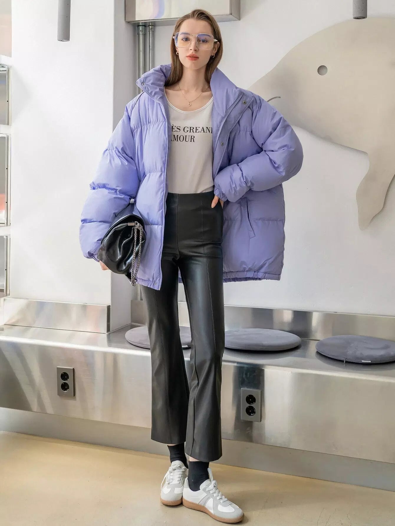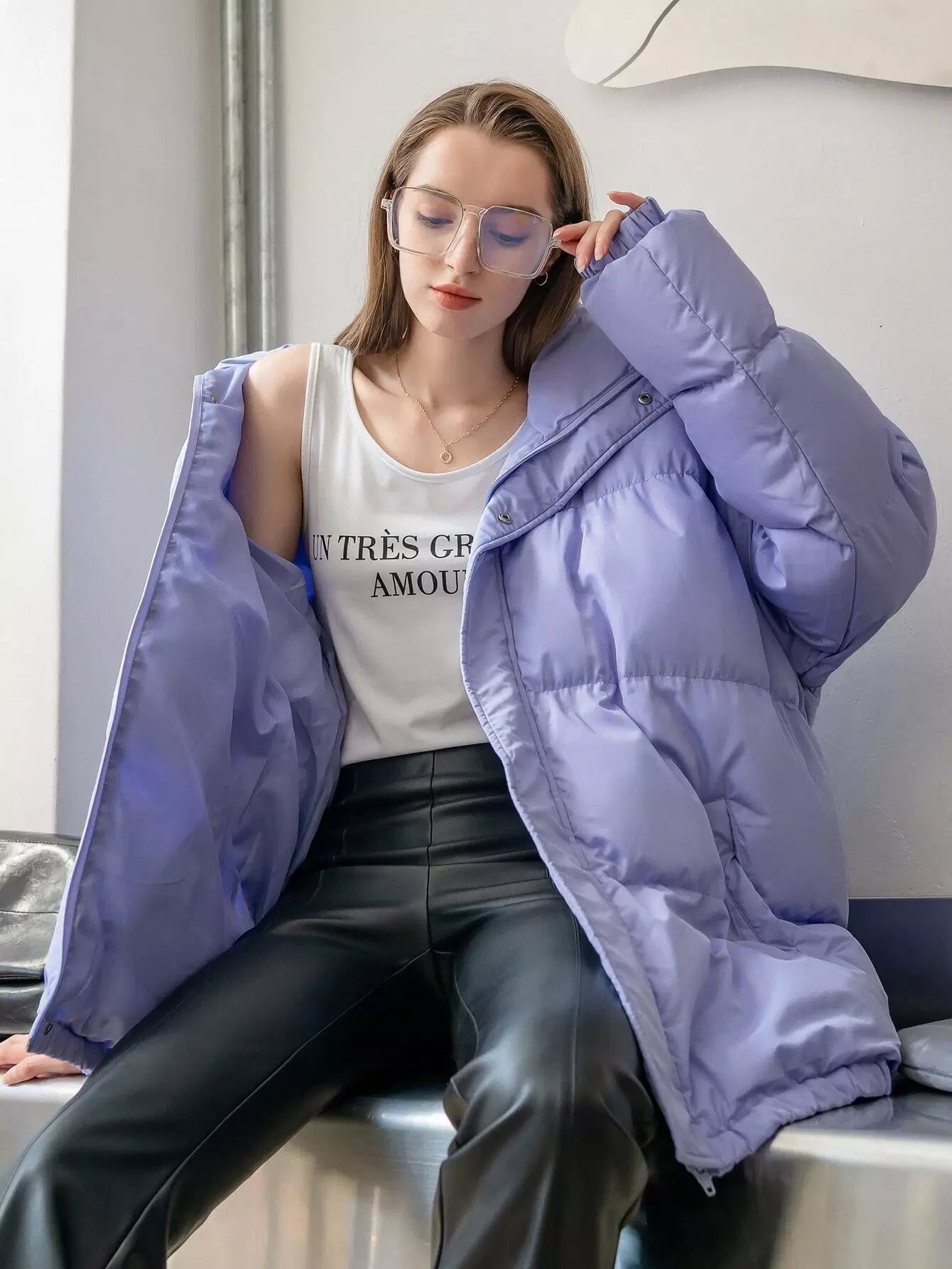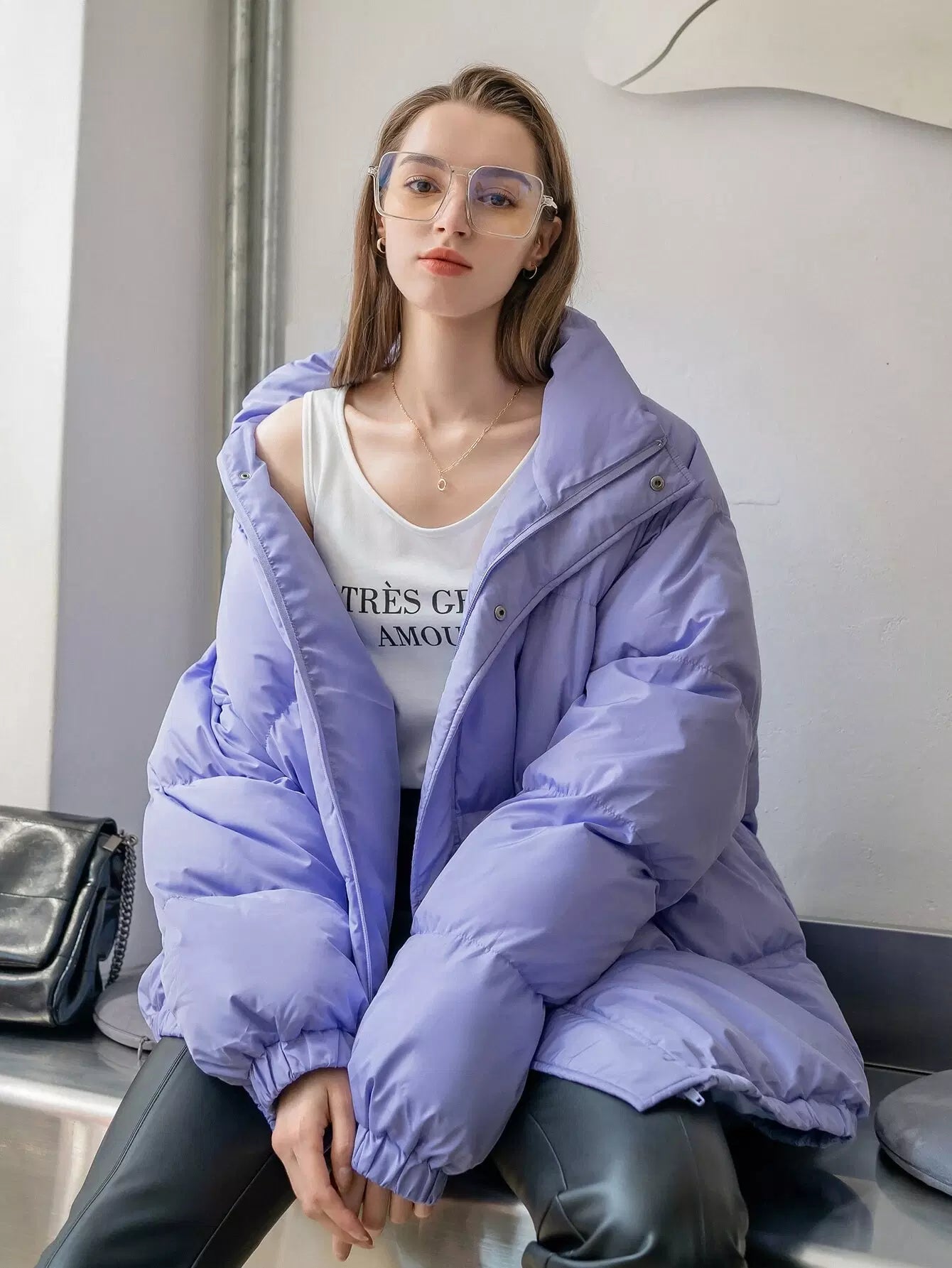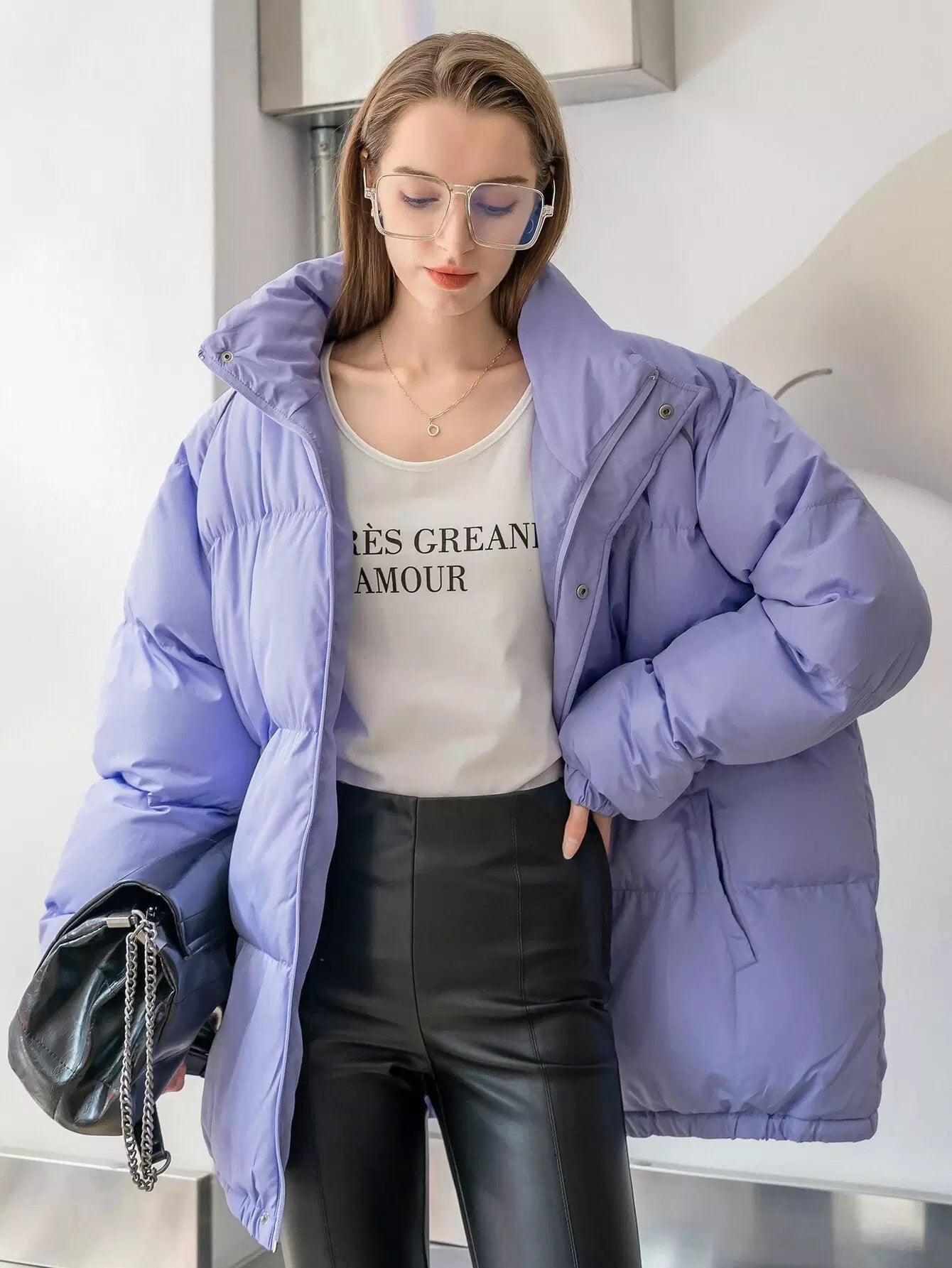 High Neck Raglan Sleeve Puffer Coat