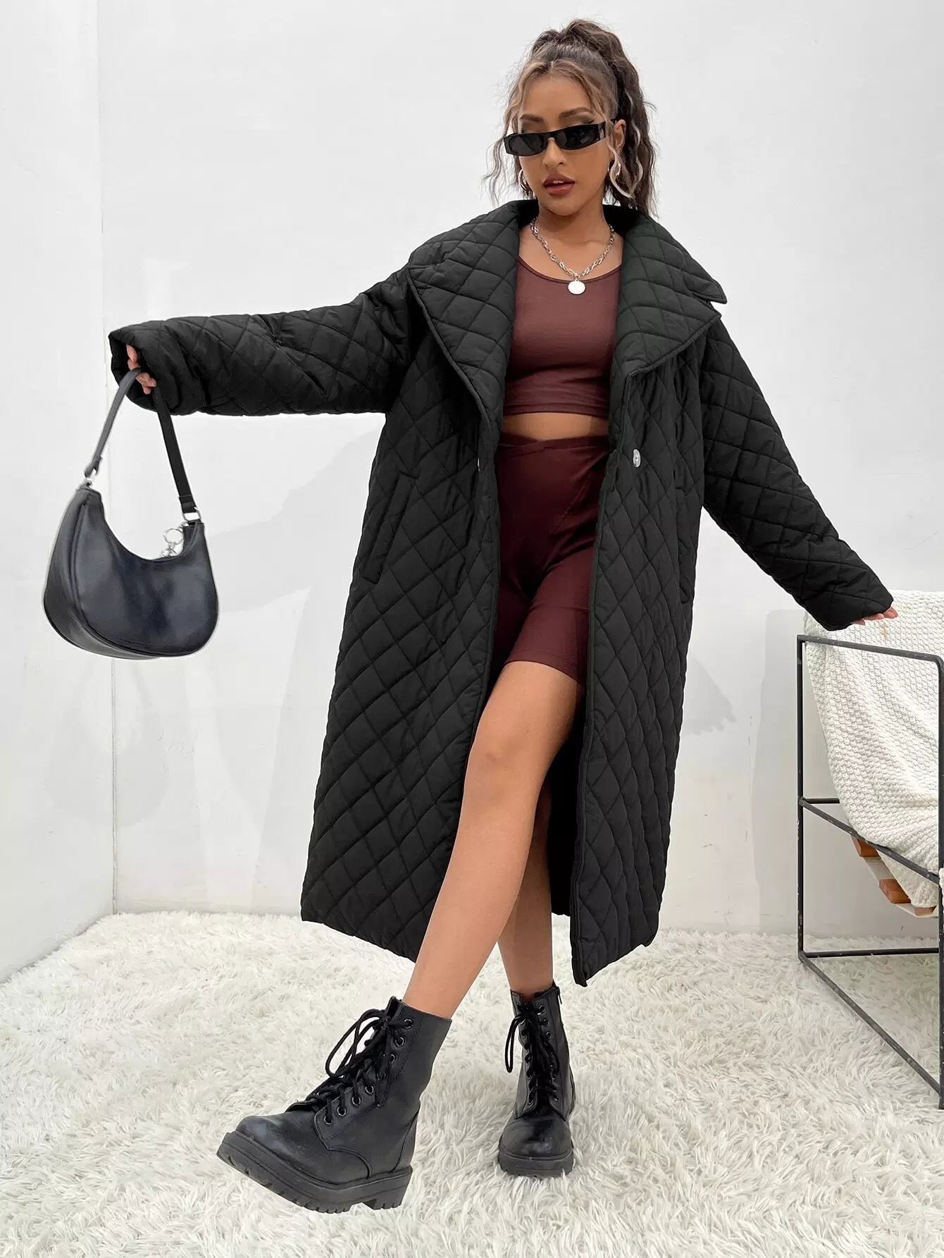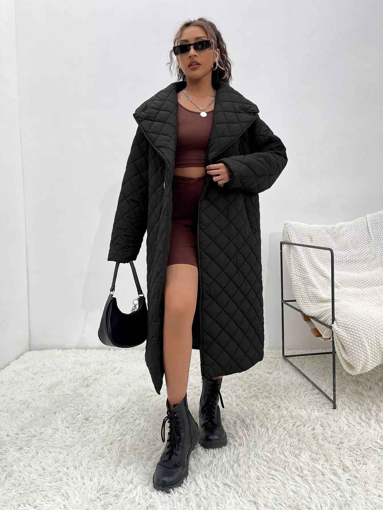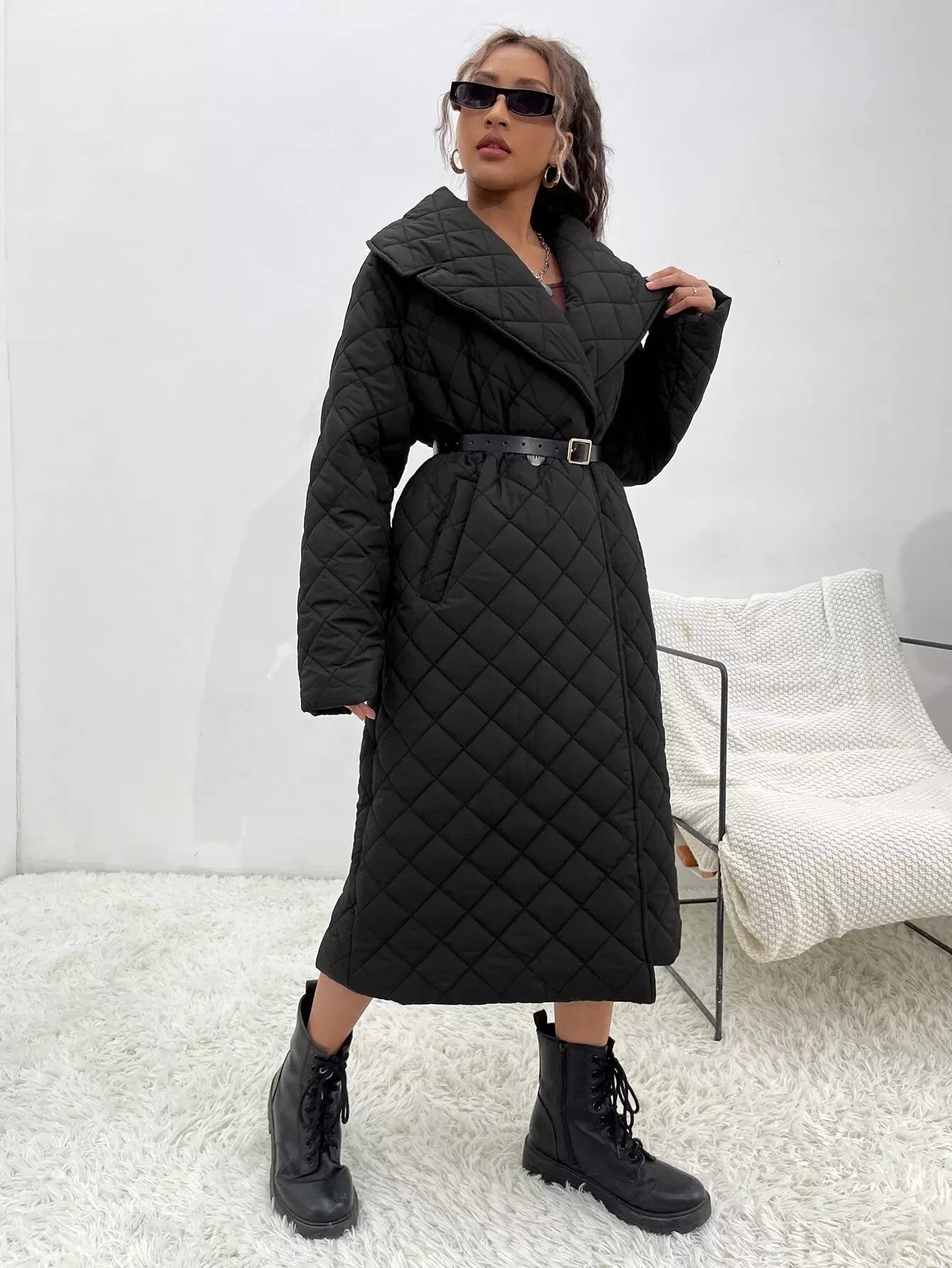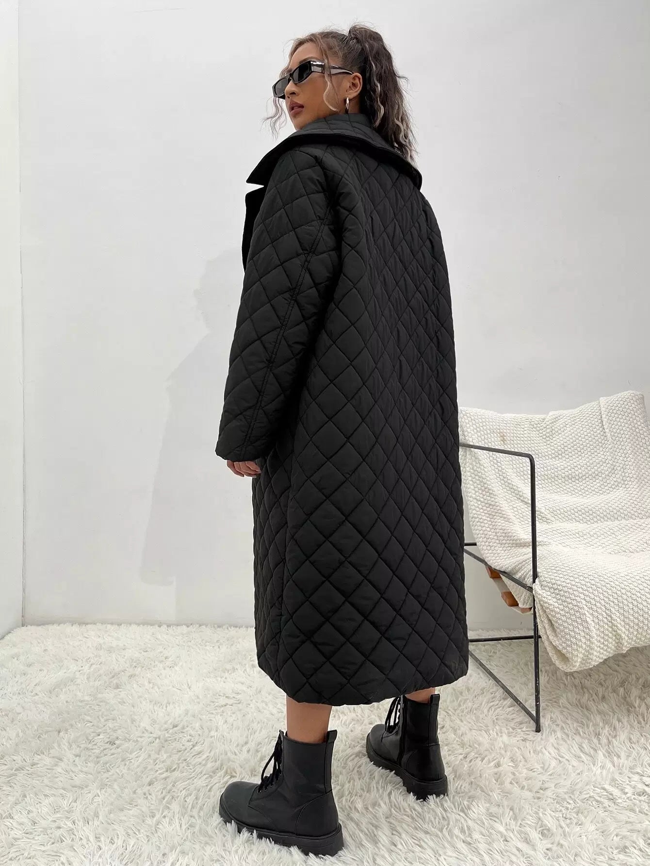 Waterfall Collar Quilted Coat