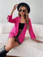 Chiquease Lapel Neck Roll Tab Sleeve Open Front Blazer Fall Cloth For Women