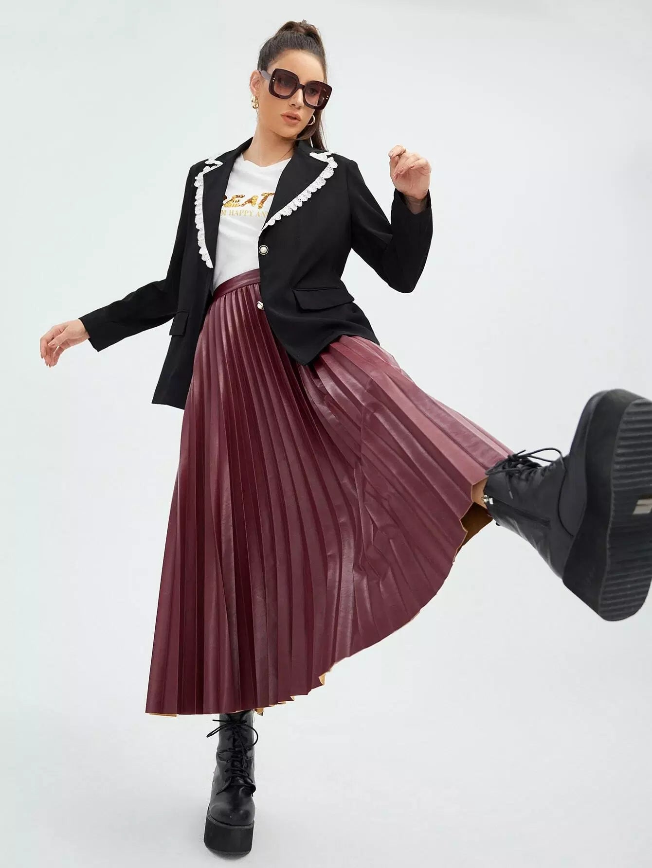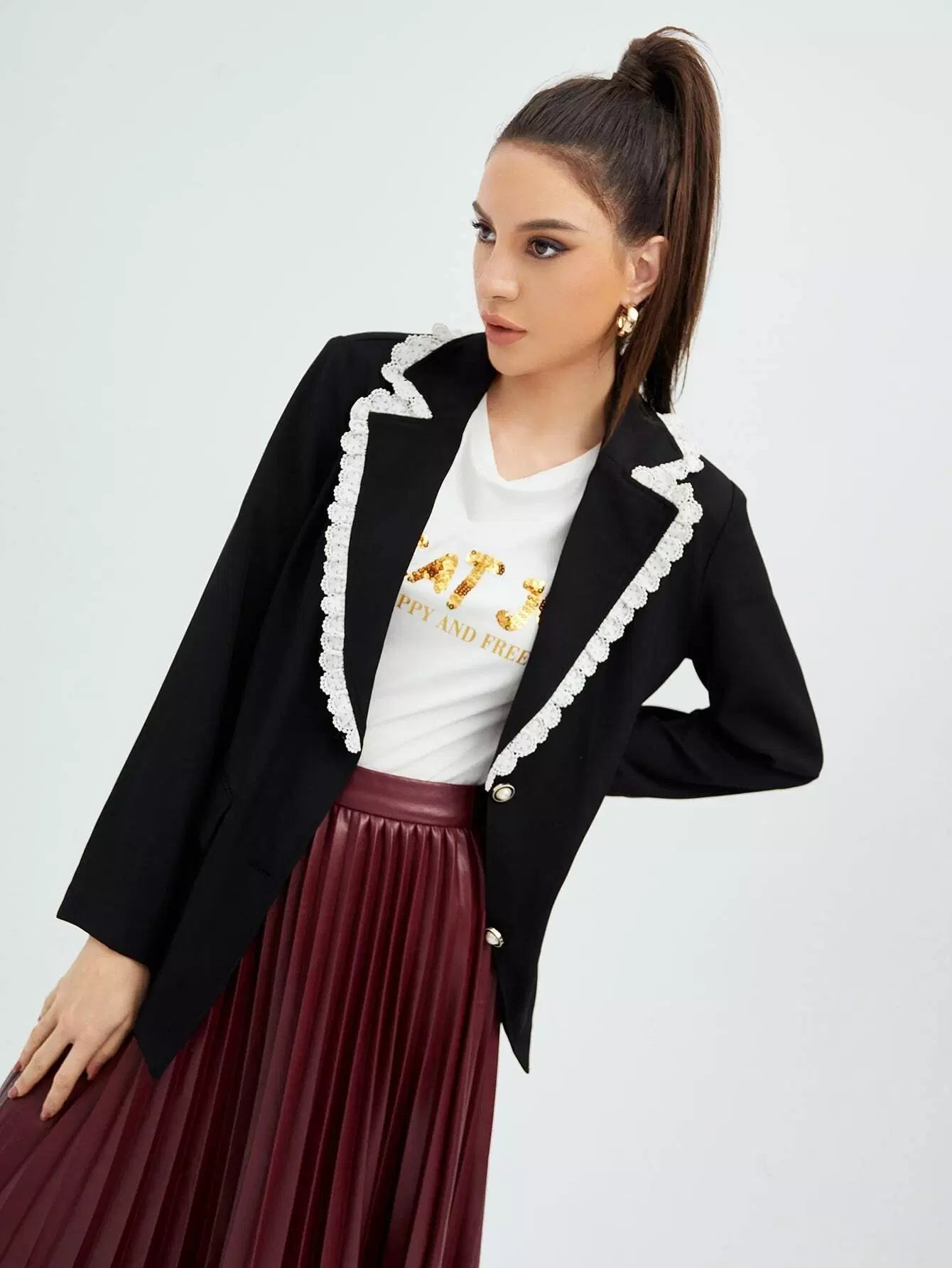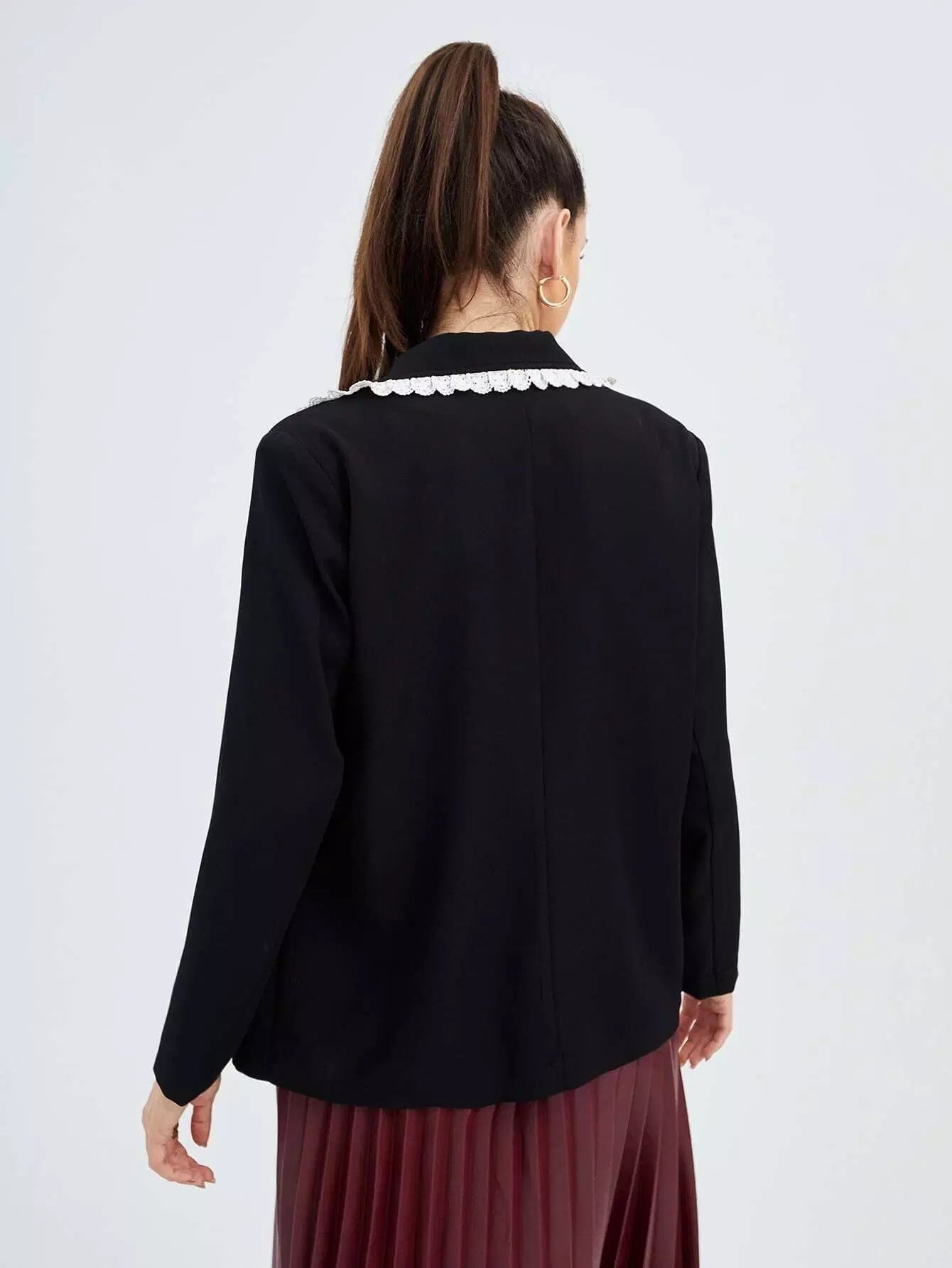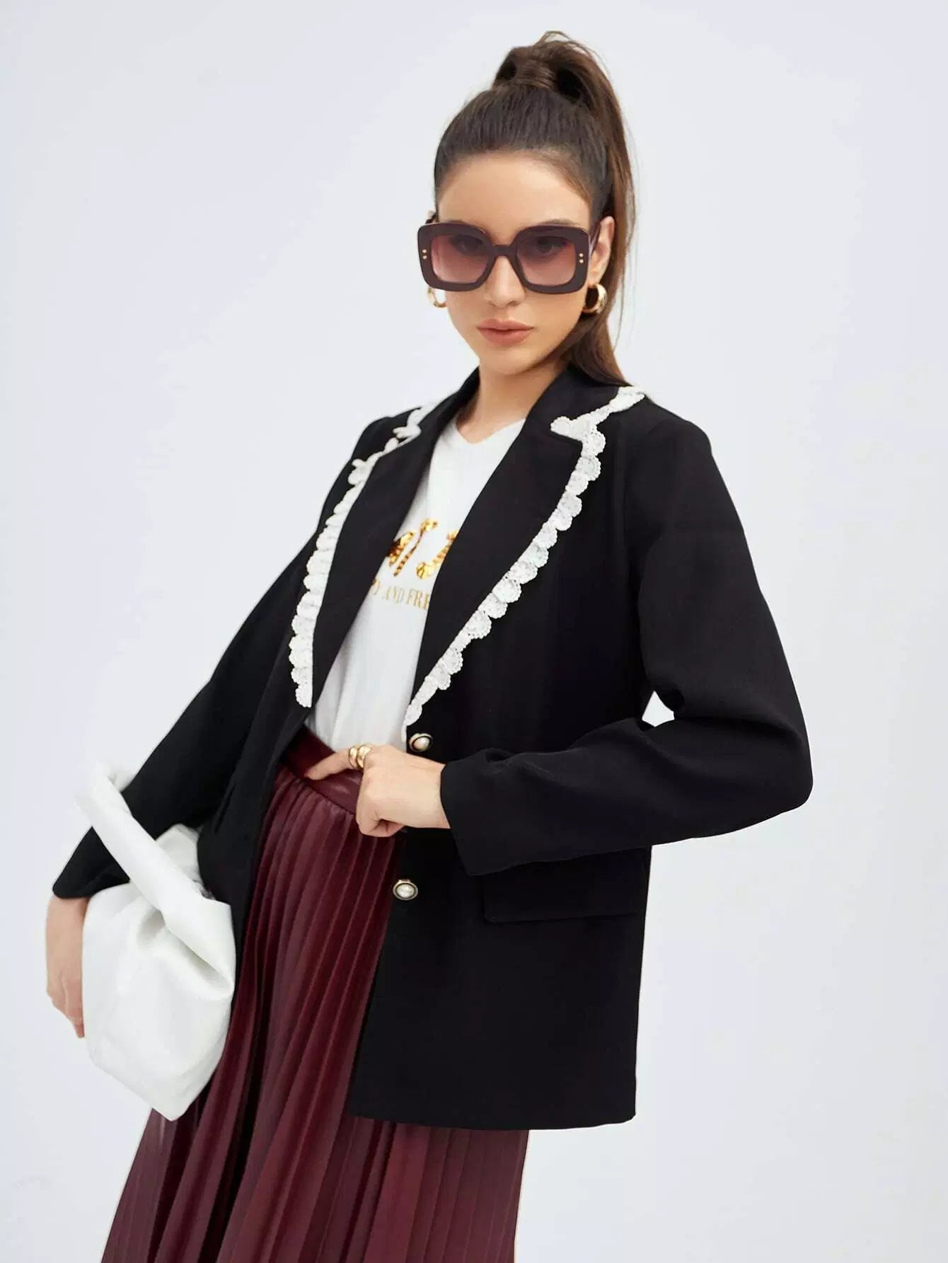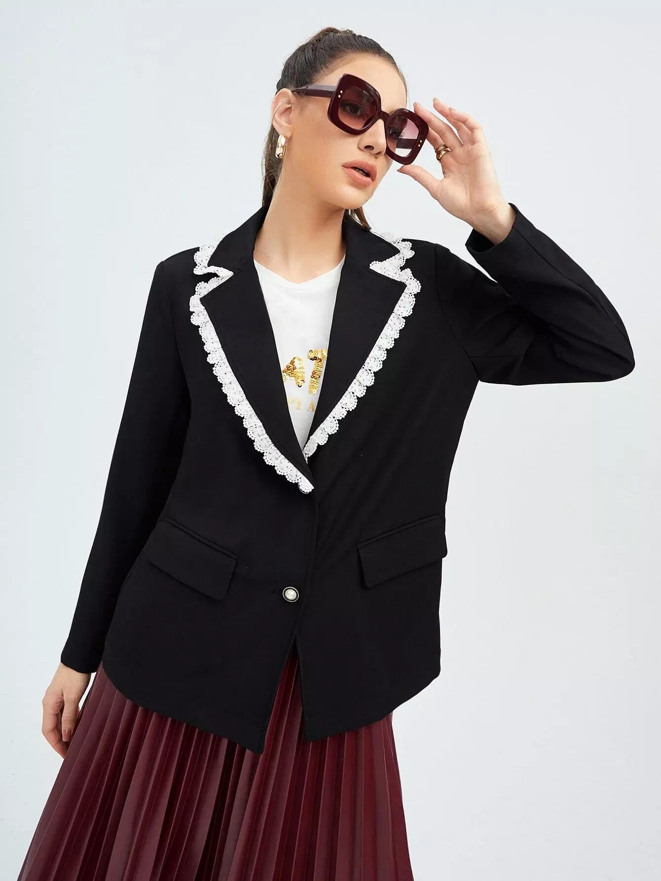 Contrast Guipure Lace Trim Flap Detail Blazer