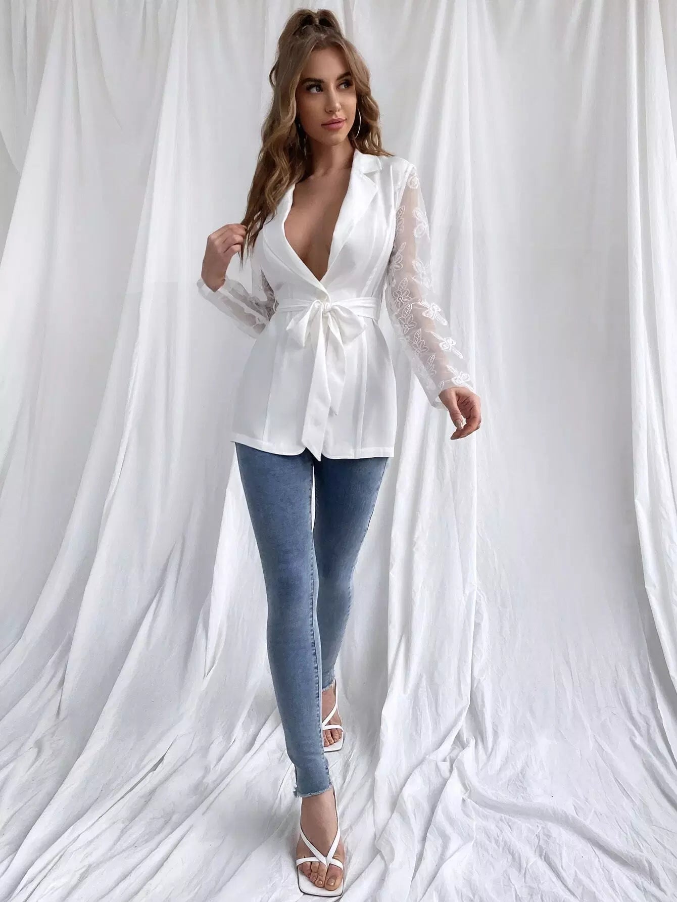 Contrast Organza Sleeve Chiffon Blazer Without Belt