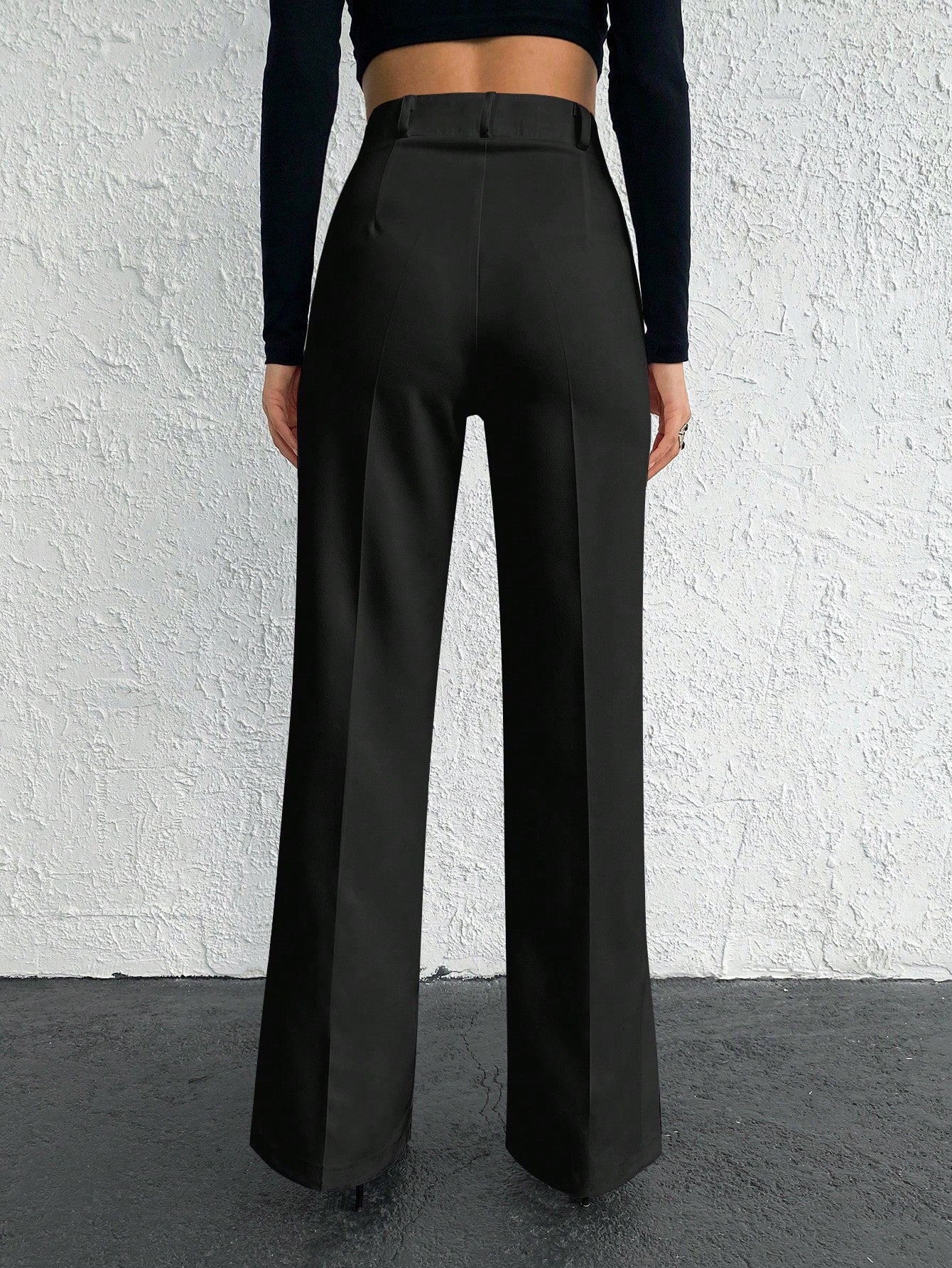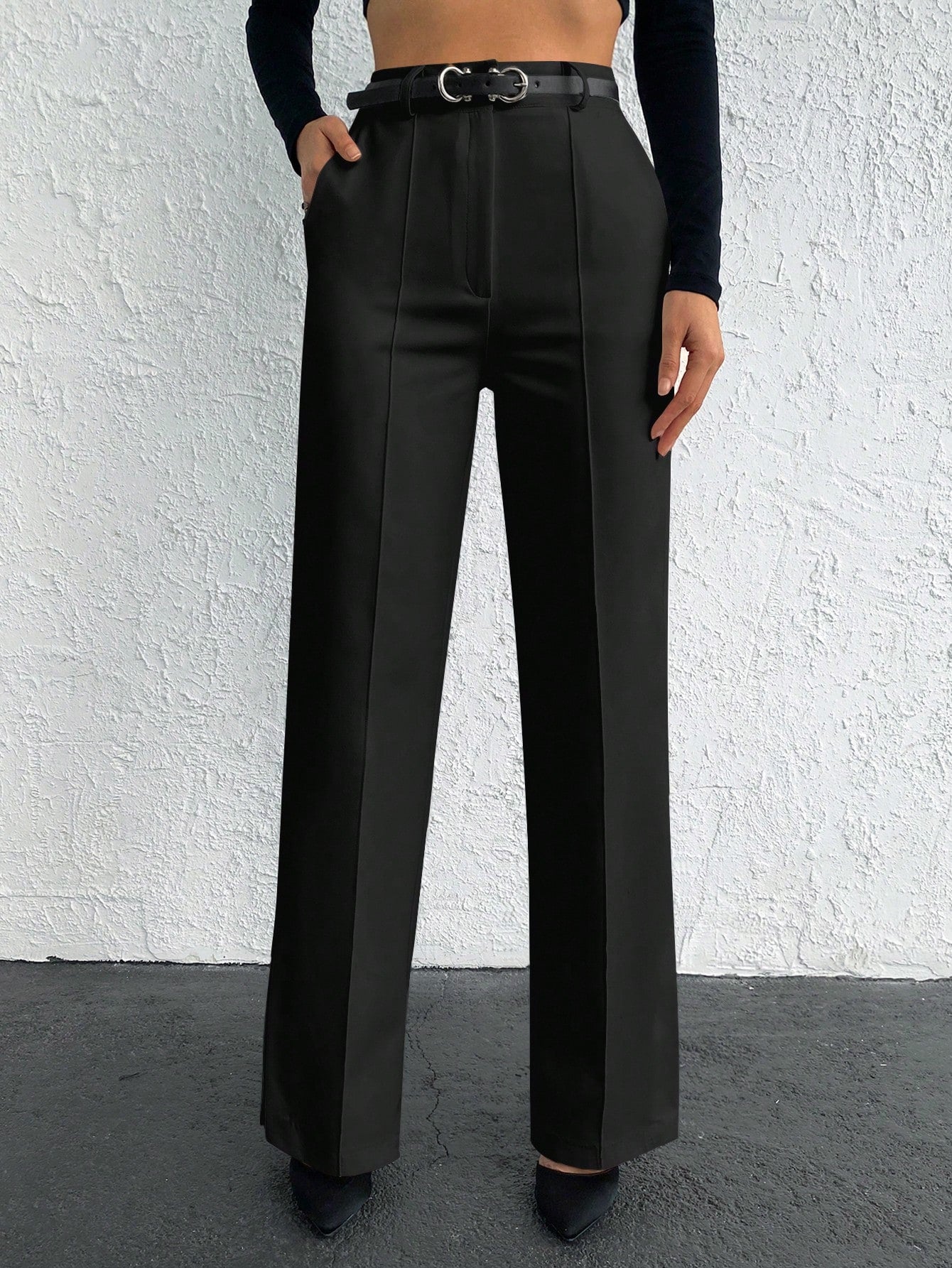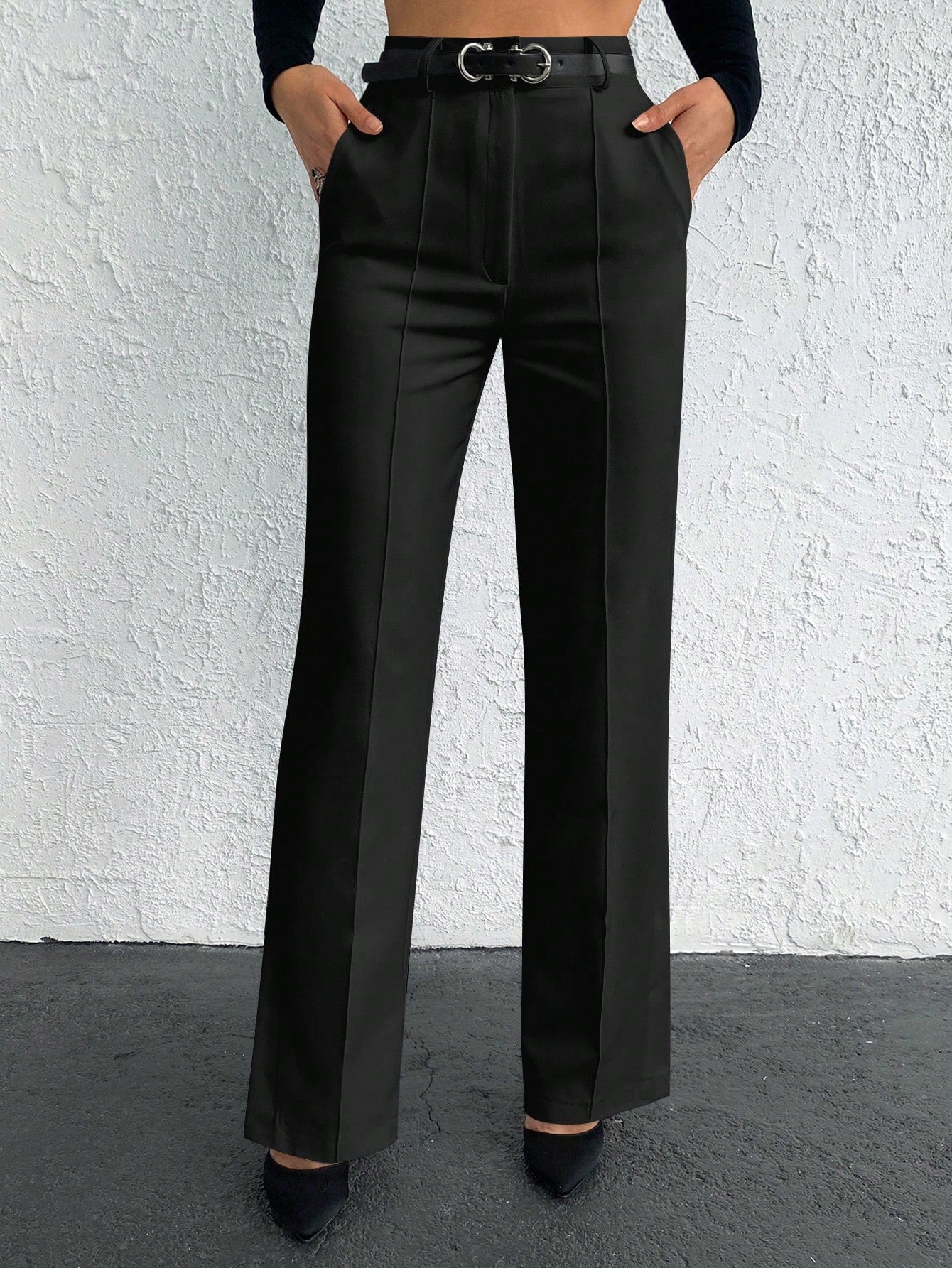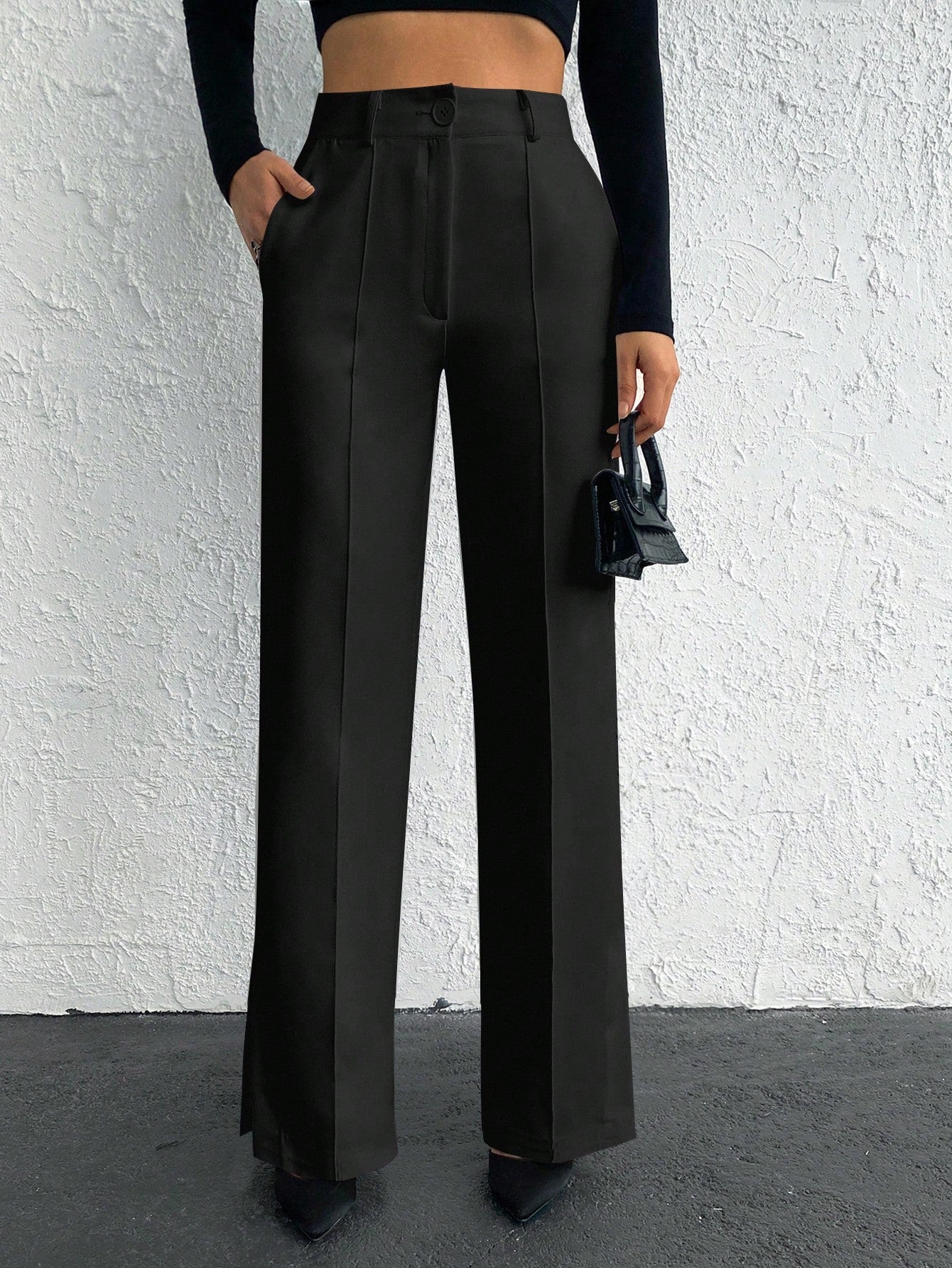 EURMUSE Solid Slant Pocket Straight Leg Suit Pants