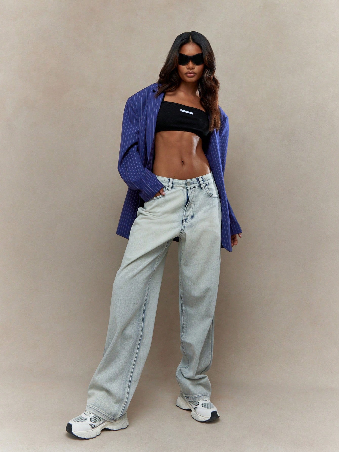 MISSGUIDED Pinstripe Single Breasted Oversized Blazer Office Wear