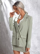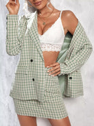 Plaid Double Breasted Blazer & Mini Skirt Set