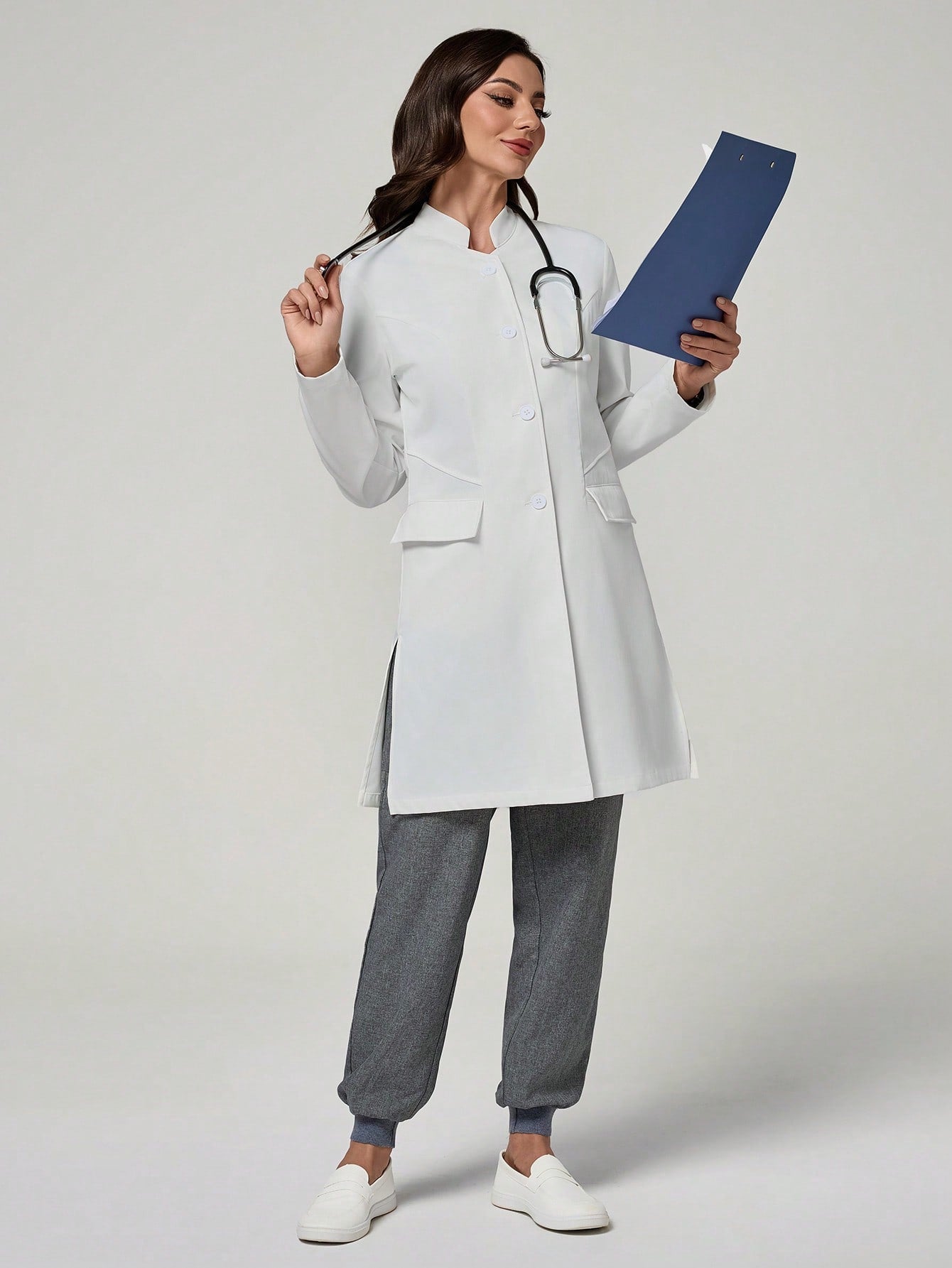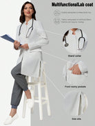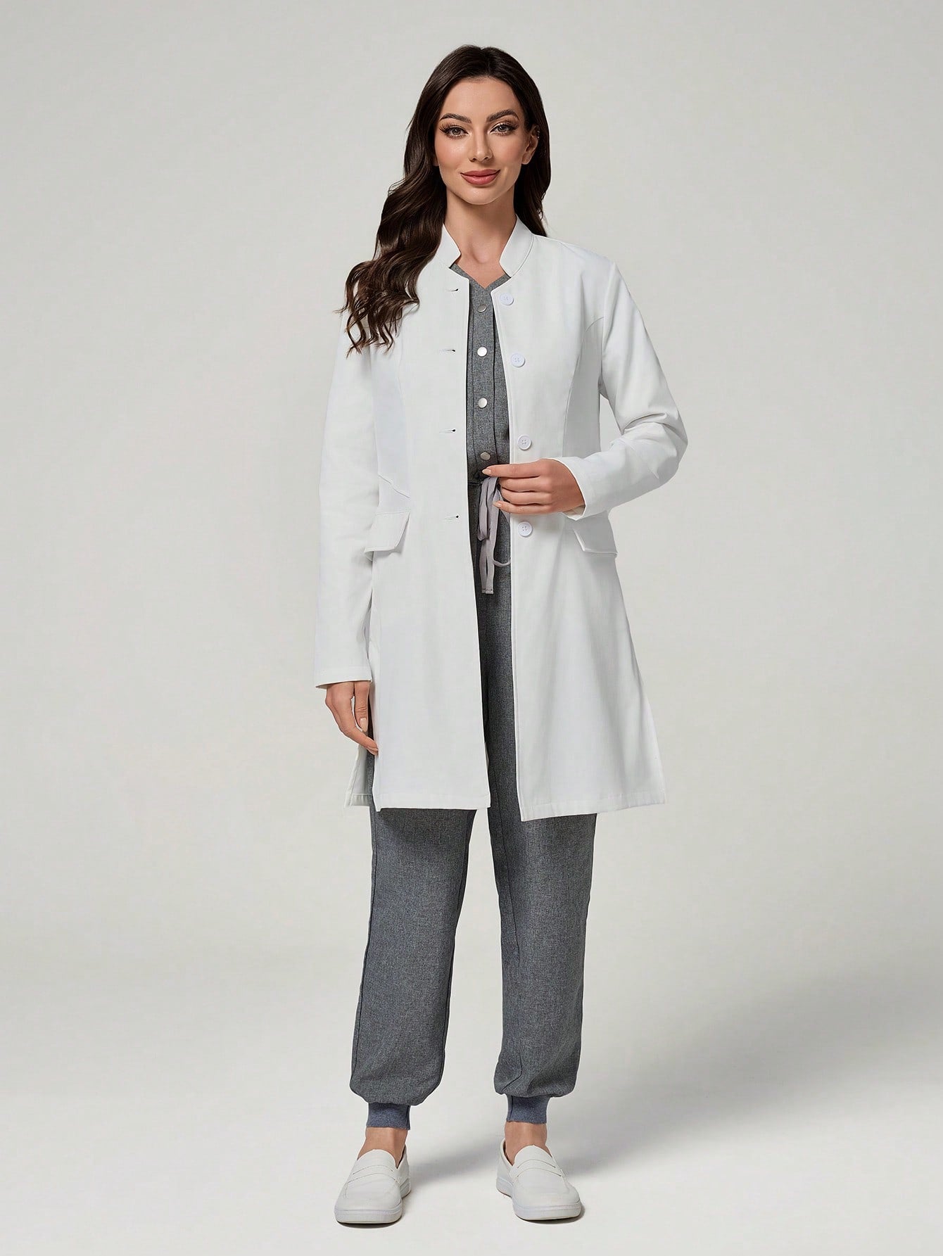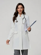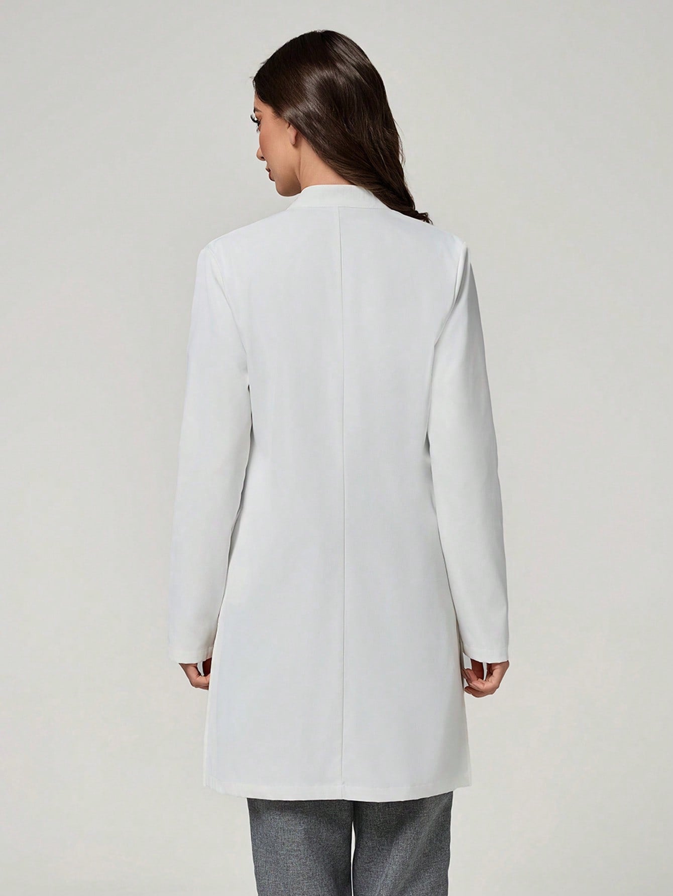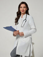 Scrubzie Anti-Wrinkle Long Lapel Split Hem Women's Laboratory Coat, White
