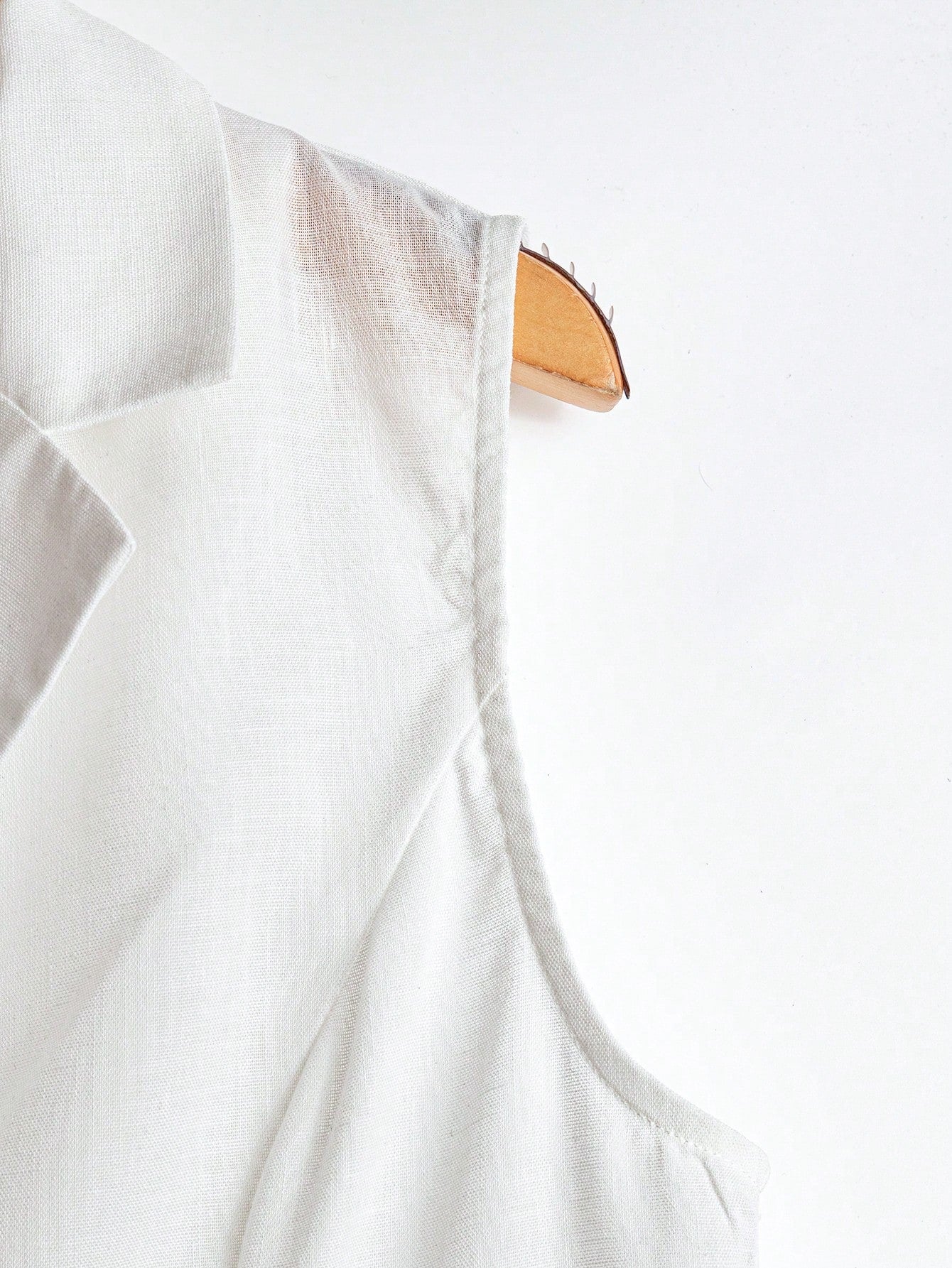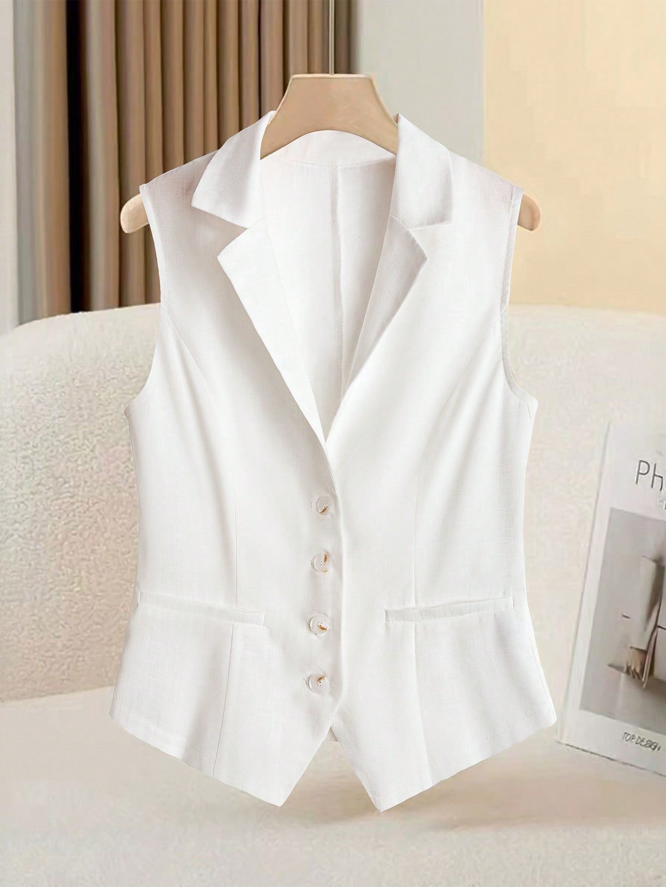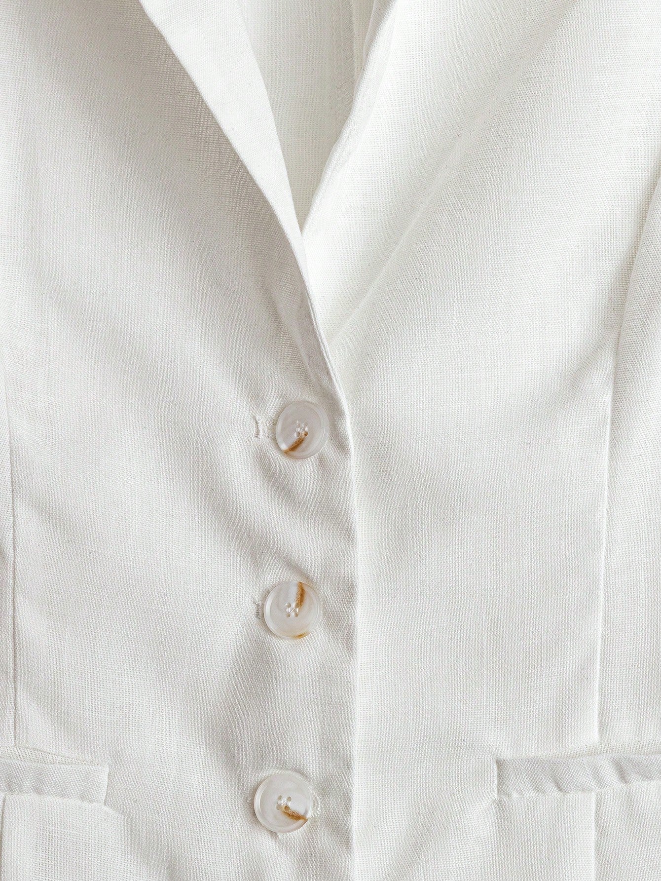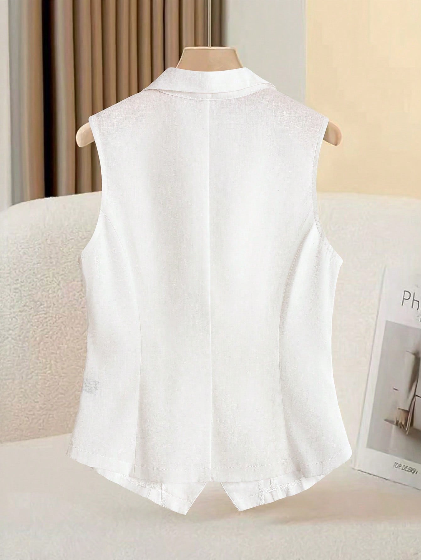 Clasi Women's Fake Linen Waistcoat Vest, Lightweight Summer Faux Linen Blazer Vest Outerwear, Retro Style