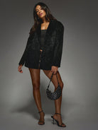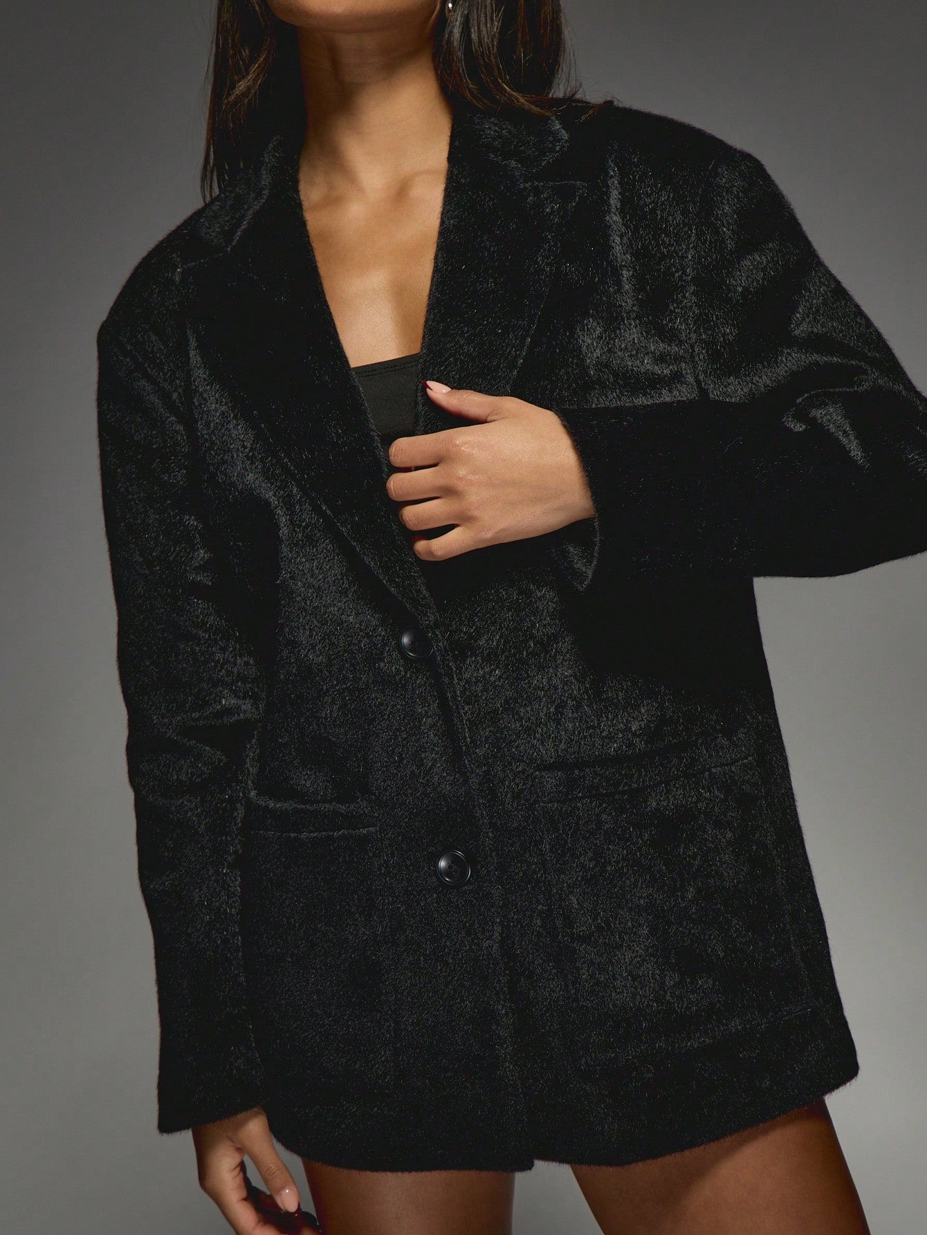 MISSGUIDED Luxury Oversized Suede Winter Blazer Double Button Front Autumn Office Party Tailored Long