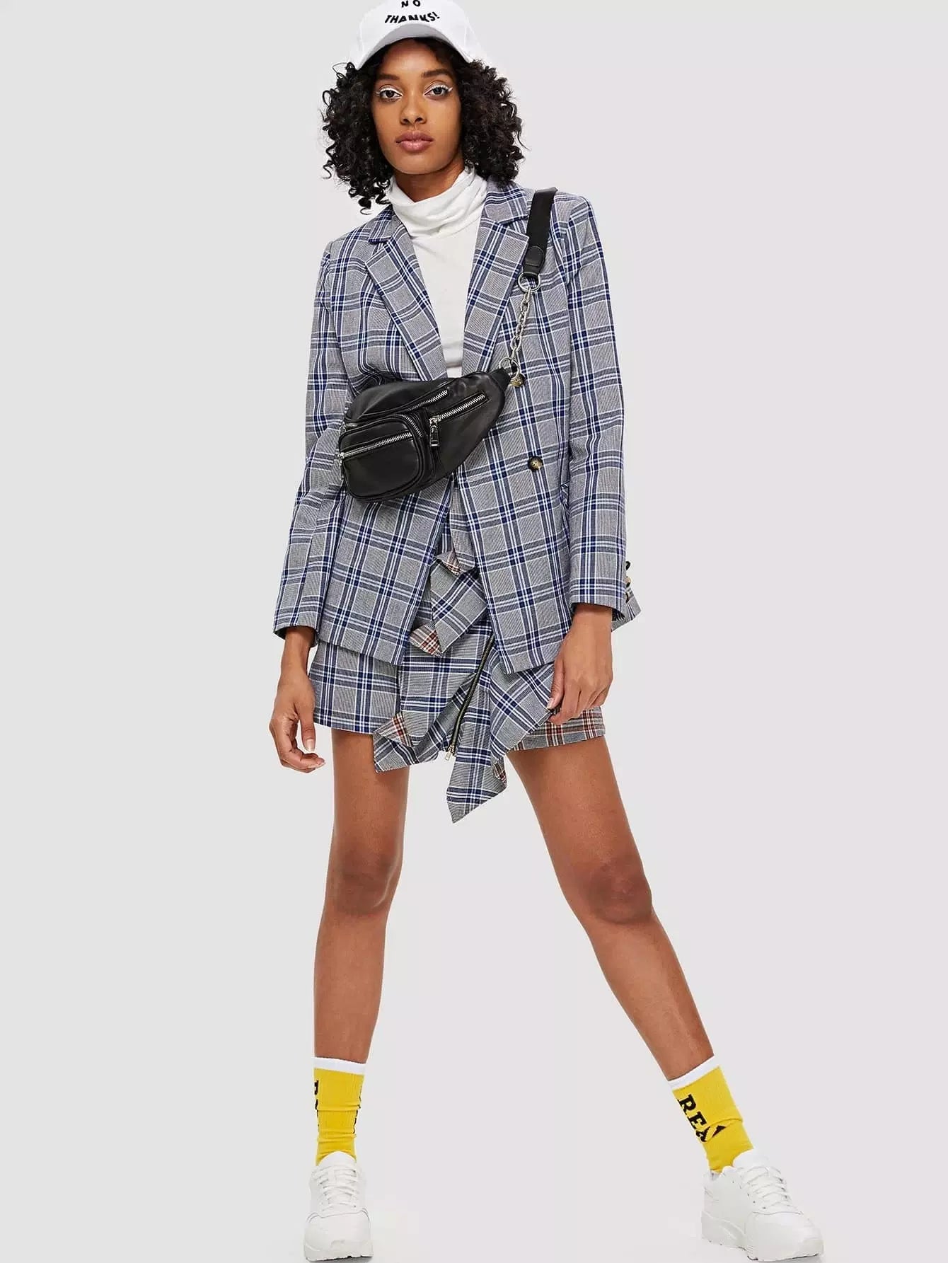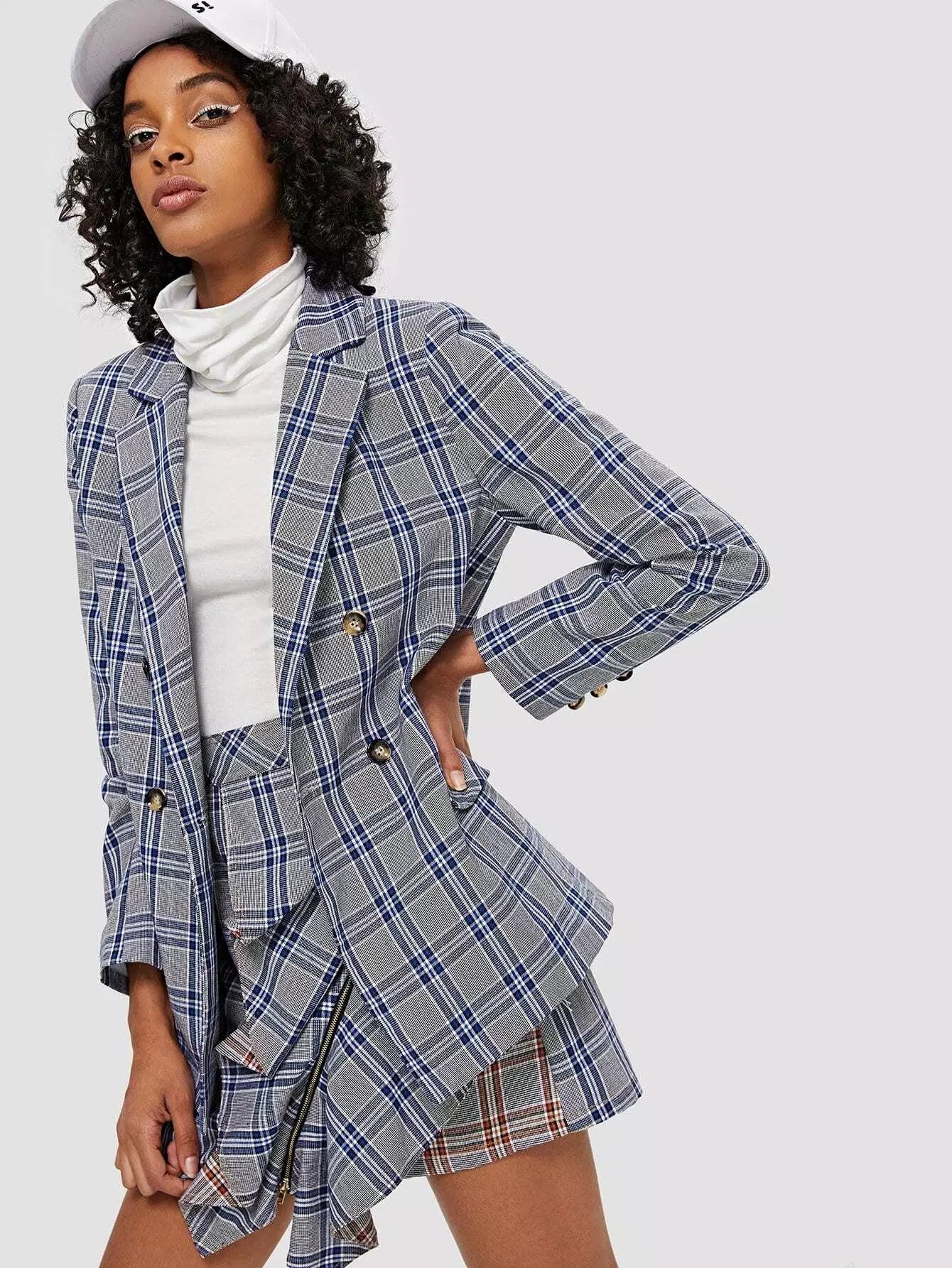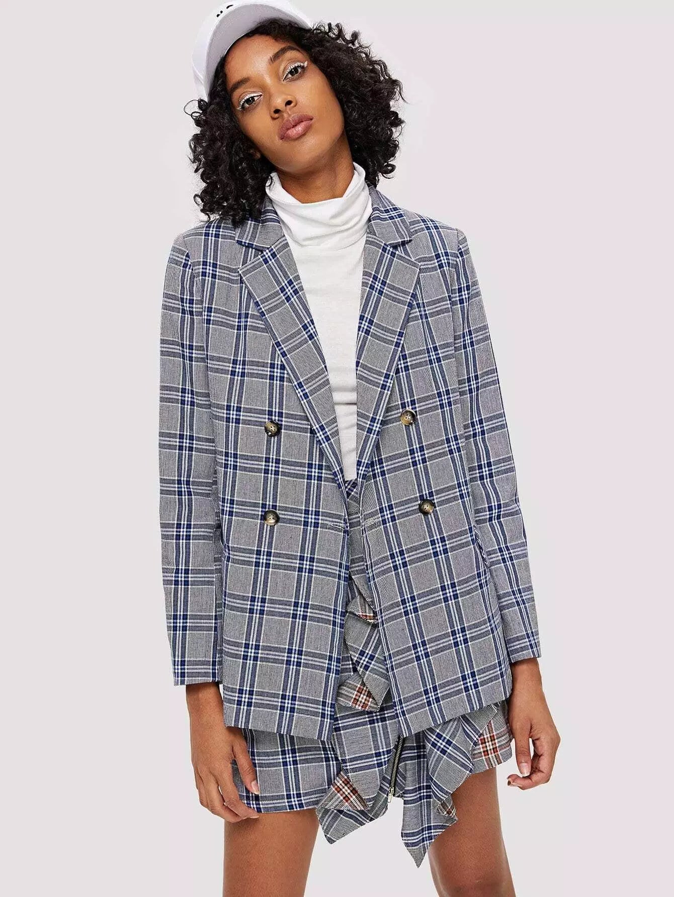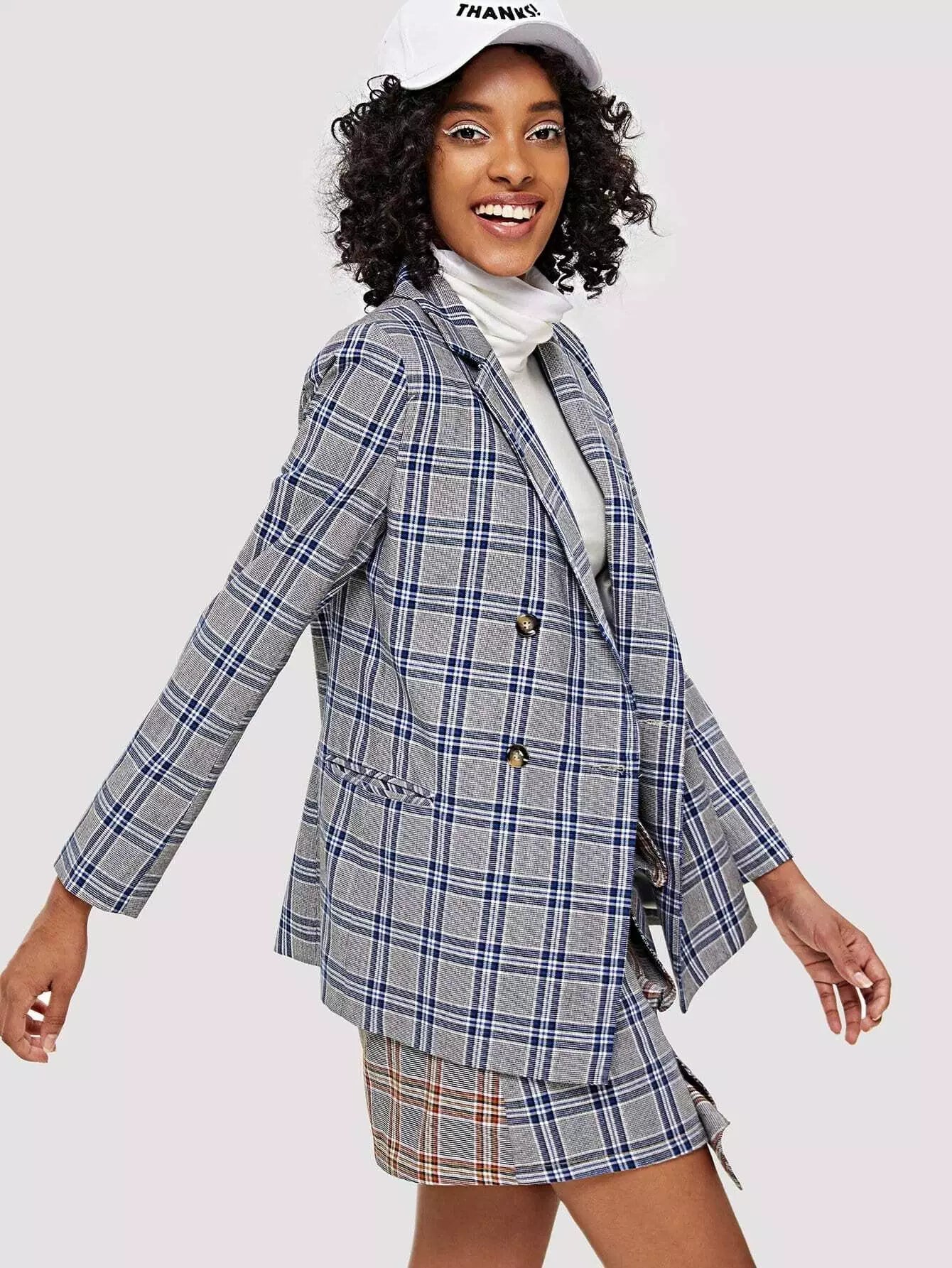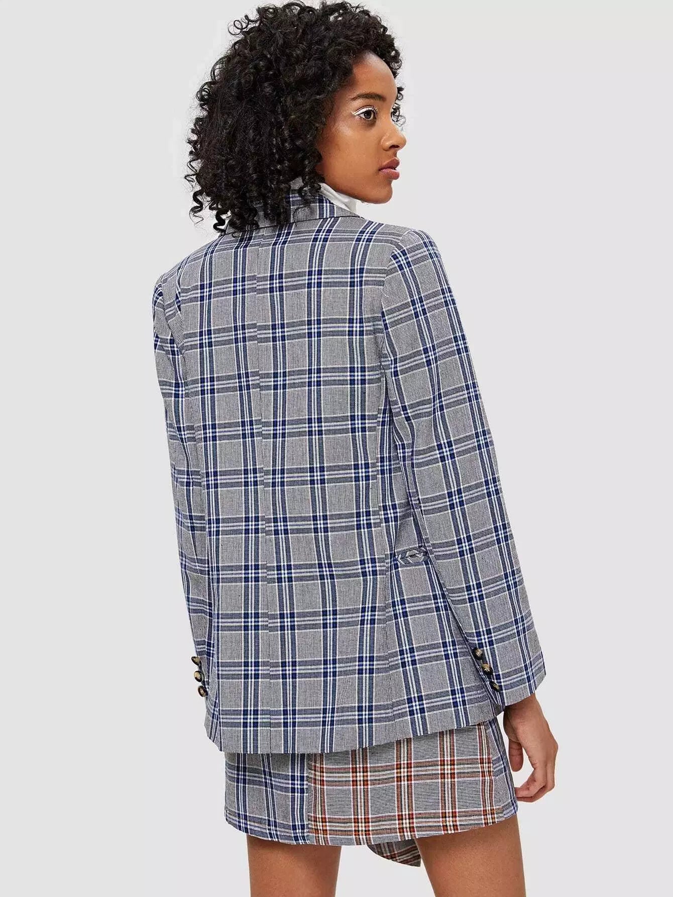 Women - Notch Neck Pocket Detail Plaid Blazer