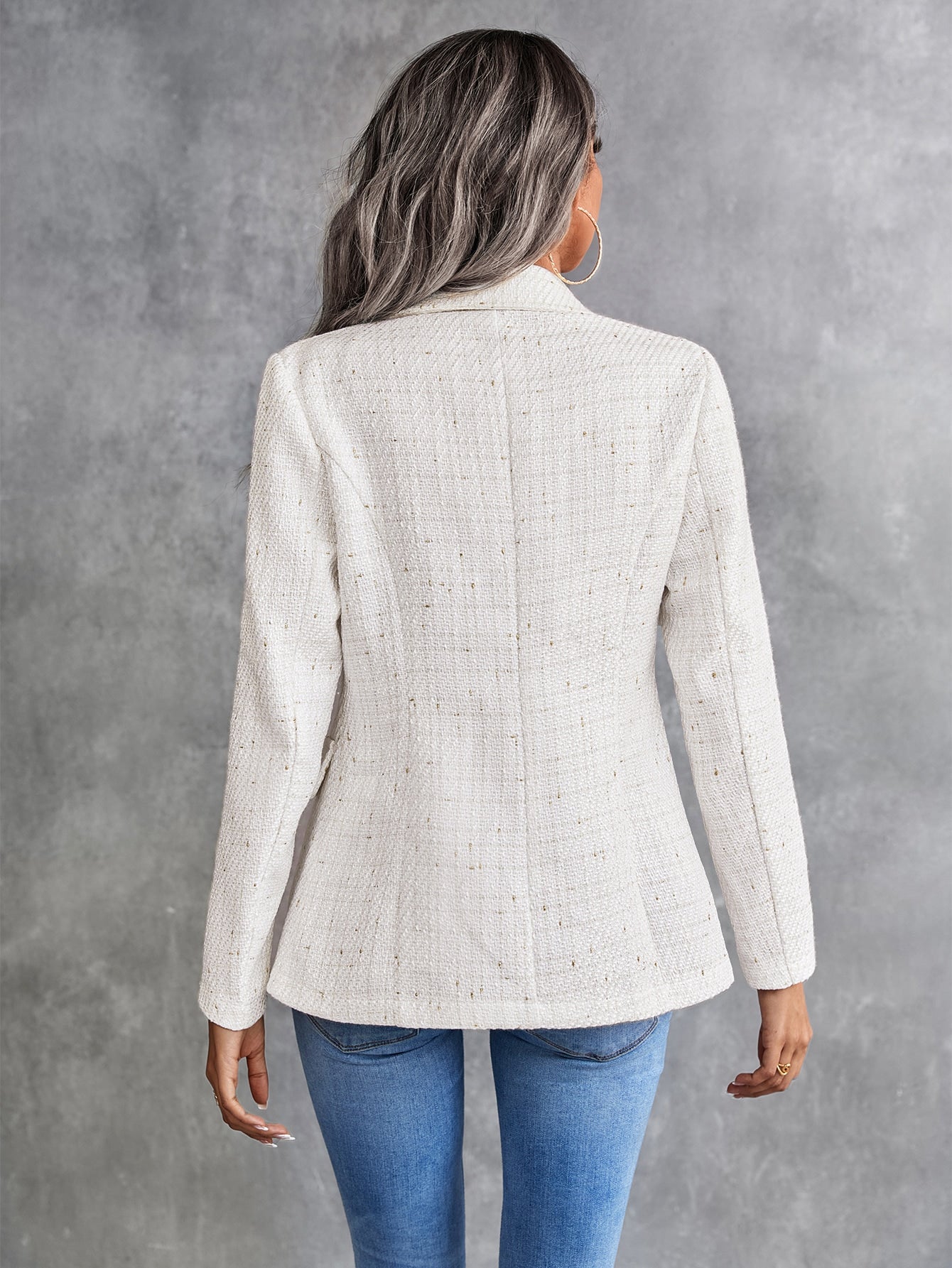 Privأ© Lapel Neck Double Breasted Tweed Blazer Fall Cloth For Women